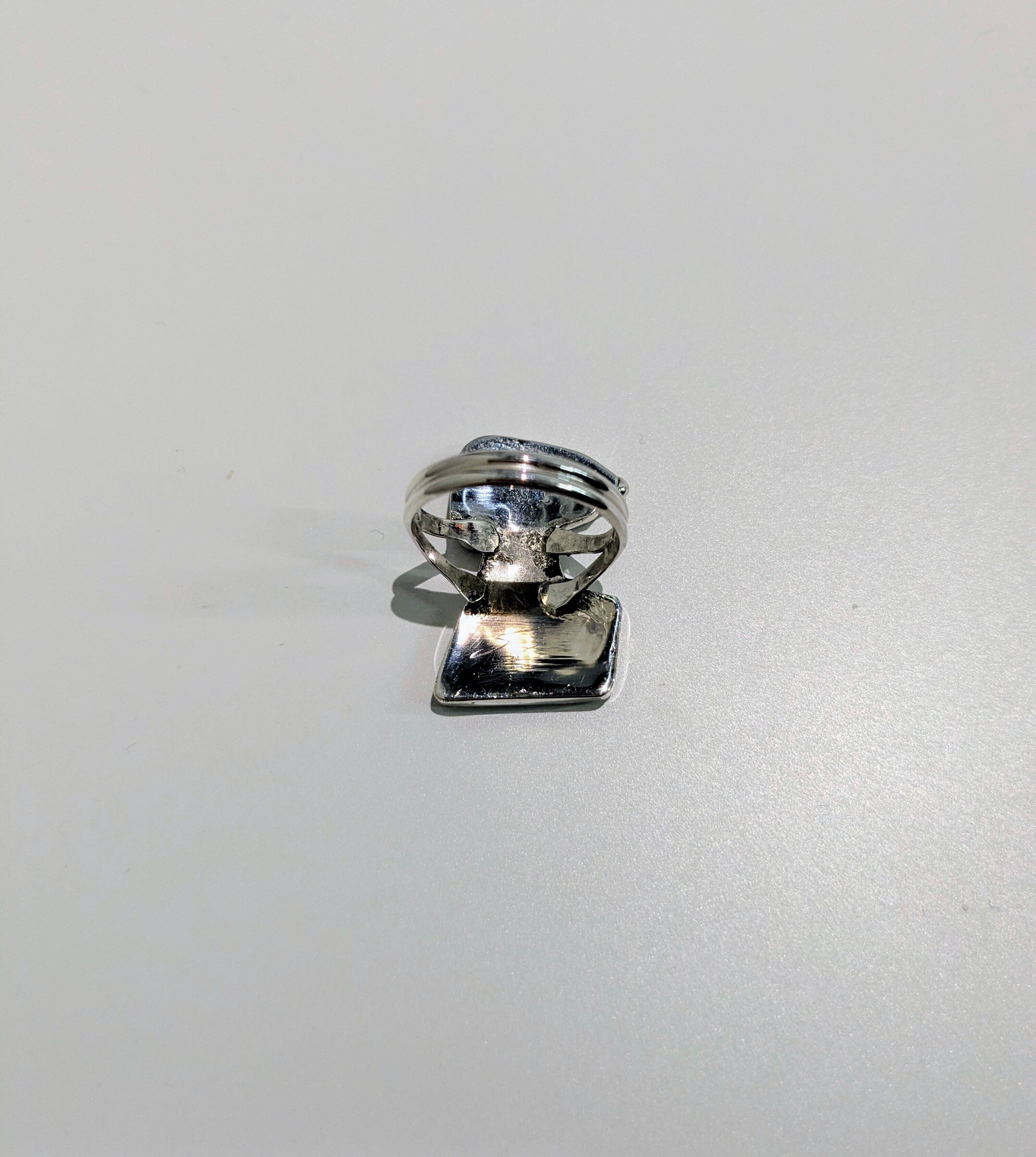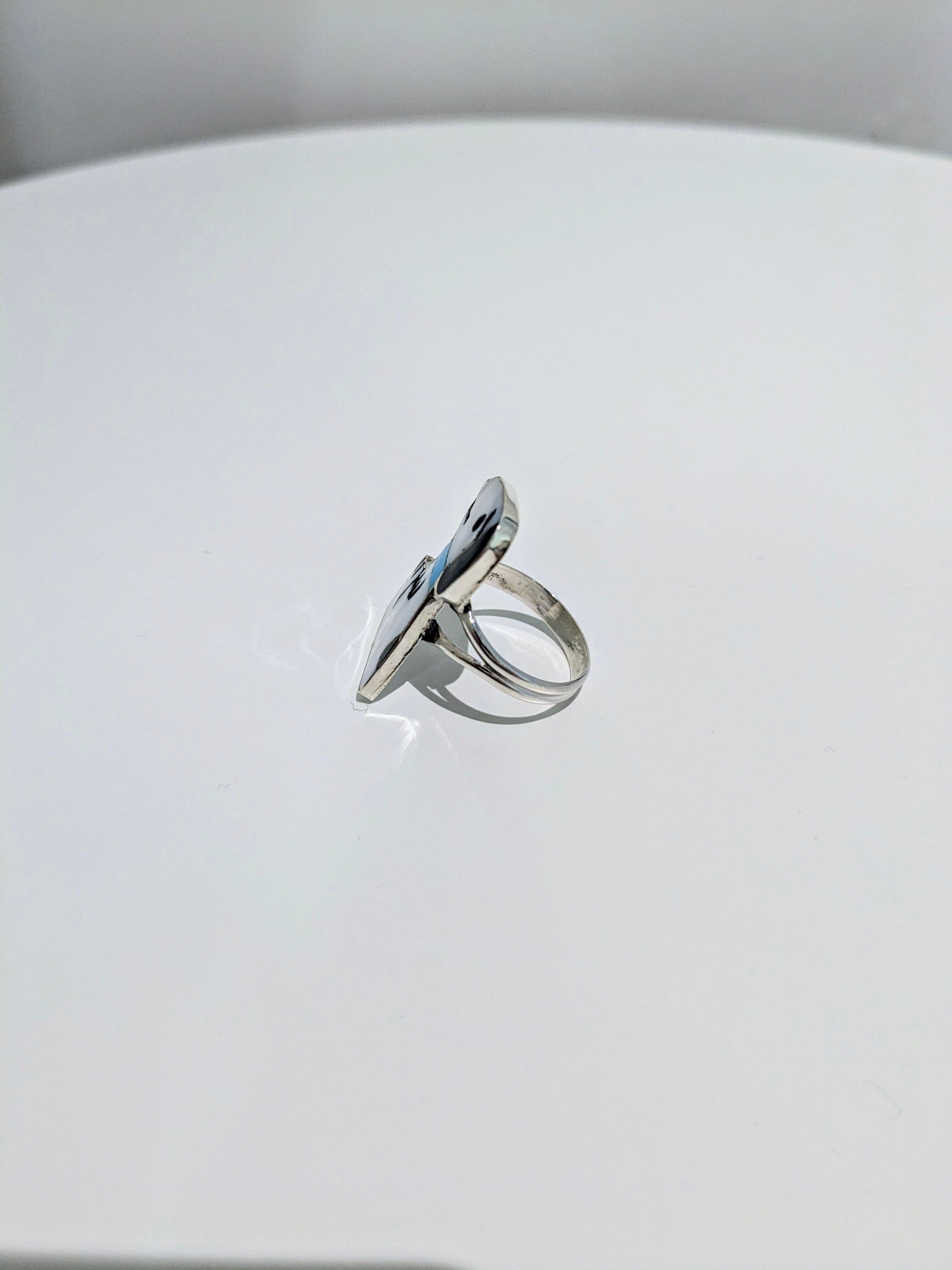 可愛らしいキャラクターがインレイワークされた、ズニ族のリングになります。