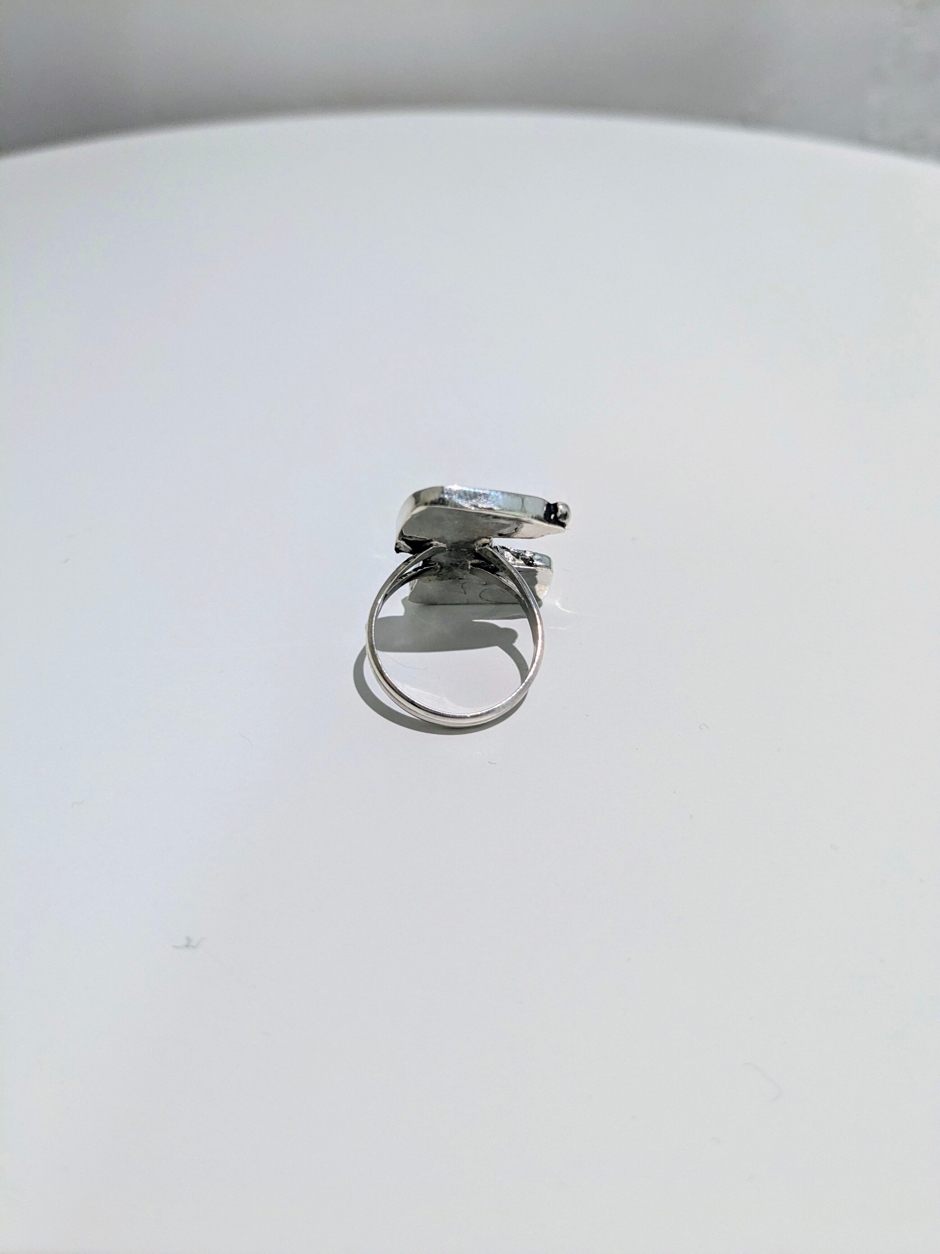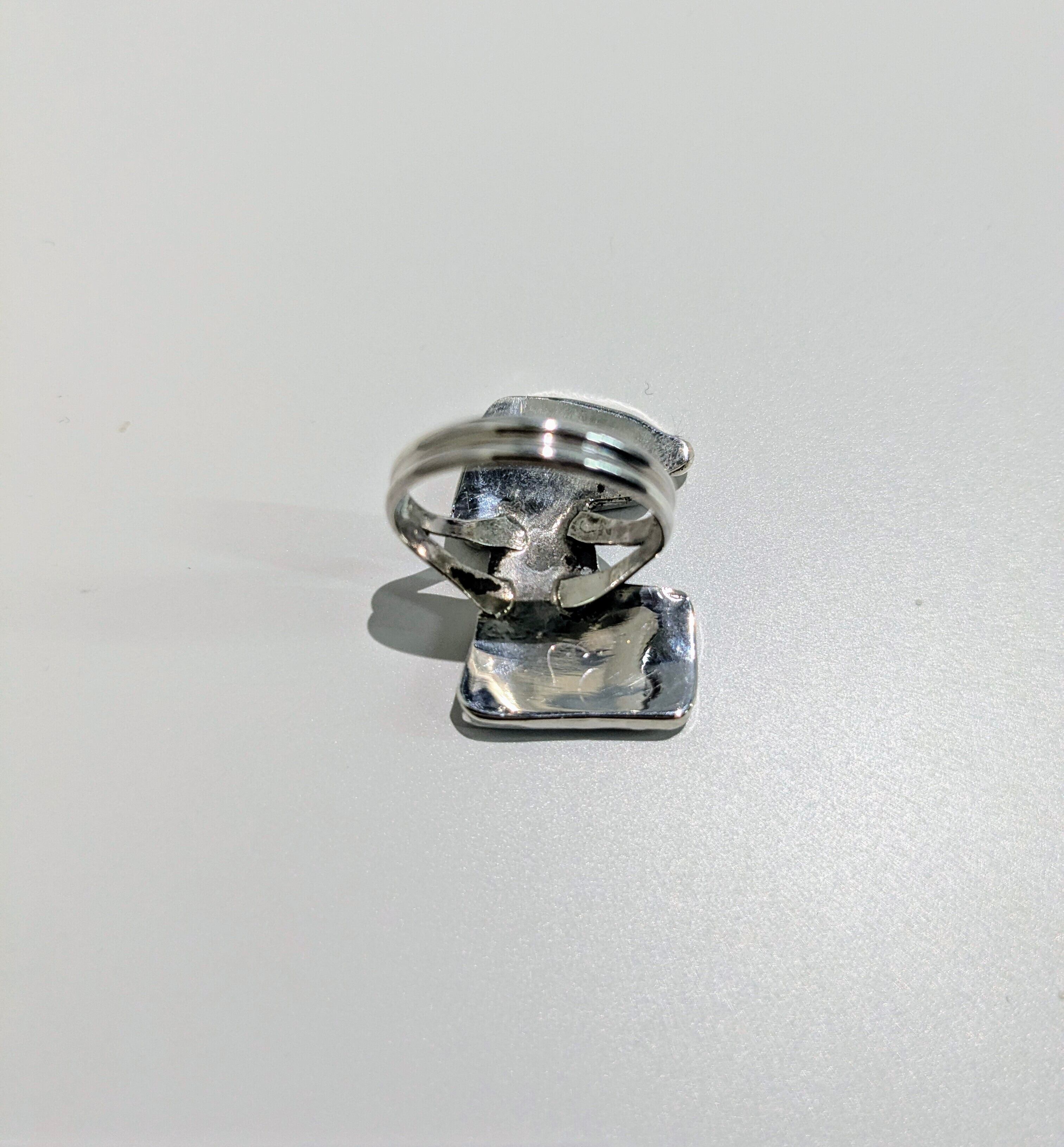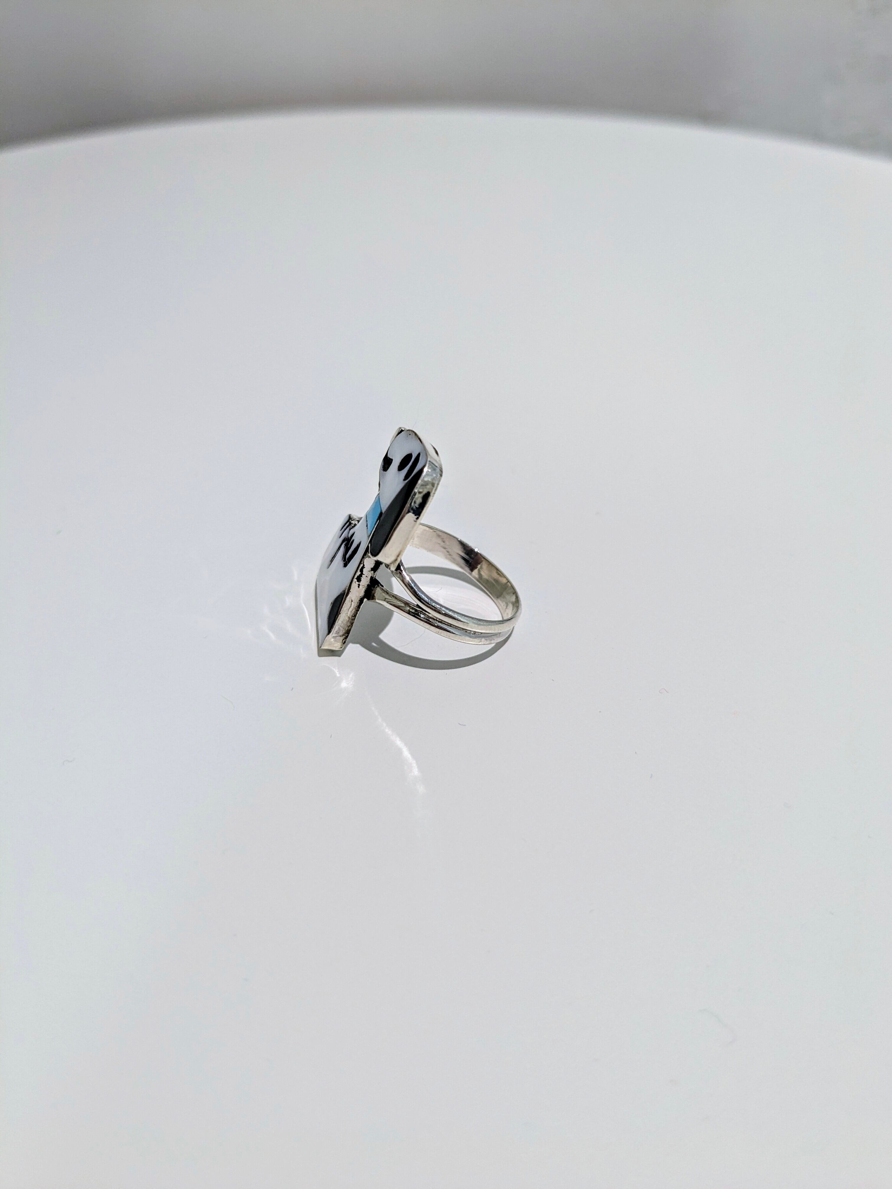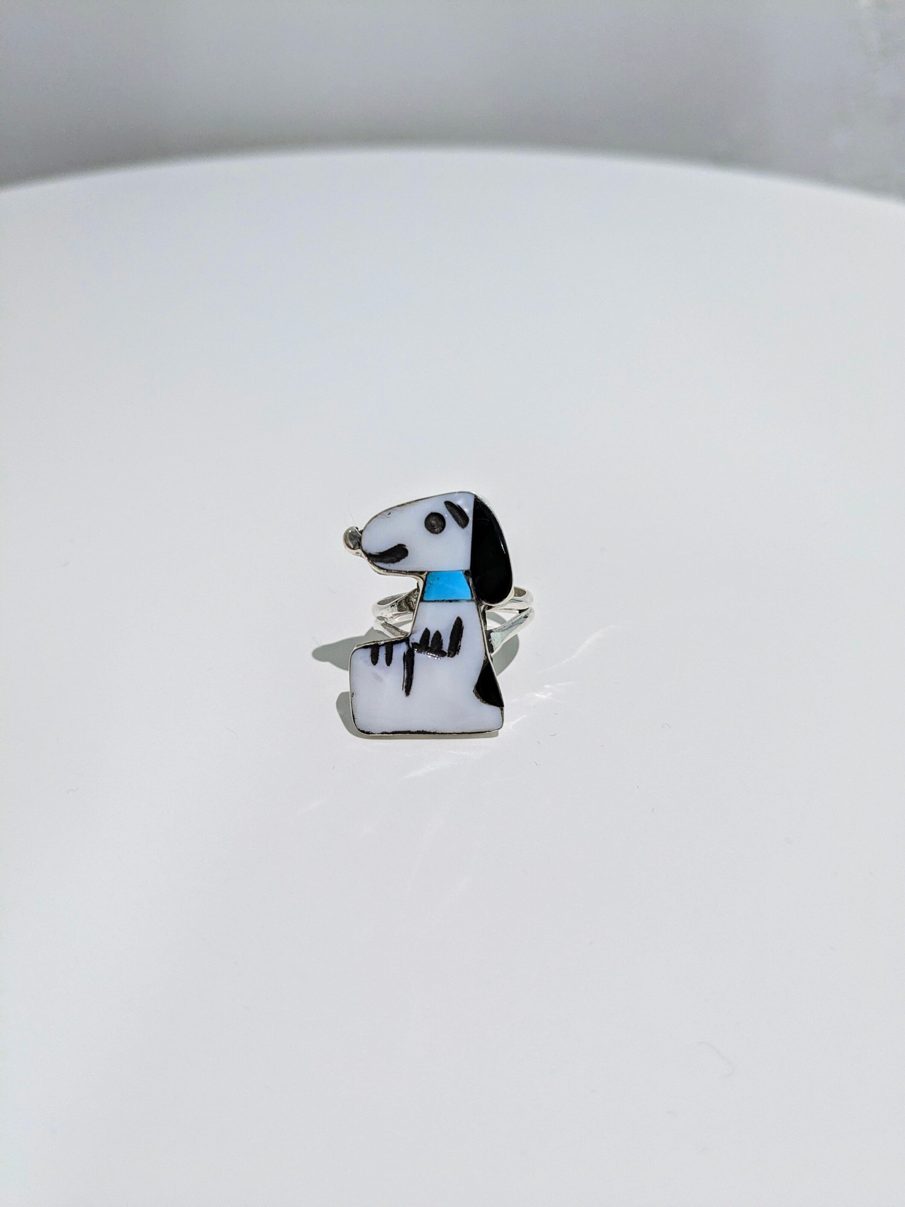 可愛らしいキャラクターがインレイワークされた、ズニ族のリングになります。