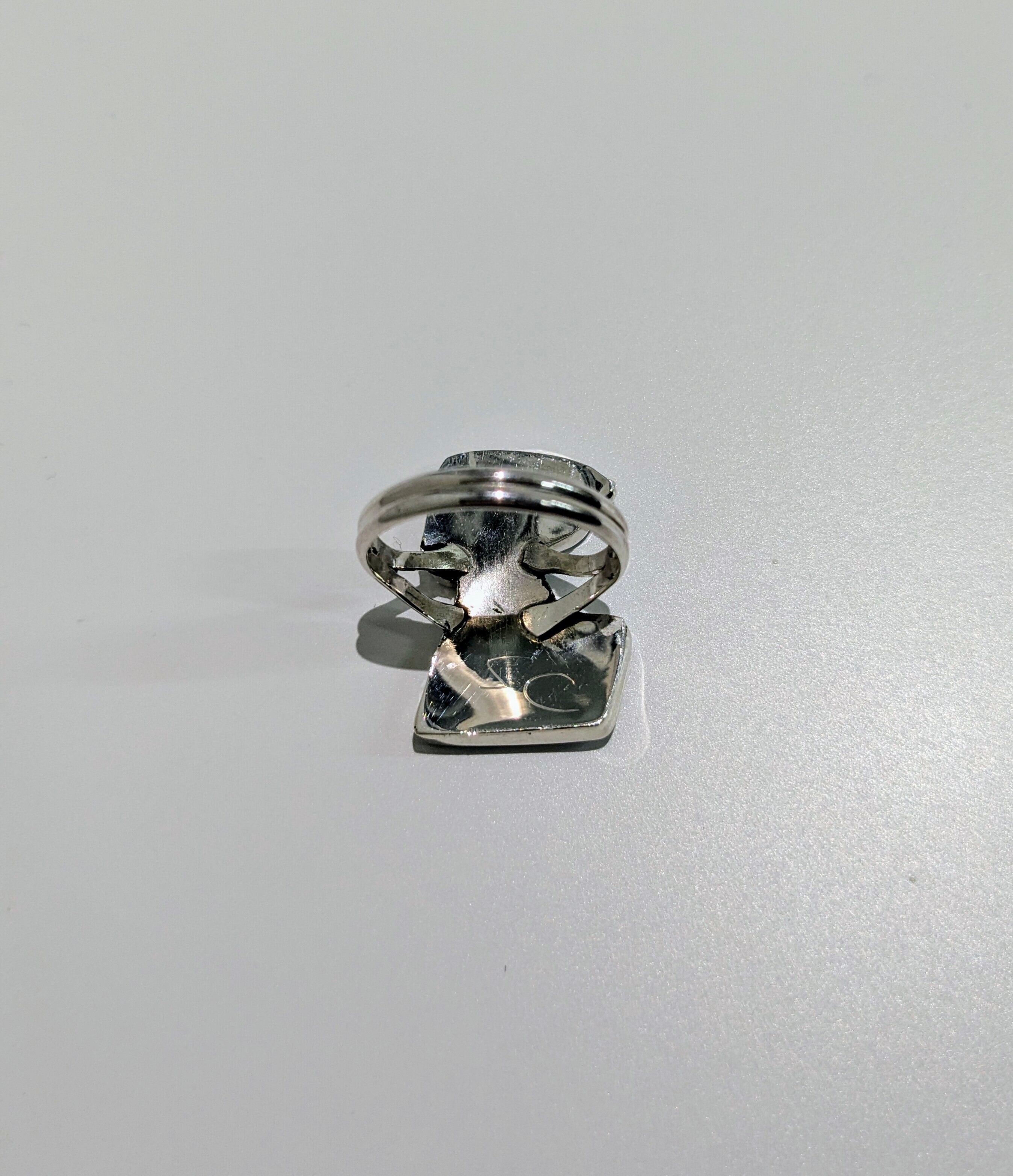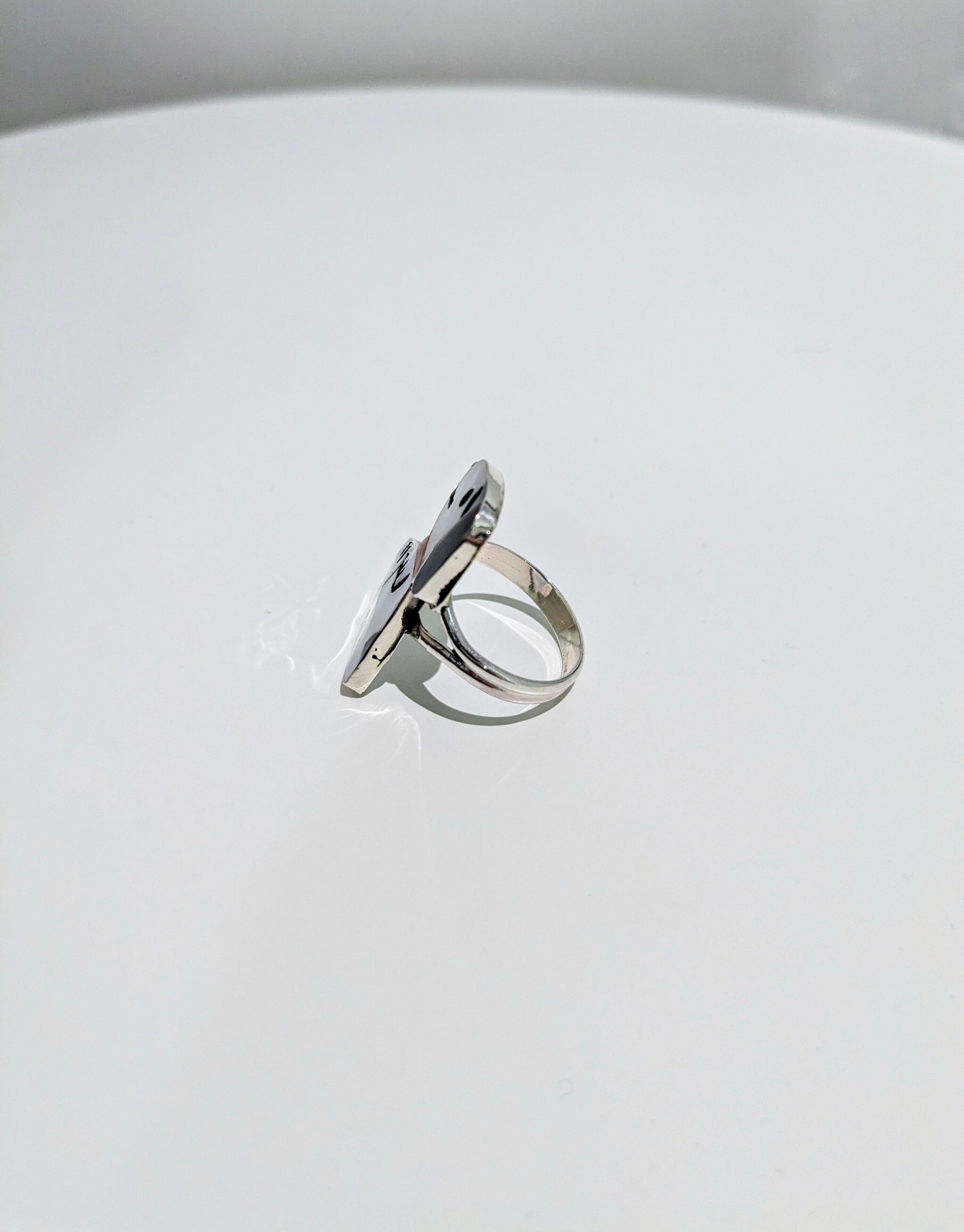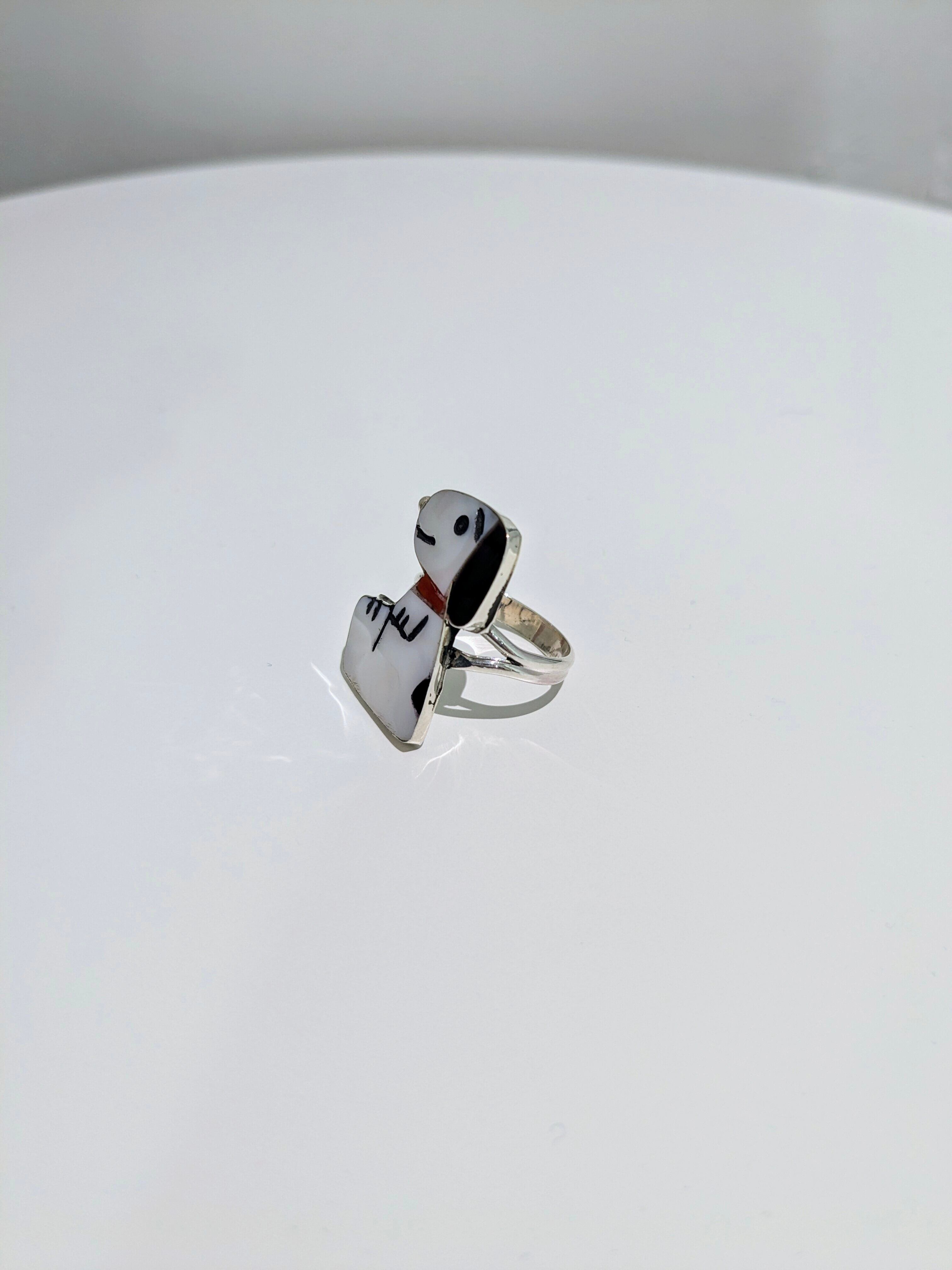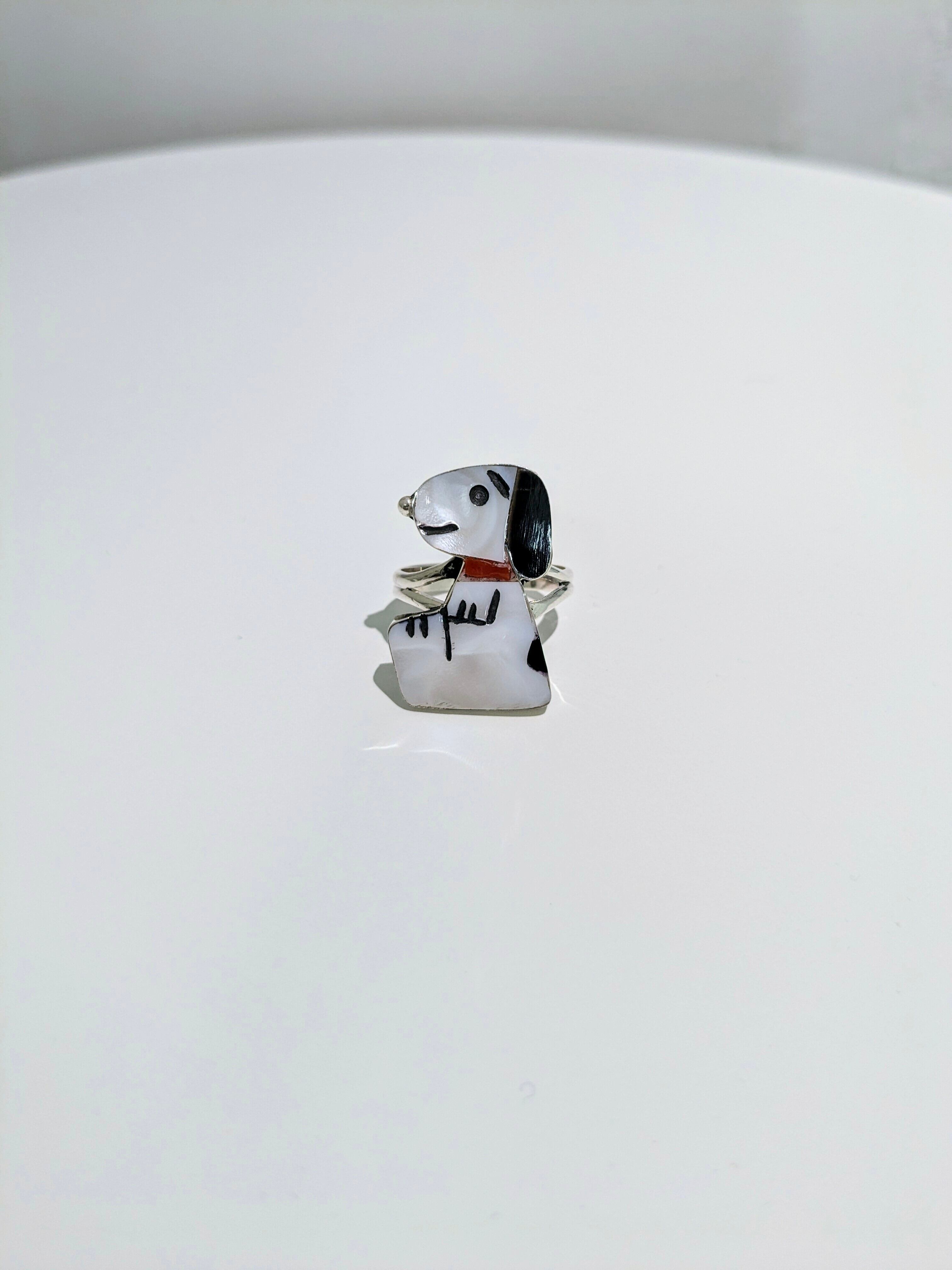 可愛らしいキャラクターがインレイワークされた、ズニ族のリングになります。