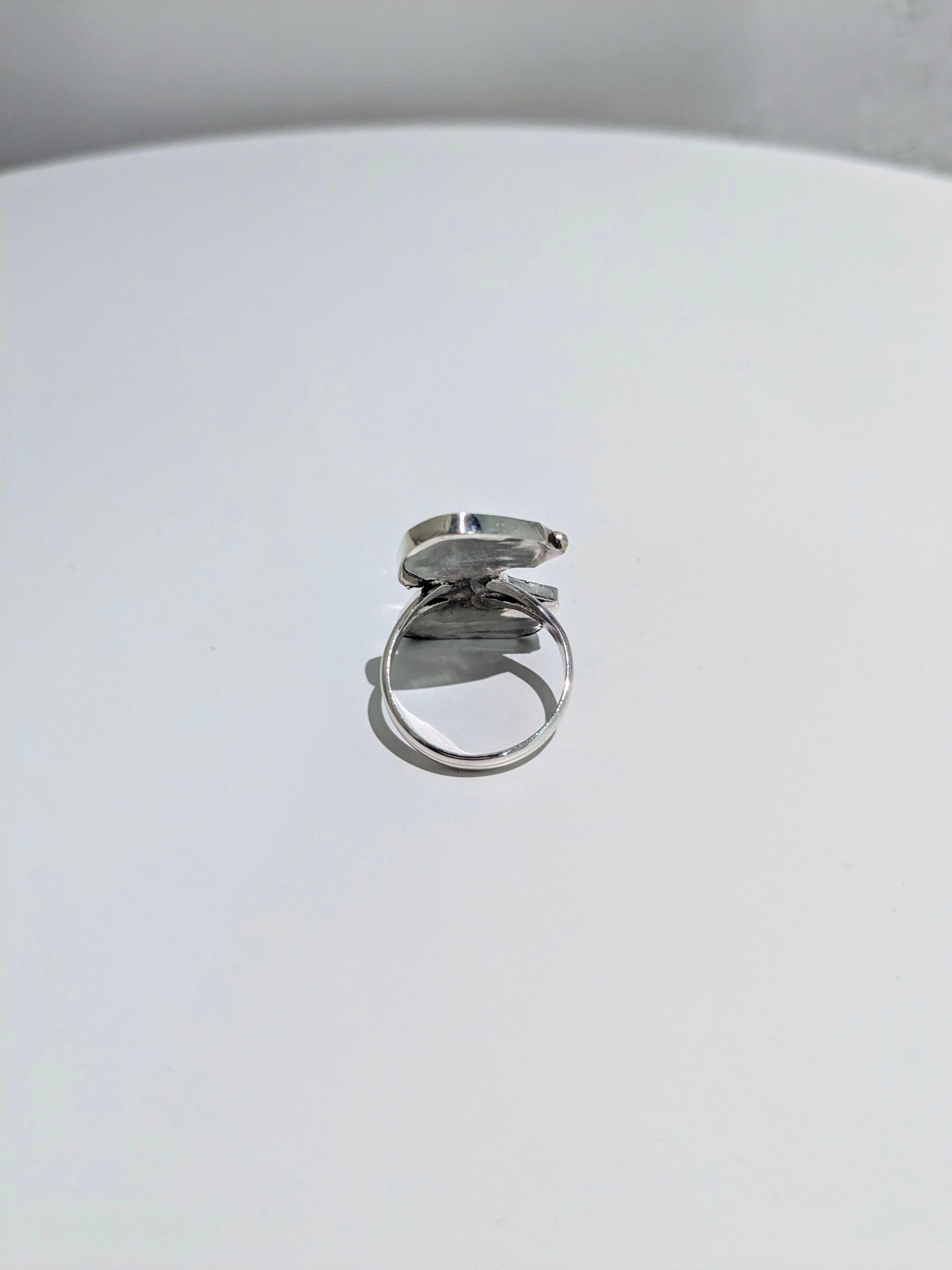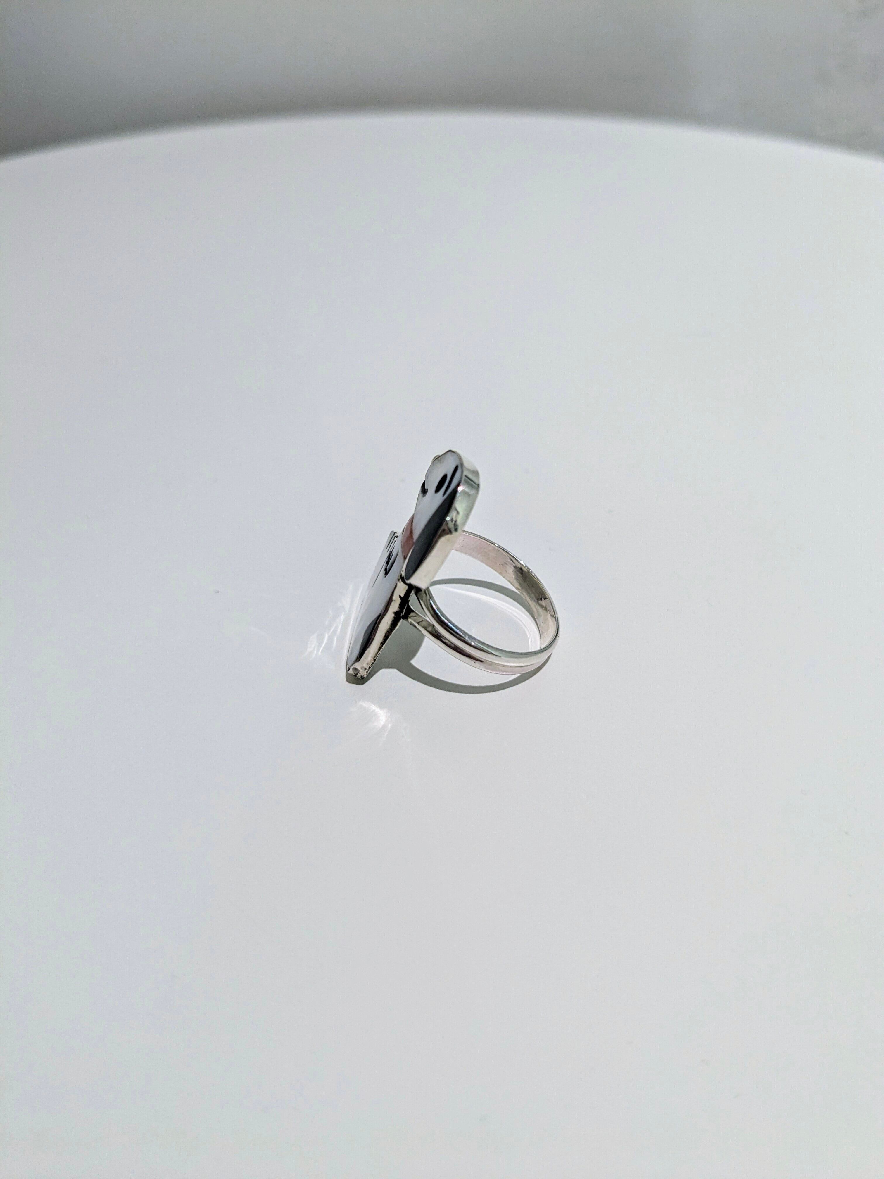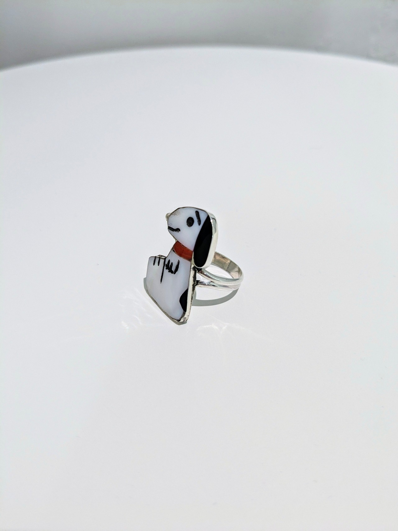 可愛らしいキャラクターがインレイワークされた、ズニ族のリングになります。