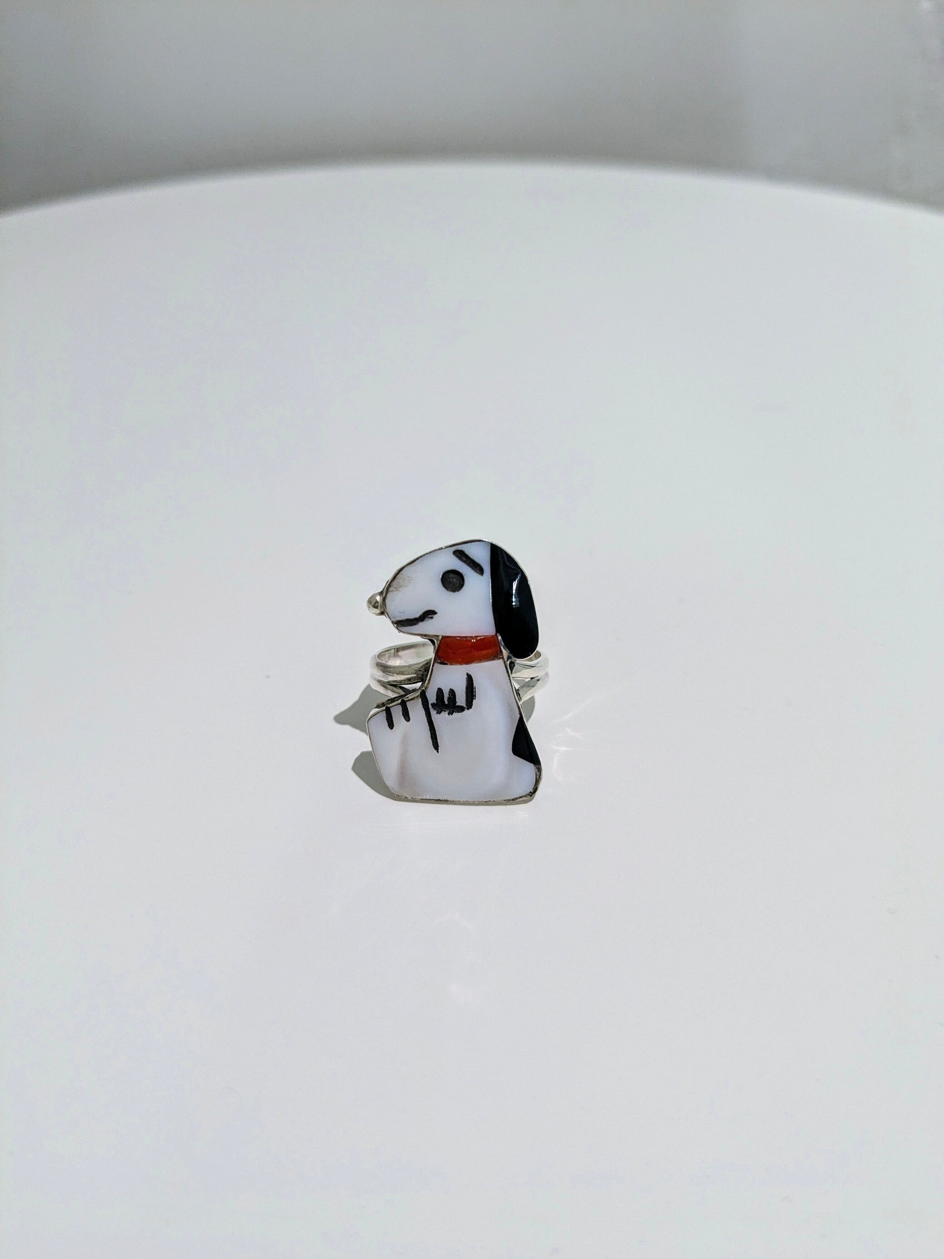 Shenel Comosona(シェネル コモソネ)は、ズニ族のアーティストで、細かなインレイ技法を得意としています。特にキャラクターアイテムの制作が代表作の一つで、スヌーピーをモチーフにした作品も作られています。