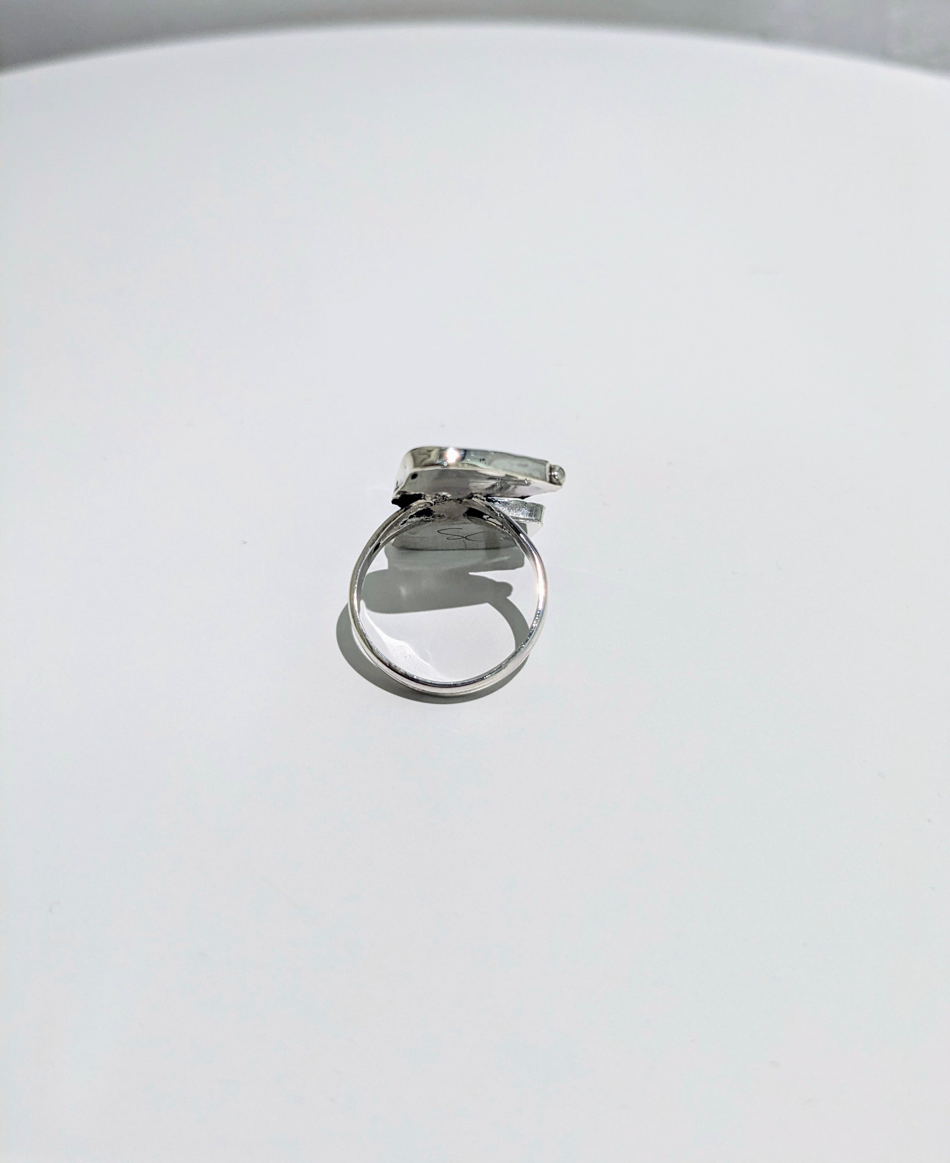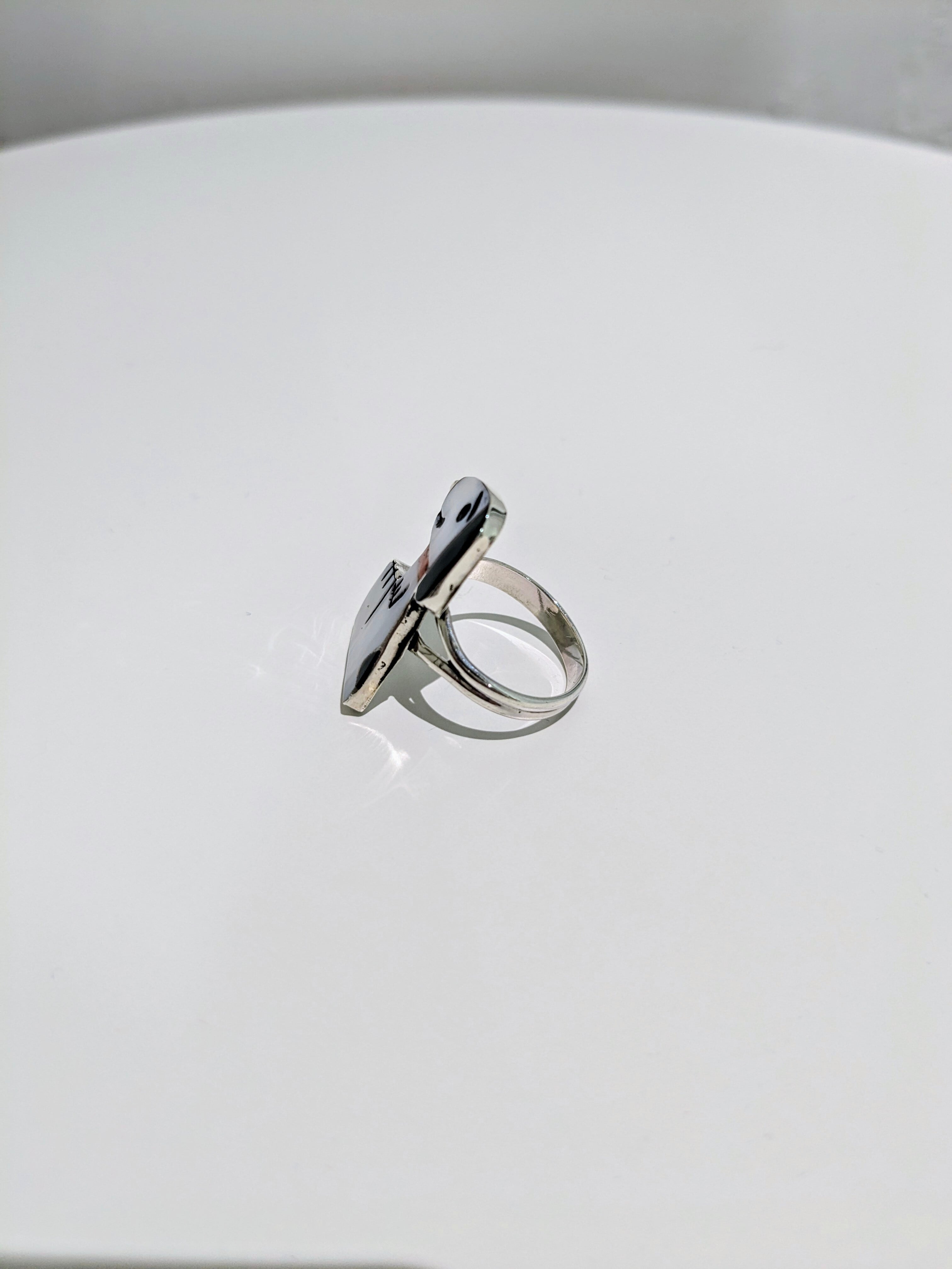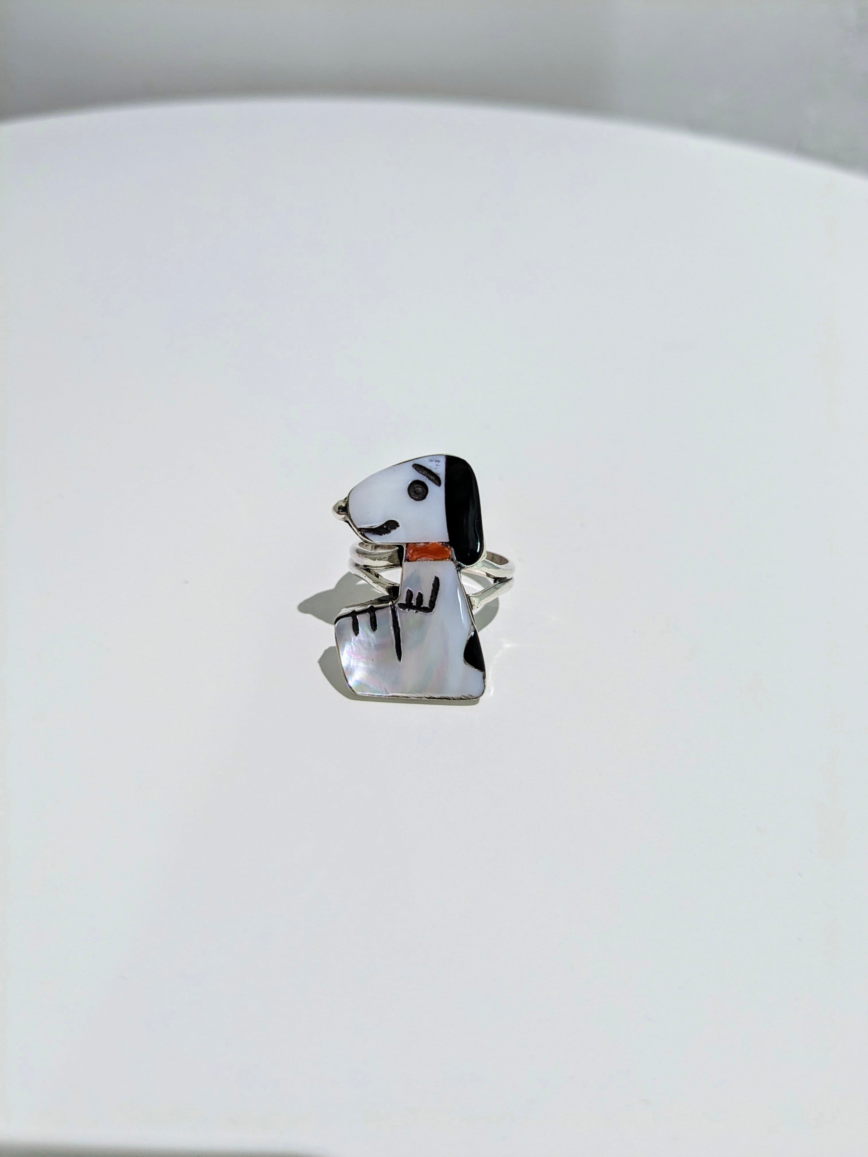 可愛らしいキャラクターがインレイワークされた、ズニ族のリングになります。