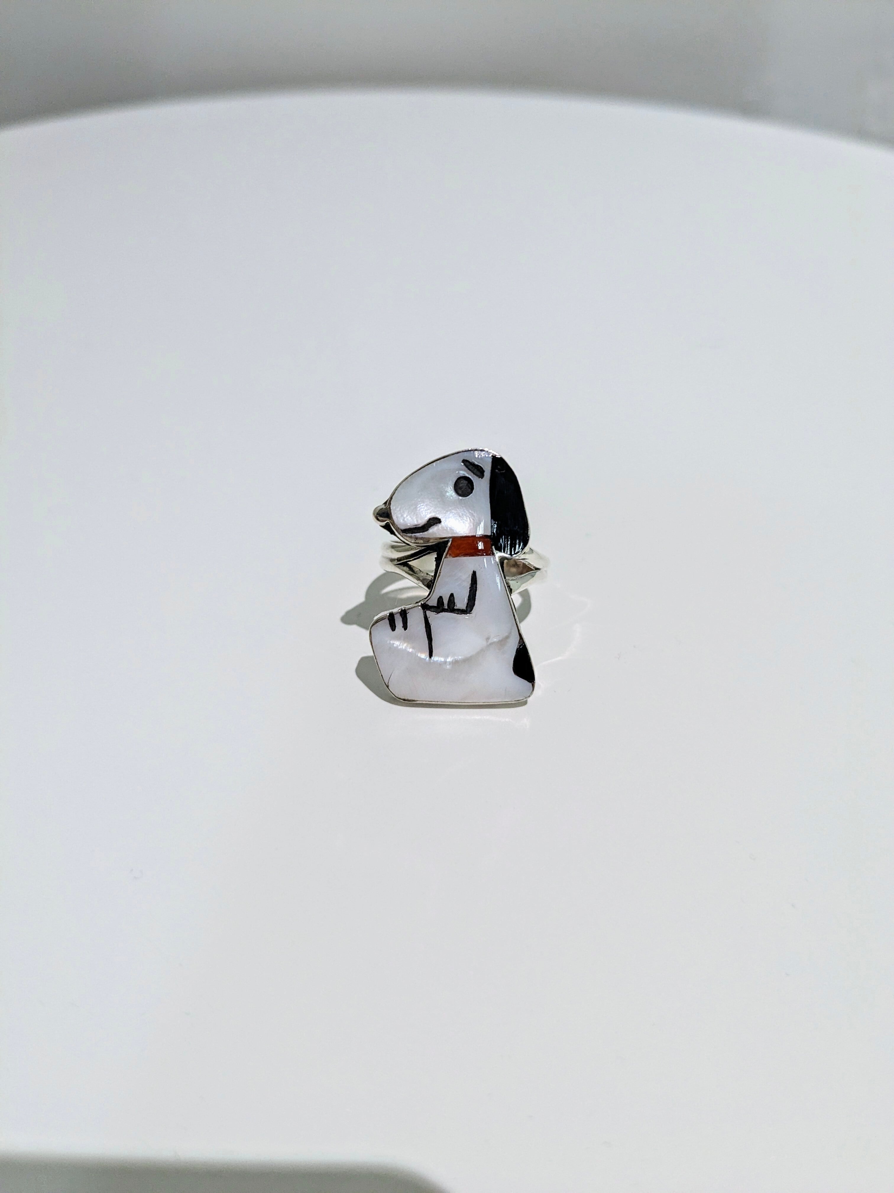 Shenel Comosona(シェネル コモソネ)は、ズニ族のアーティストで、細かなインレイ技法を得意としています。特にキャラクターアイテムの制作が代表作の一つで、スヌーピーをモチーフにした作品も作られています。