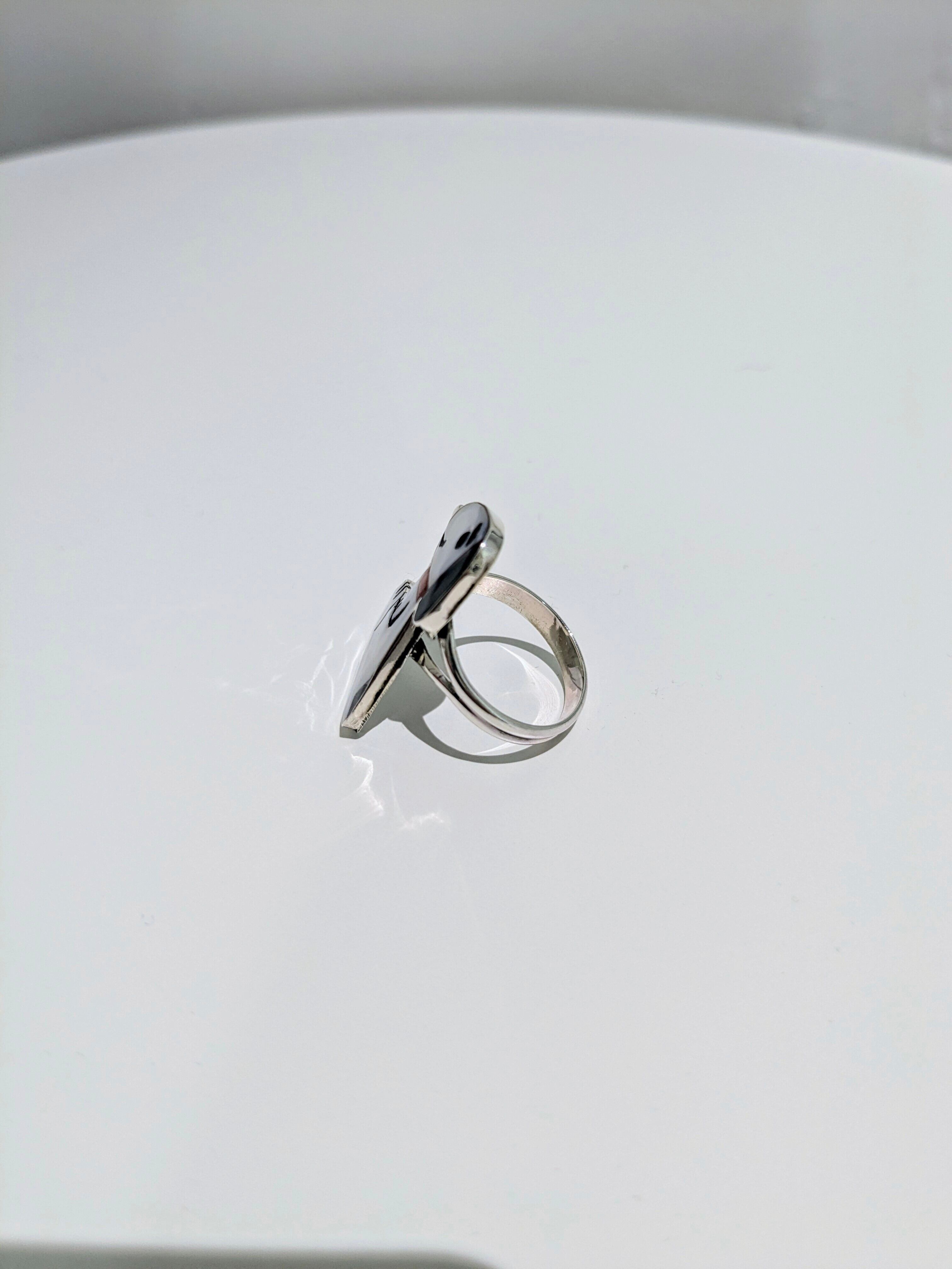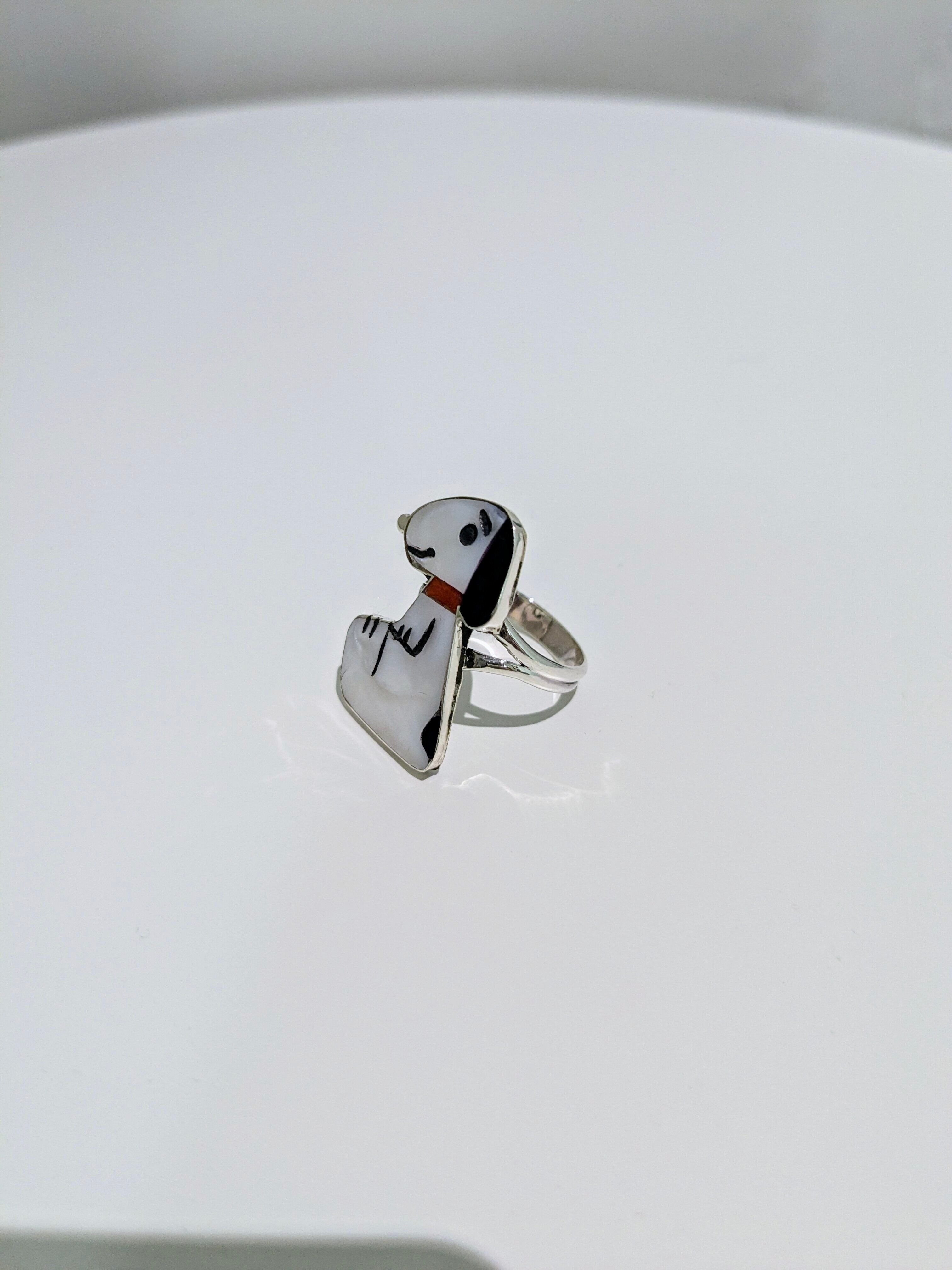 可愛らしいキャラクターがインレイワークされた、ズニ族のリングになります。