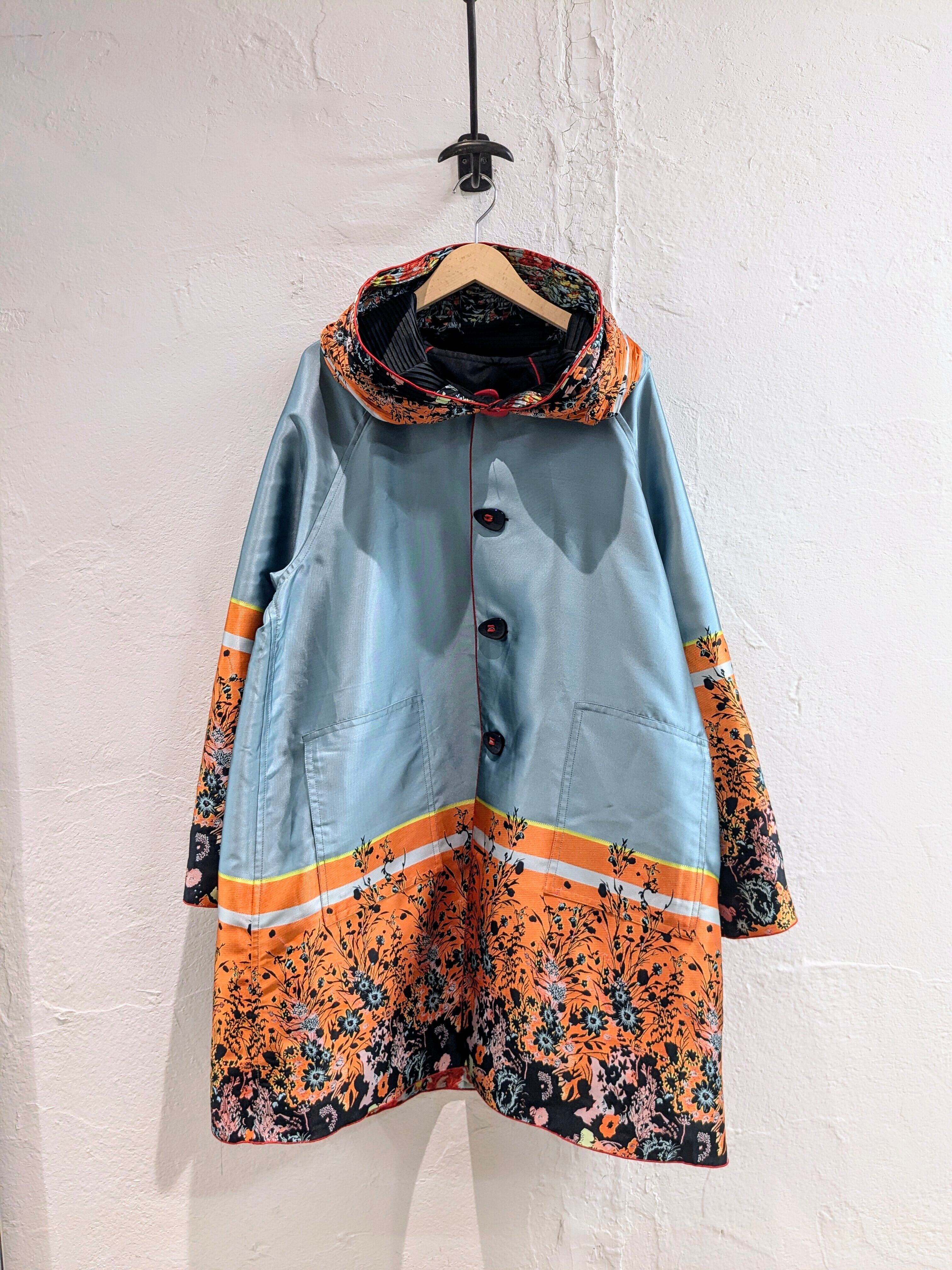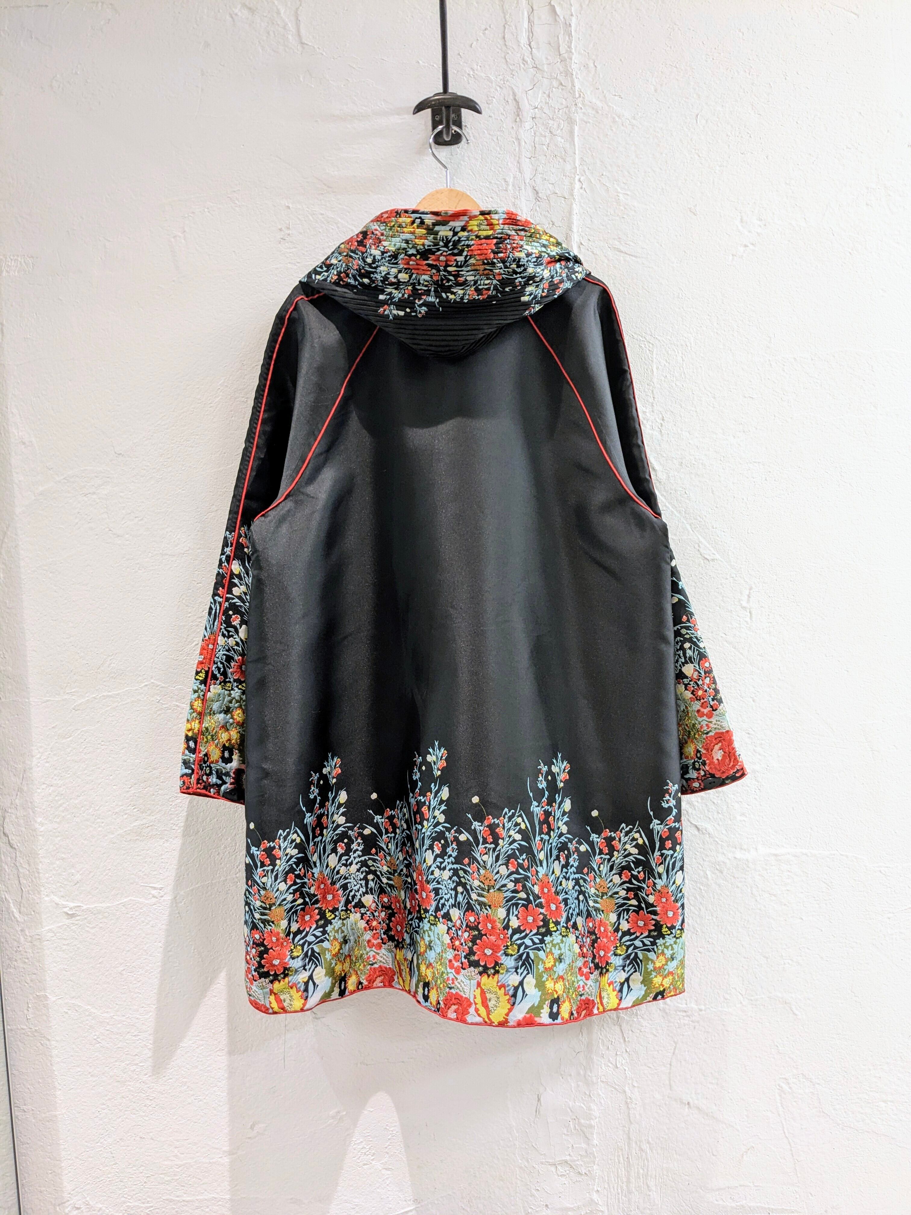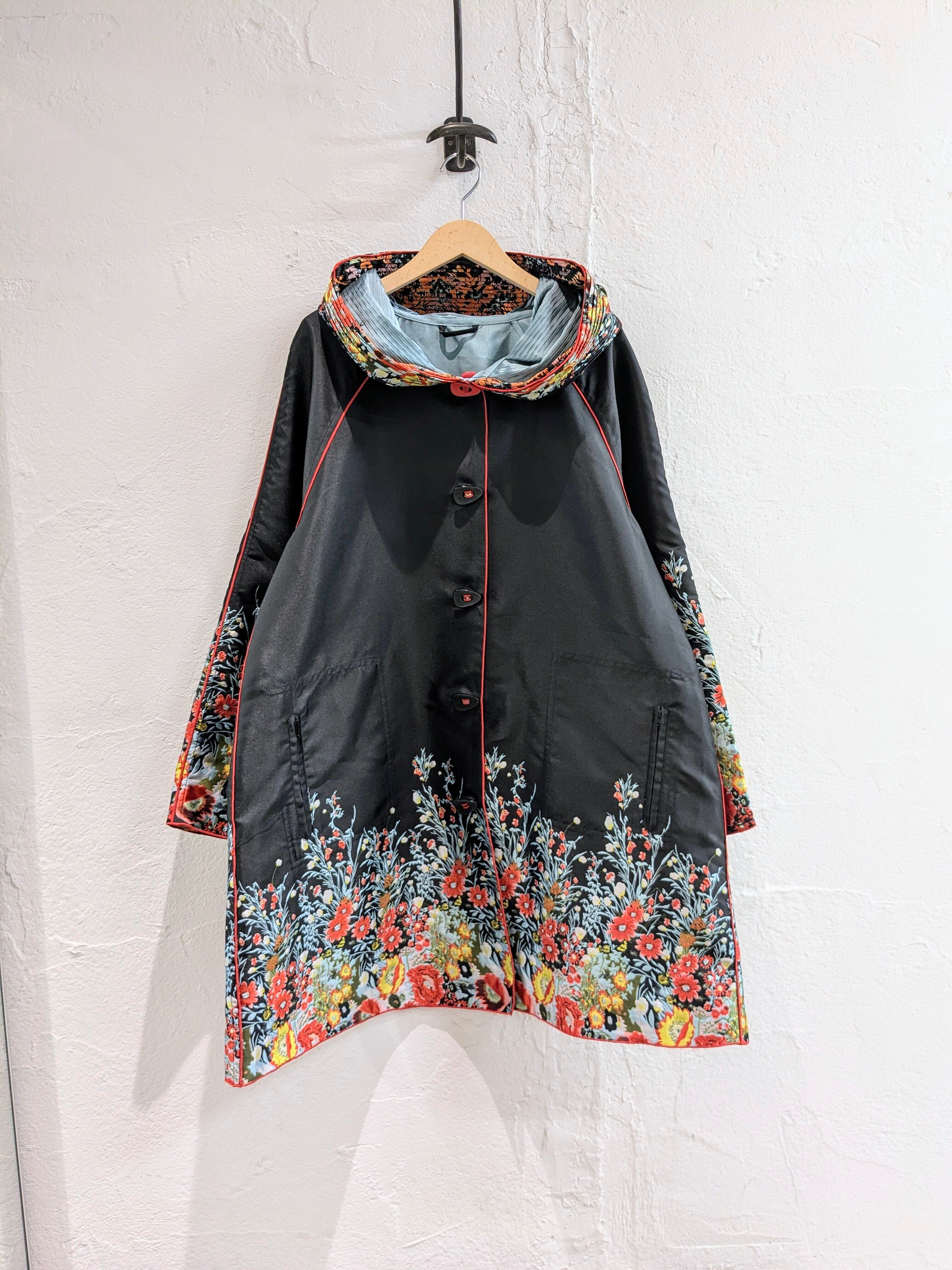 めちゃくちゃ雰囲気のいいコート入荷しております。ずっと自分用にしようか悩みながら店頭に並べております。花柄のデザインが目を引く一枚。それだけでなく、フードがプリーツになっており、ここにも花柄が入っております。さらに、リバーシブルとなっており、もはや両面ともA面と言っても過言ではないかと。どこか、黒の衝撃で有名なあのブランドを彷彿とさせるデザインと勝手に思っています。同じモノを探すほうが大変かと思います。この機会に是非。