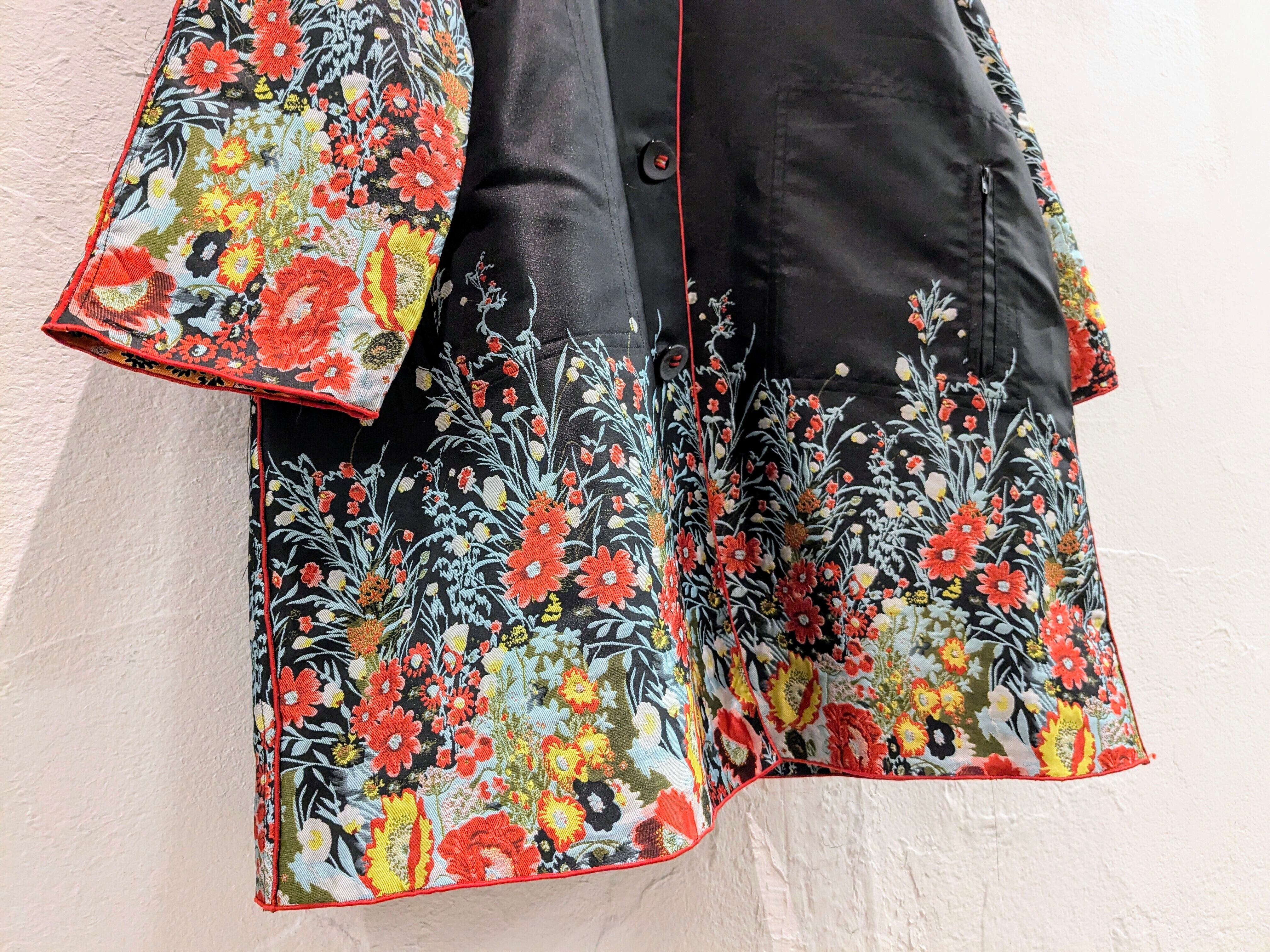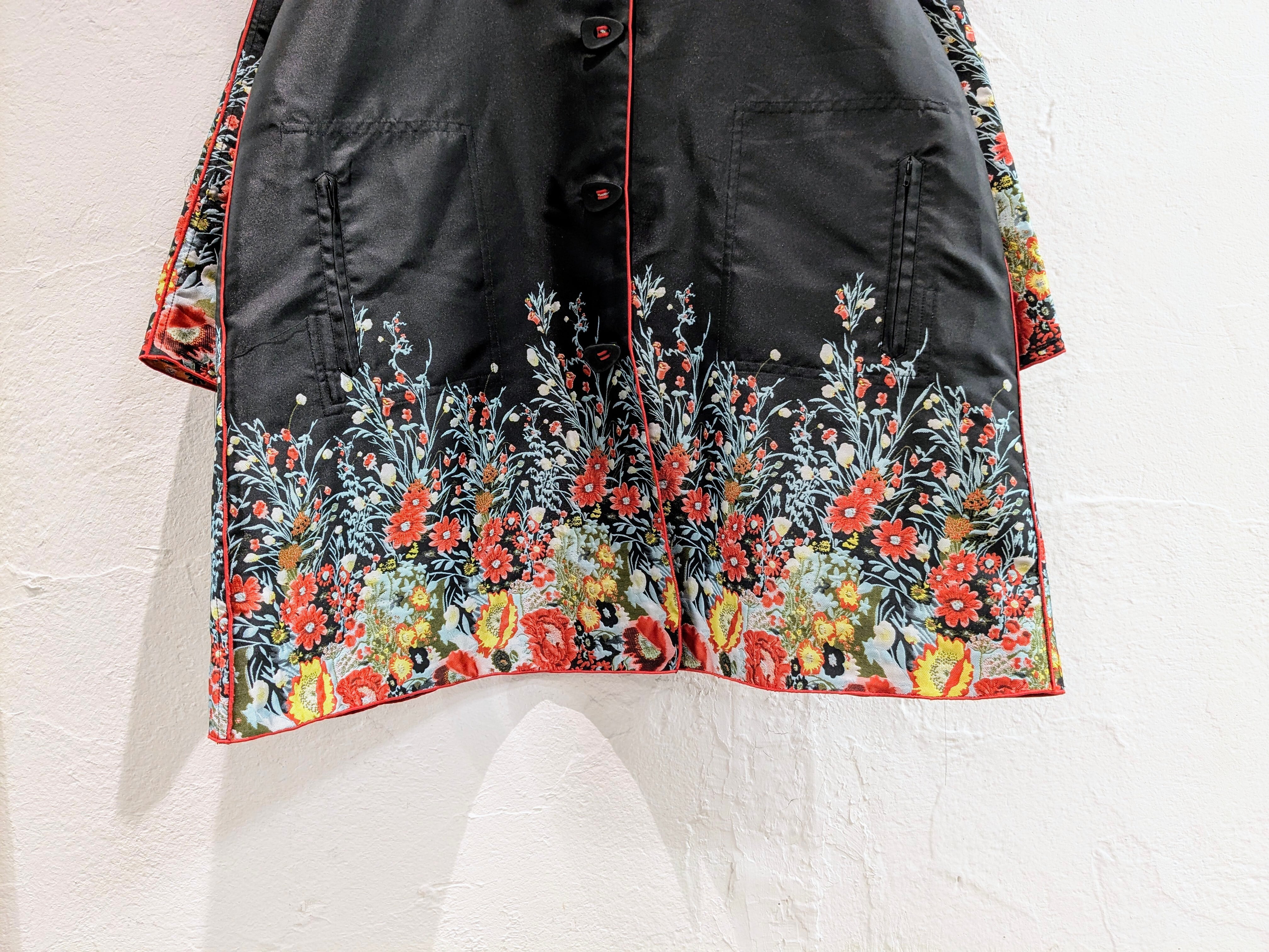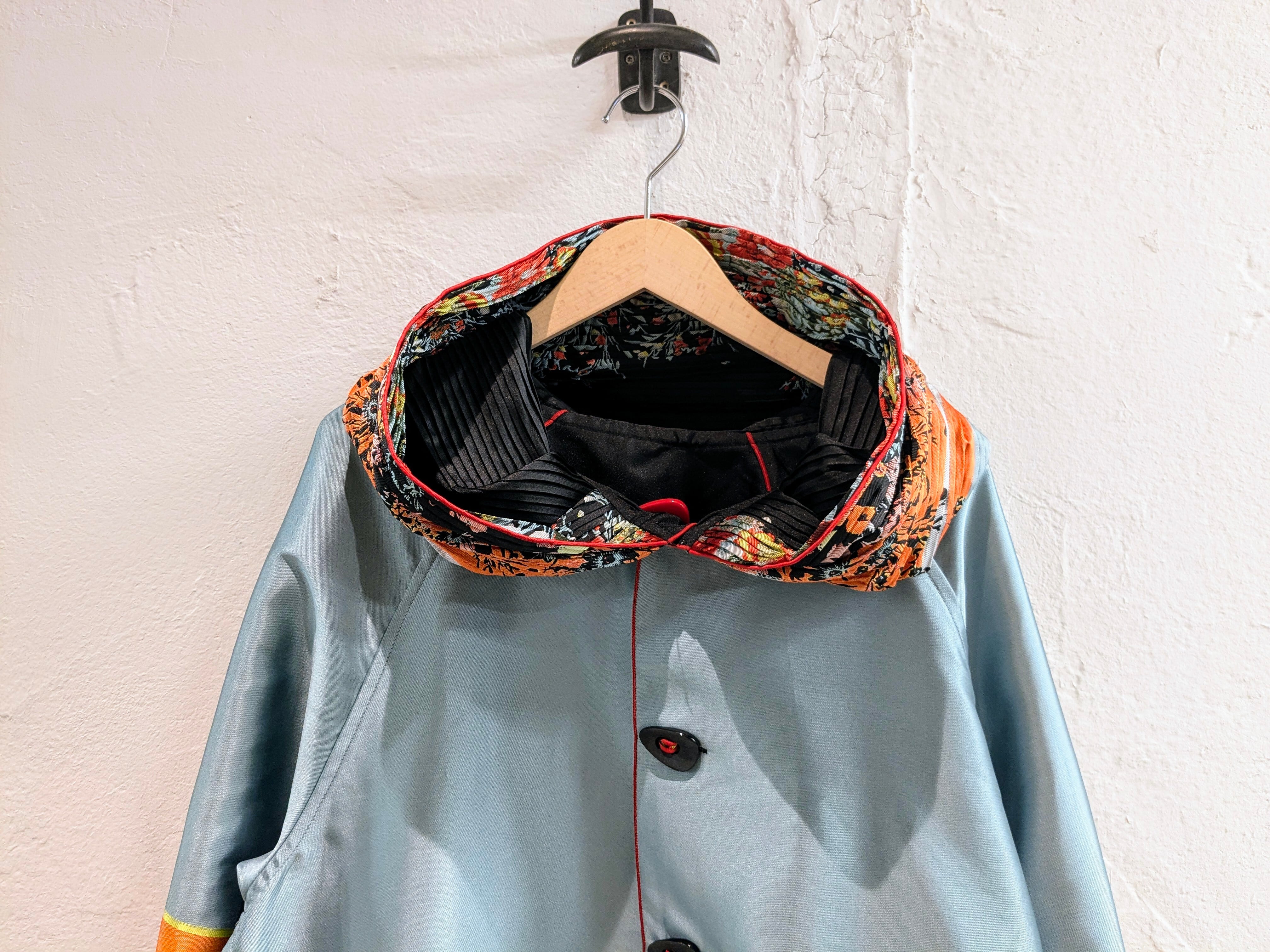 めちゃくちゃ雰囲気のいいコート入荷しております。ずっと自分用にしようか悩みながら店頭に並べております。花柄のデザインが目を引く一枚。それだけでなく、フードがプリーツになっており、ここにも花柄が入っております。さらに、リバーシブルとなっており、もはや両面ともA面と言っても過言ではないかと。どこか、黒の衝撃で有名なあのブランドを彷彿とさせるデザインと勝手に思っています。同じモノを探すほうが大変かと思います。この機会に是非。