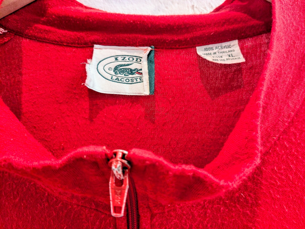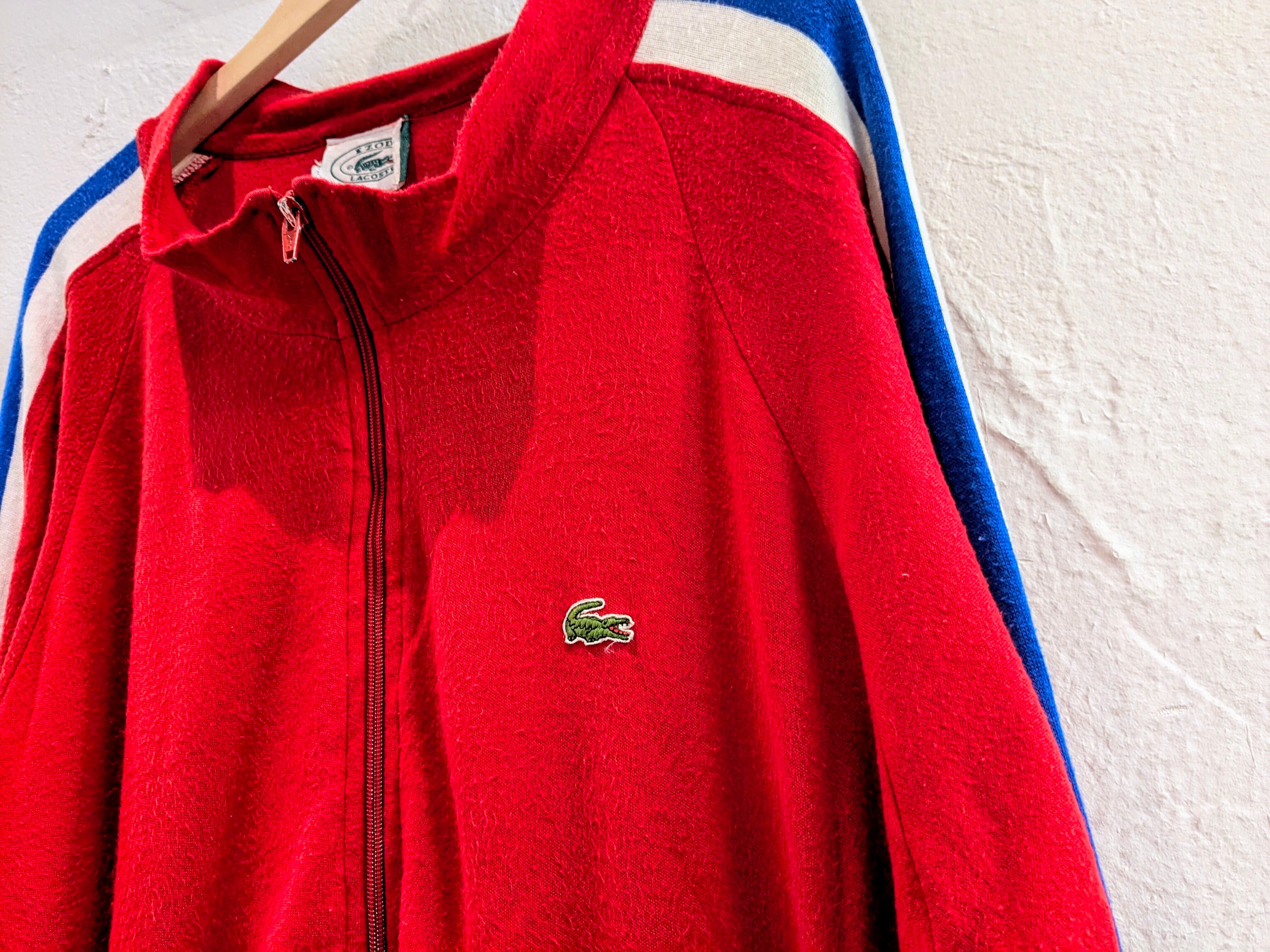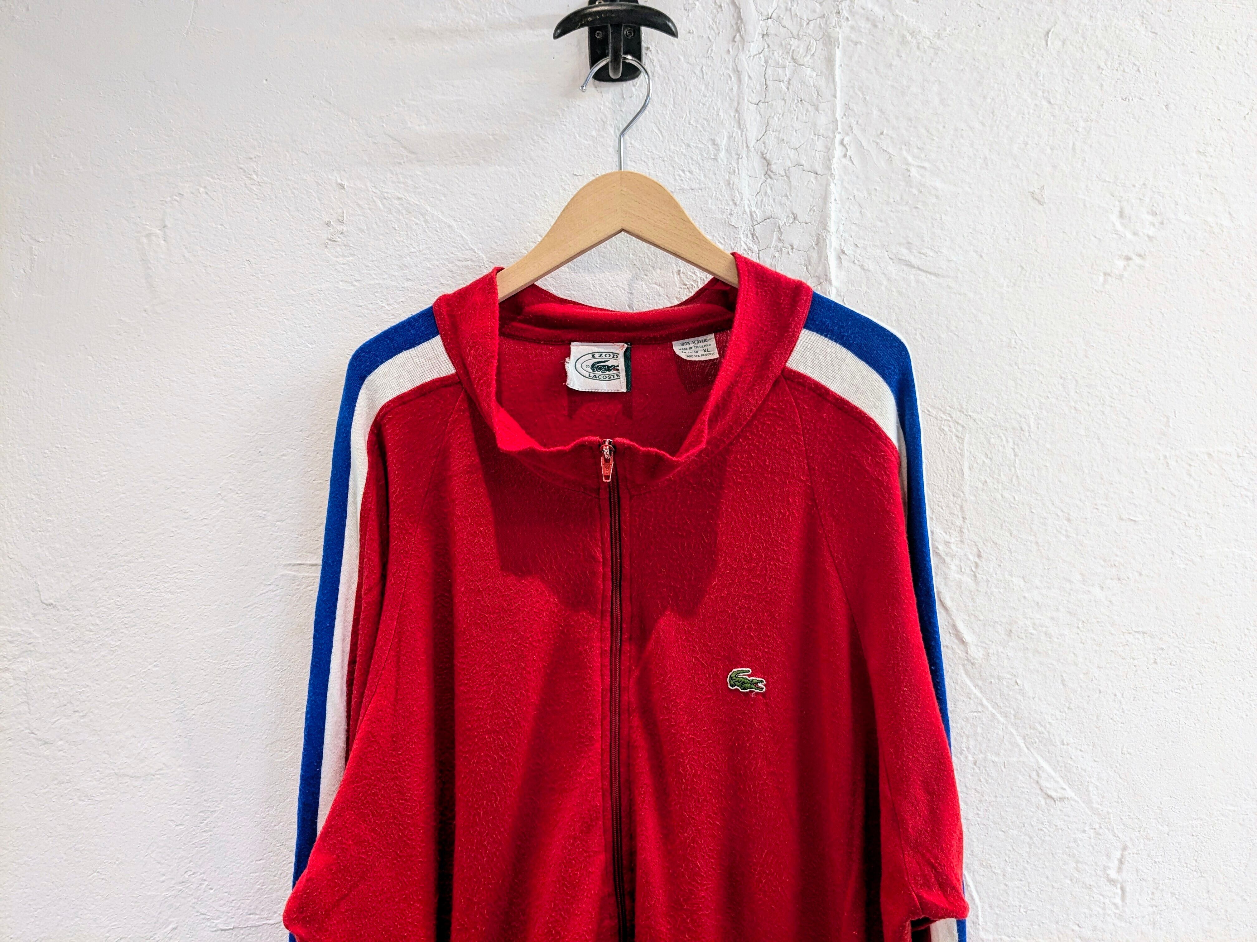 1980-1990年代のアイゾッドラコステ。袖に、青と白のラインが入っています。素材はかなり柔らかくドレープ感のある生地となっています。大きめでゆったりと着ていただけます。ラグランスリーブ、落ち感のある素材で大きめではありますが、綺麗なシルエットで着ていただけます。ジャケットとかの中に着るスタイルが多いかと思いますが、こちらは逆にジャケットの上などから羽織ってもカッコいいかと思います。