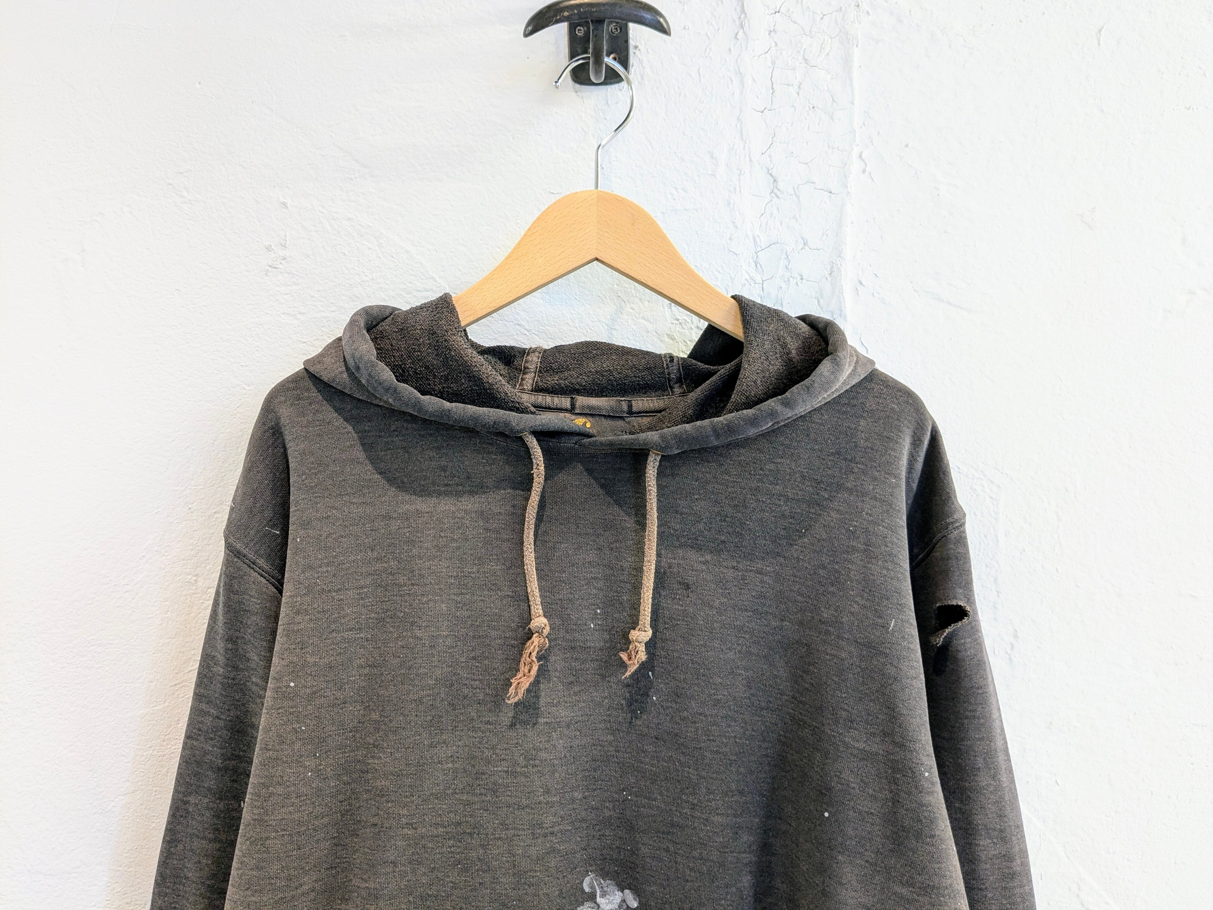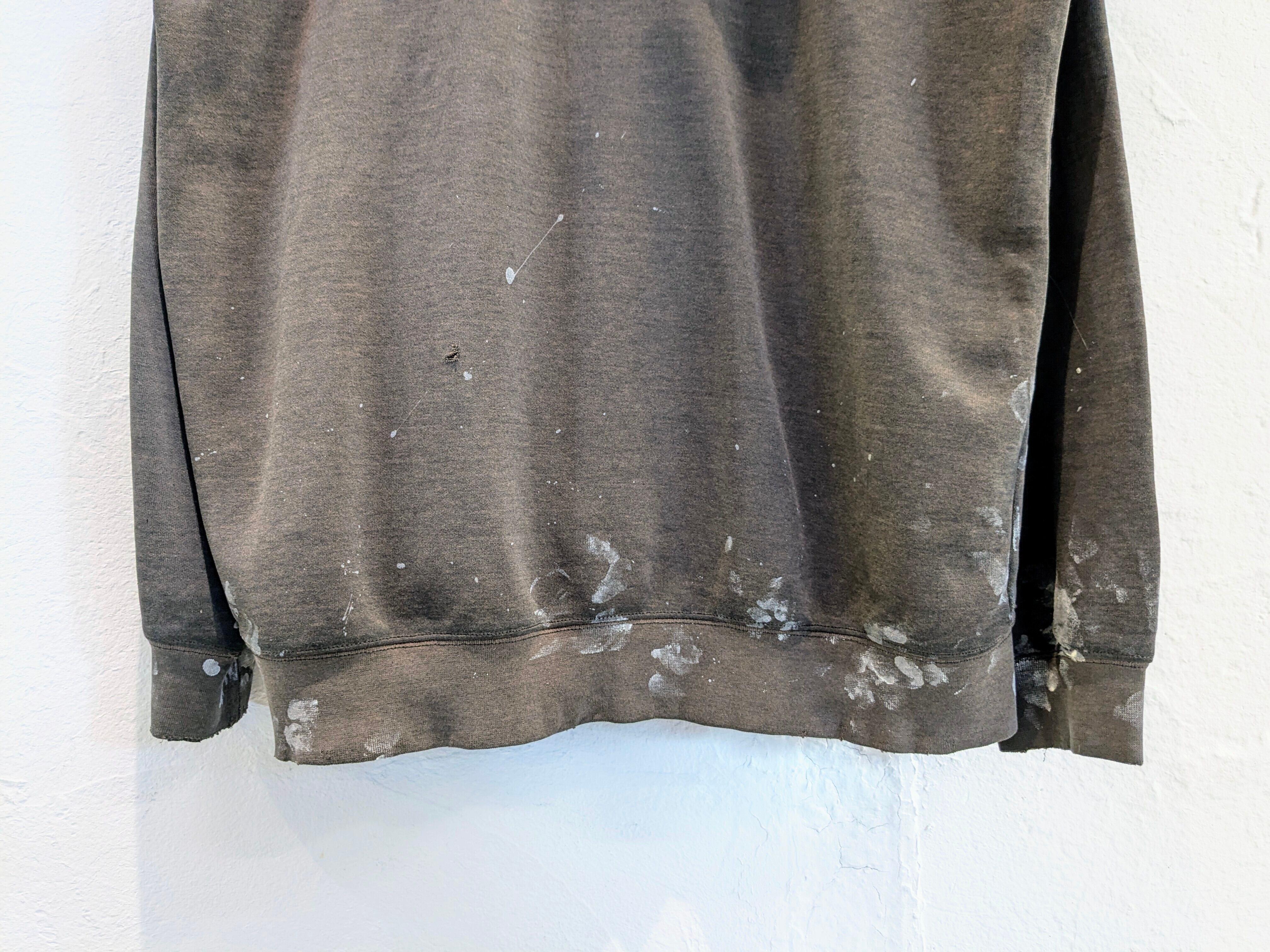 元々ダメージのある個体に対して、自然とサンフェードしたような色味、ペンキ加工を施した一着。雰囲気がめちゃくちゃありカッコいいです。ヴィンテージ感漂う一着。裏毛なので、これからの時期にもオススメ。