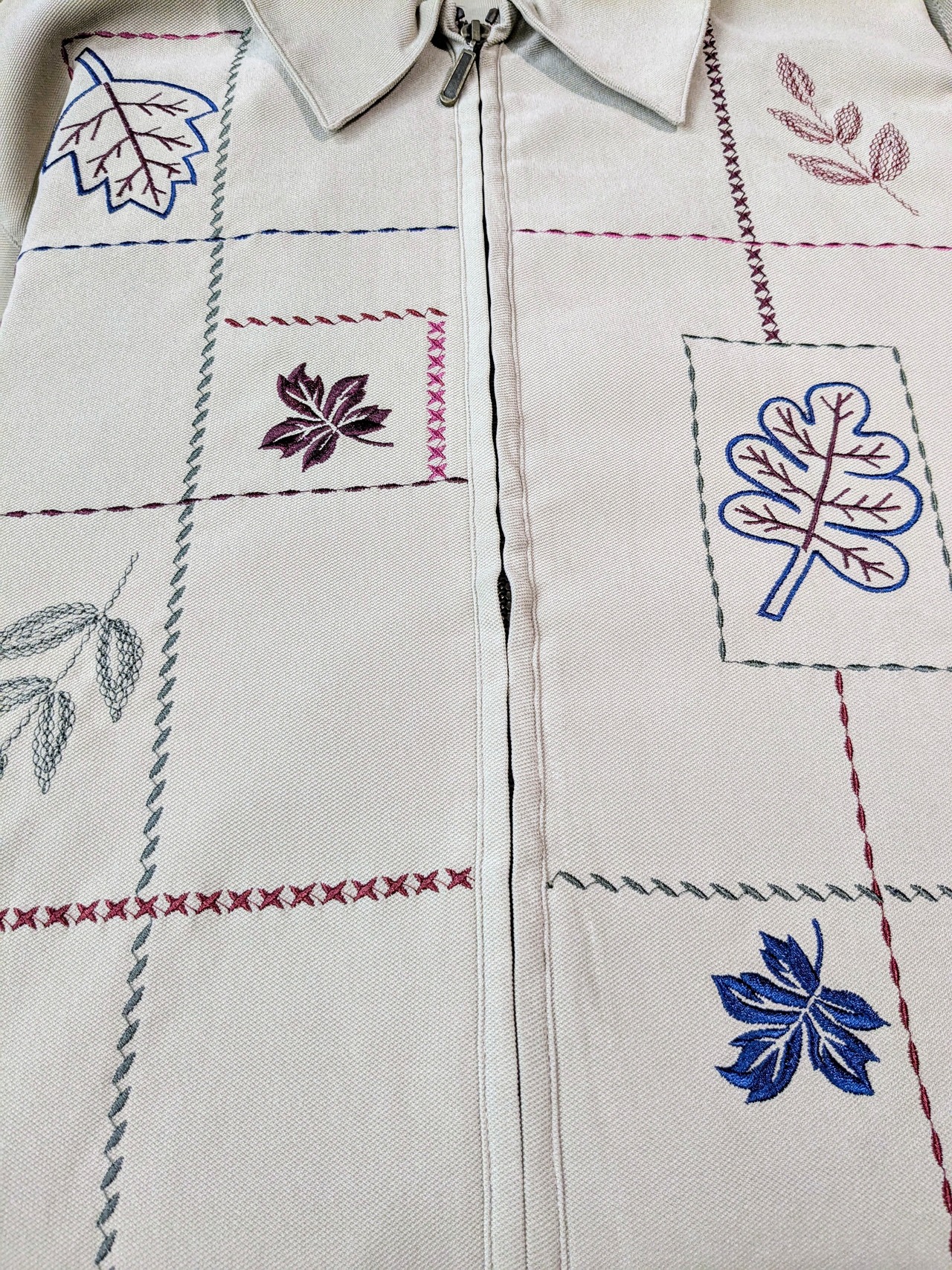 Leaf Embroidered Design Zipup Blouson
