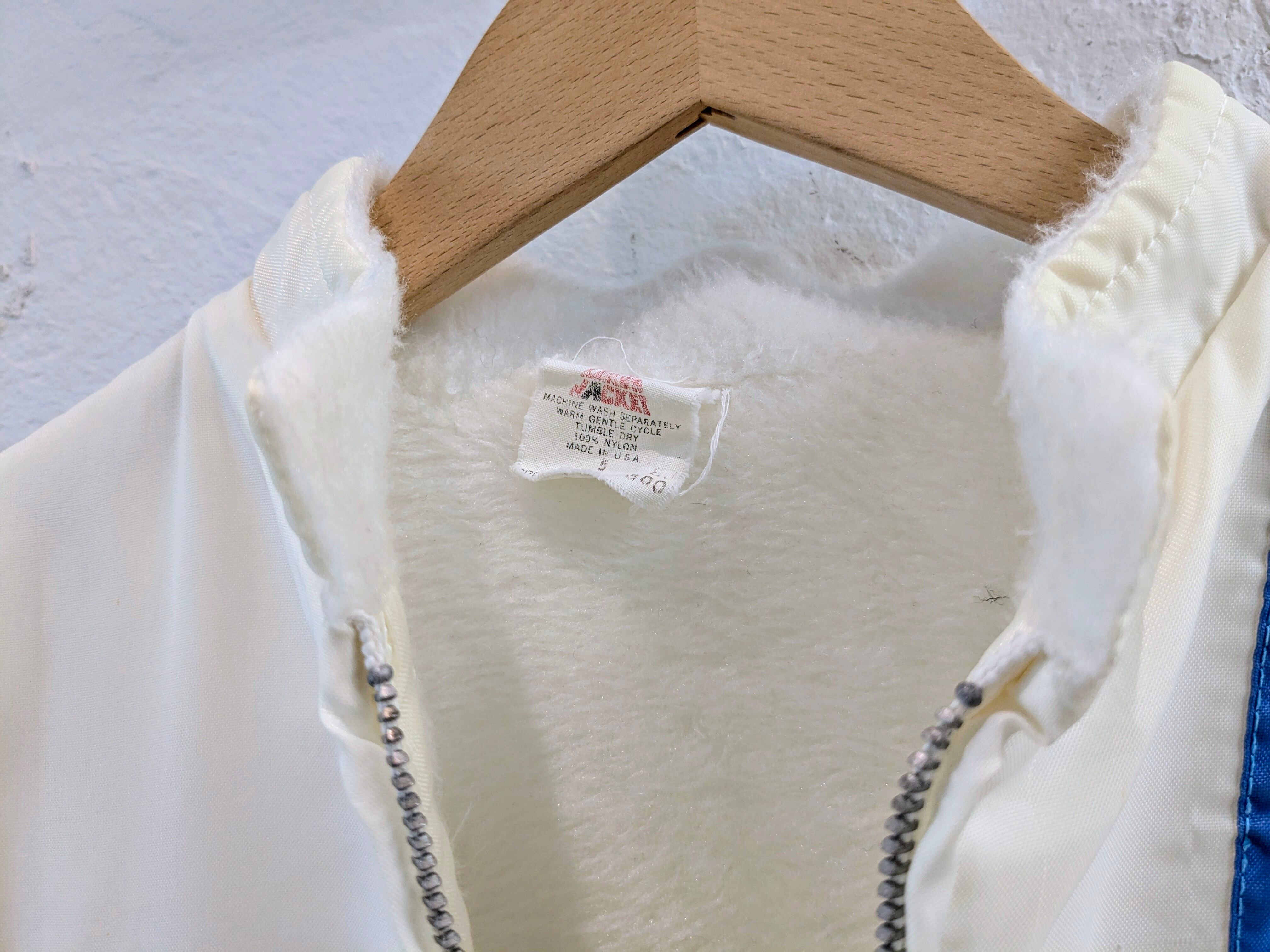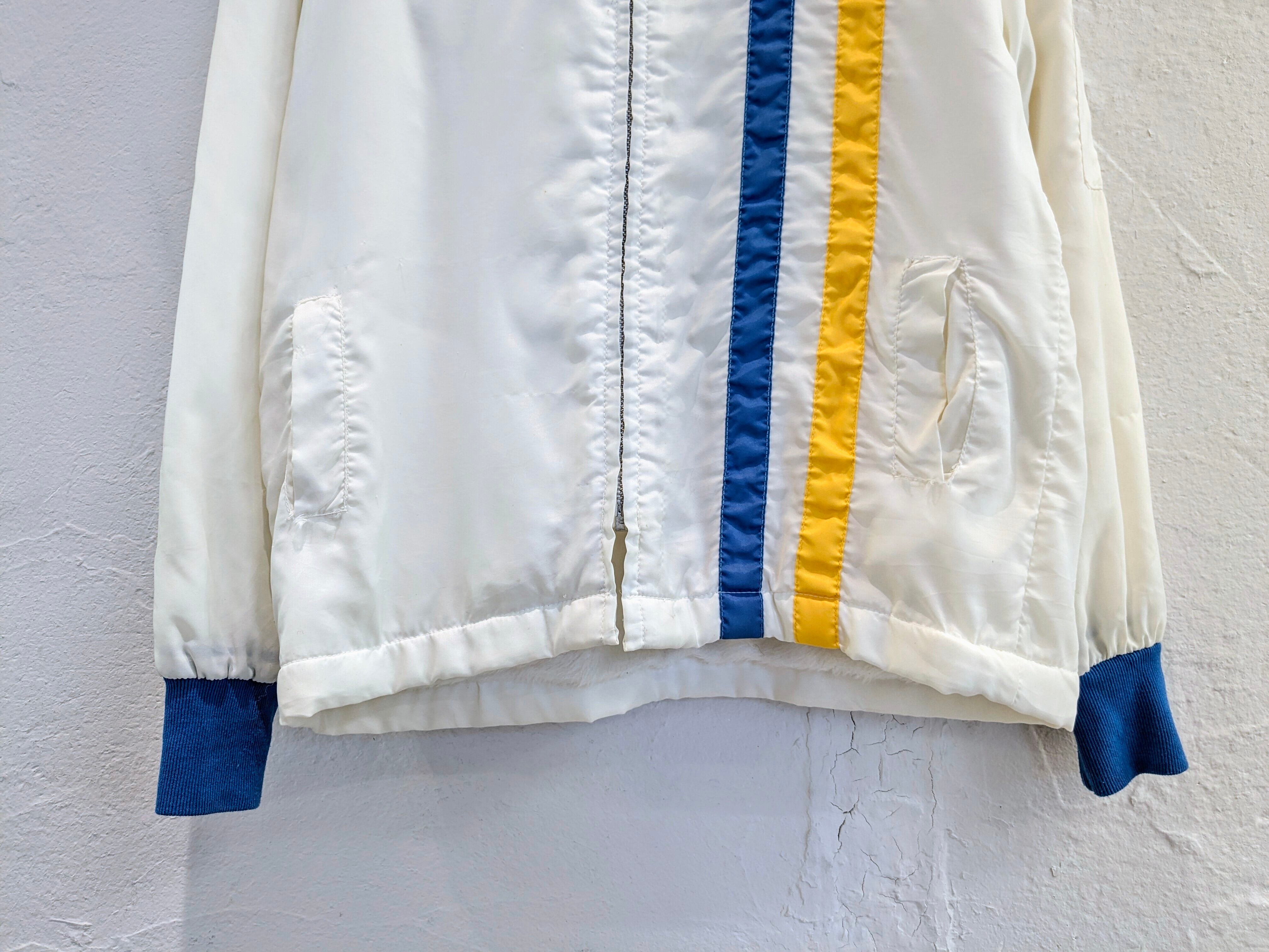 1970〜1980年代の企業系ナイロンブルゾン。配色などがとてもよく、身頃の裏部分はファーが張ってあります。ショート丈のバランスが今っぽく、いい意味でいなたい感じがたまらないアイテム。細かいキズ、汚れあります。