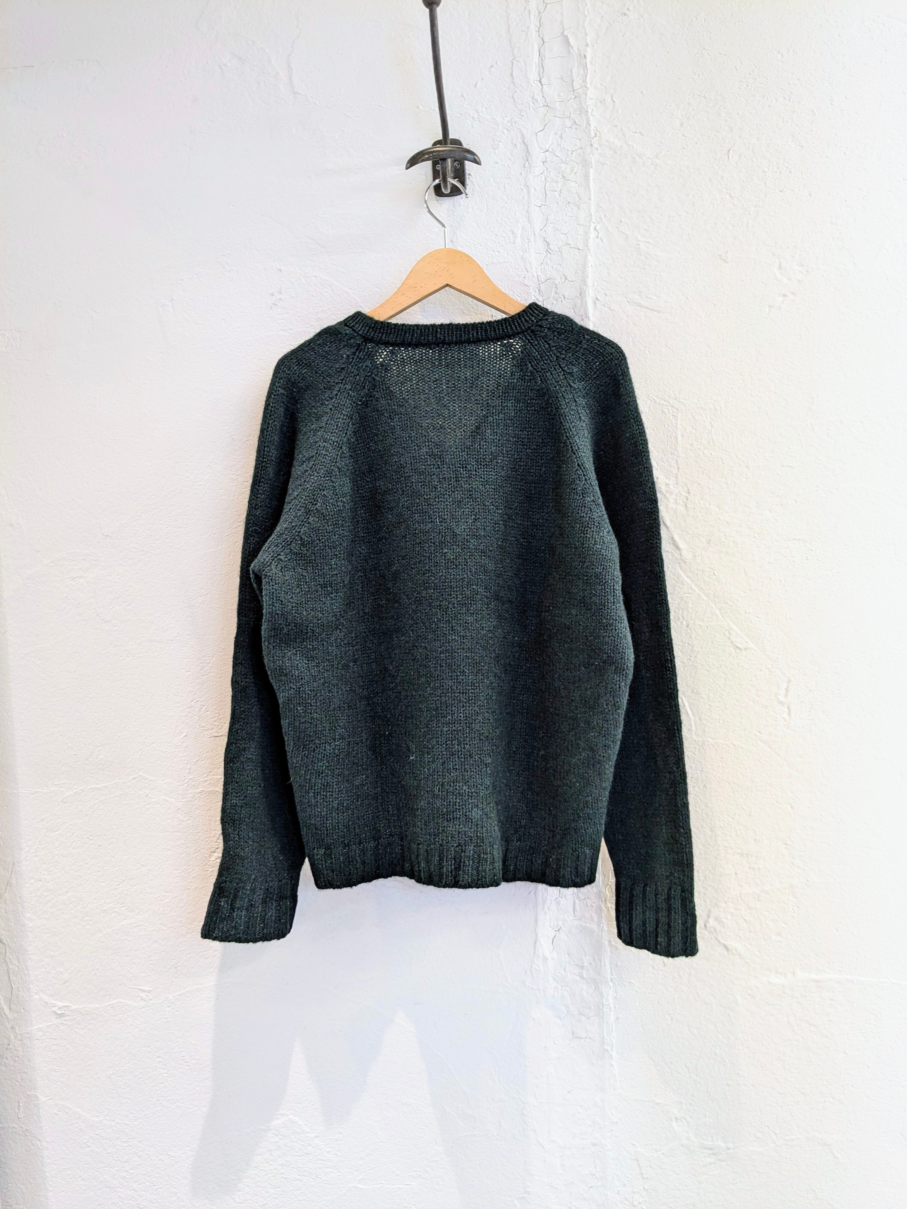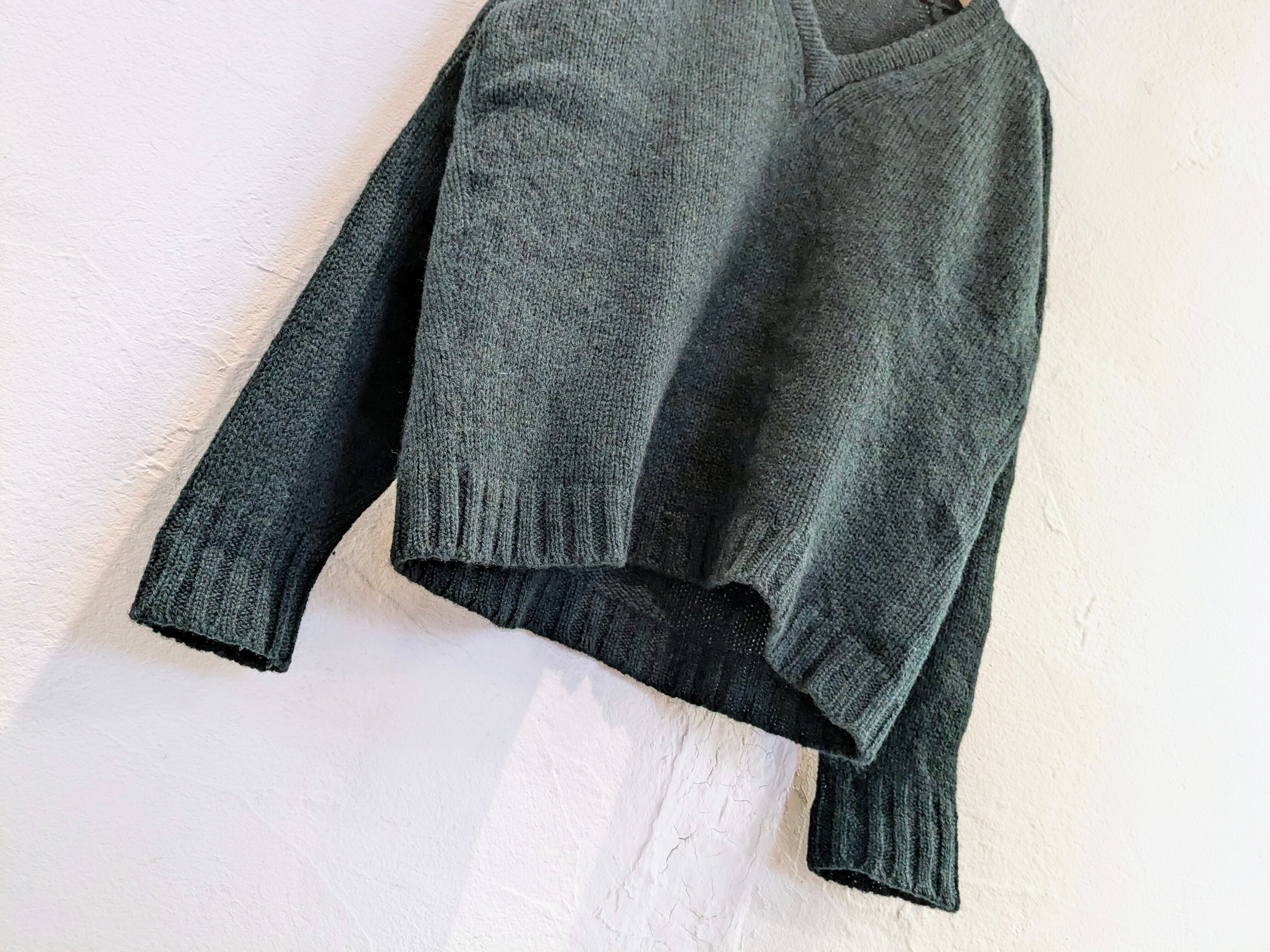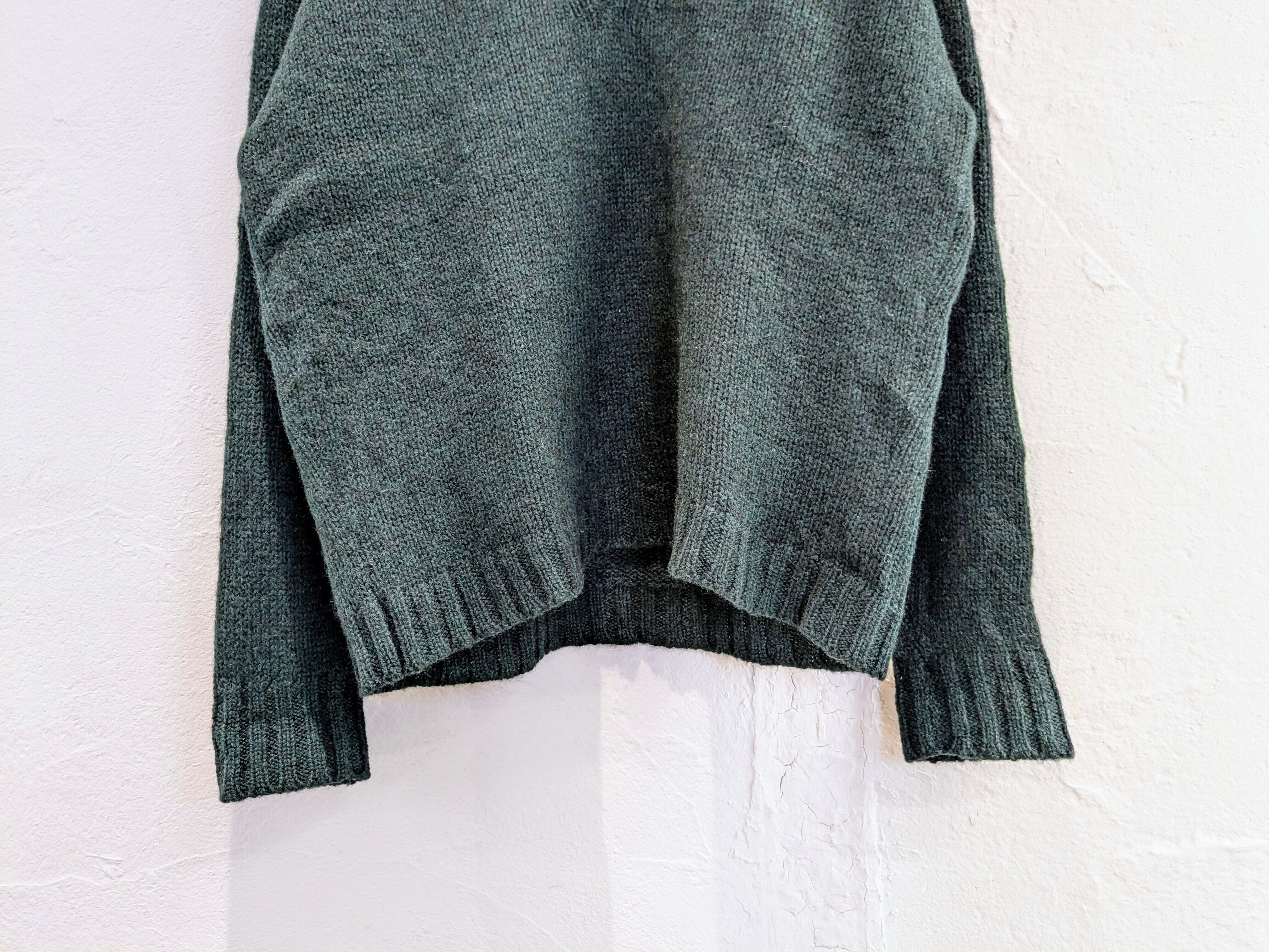 ただ、色味がグリーン系のメランジになっており、見る角度によって若干色が変わって見える綺麗な作りとなっています。肩はラグランスリーブなので、着たときのシルエットなども綺麗に見えます。上品さを兼ね備えたニット、結局一番着るやつかと。