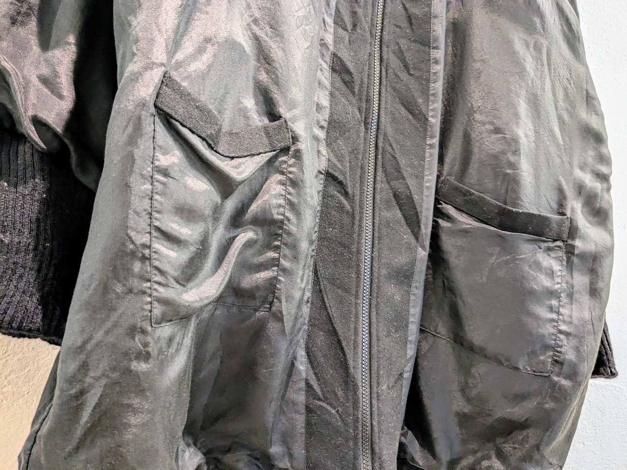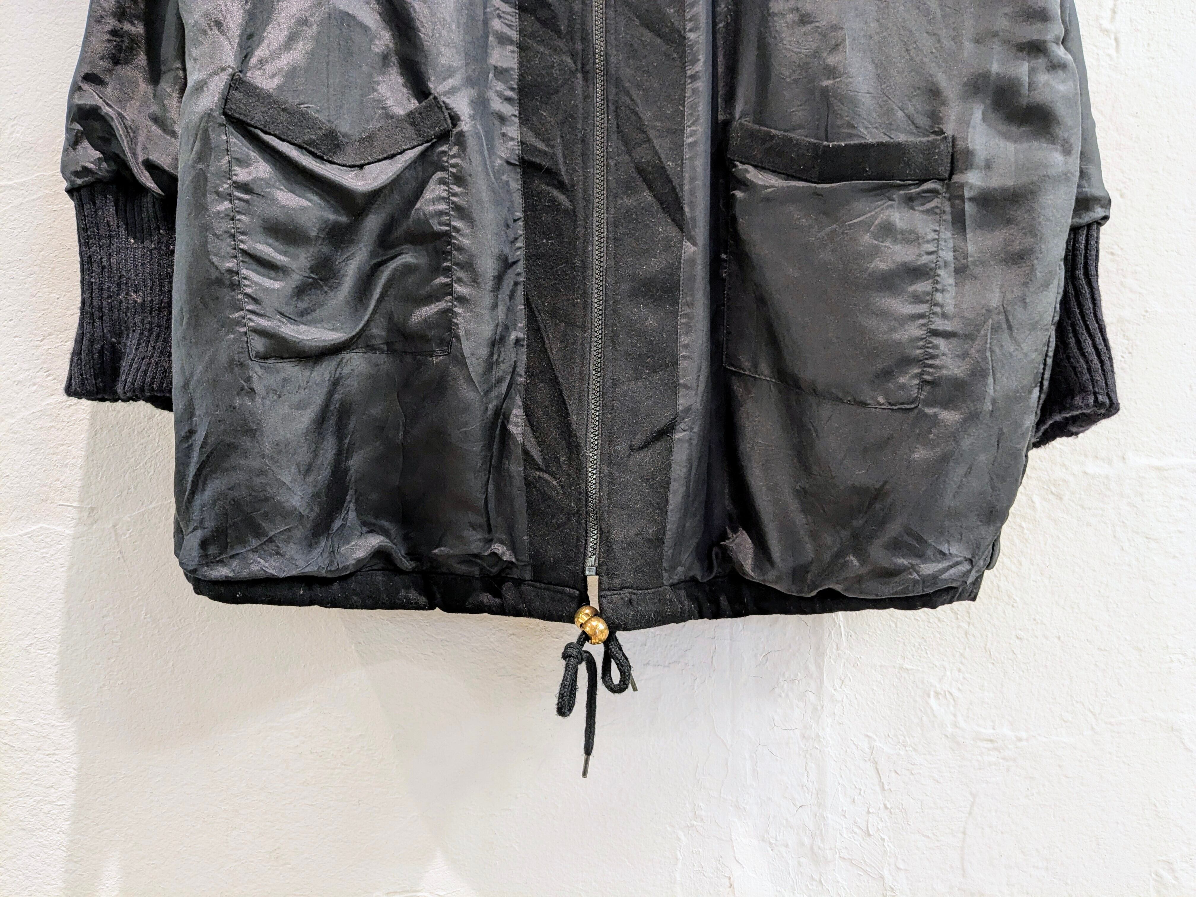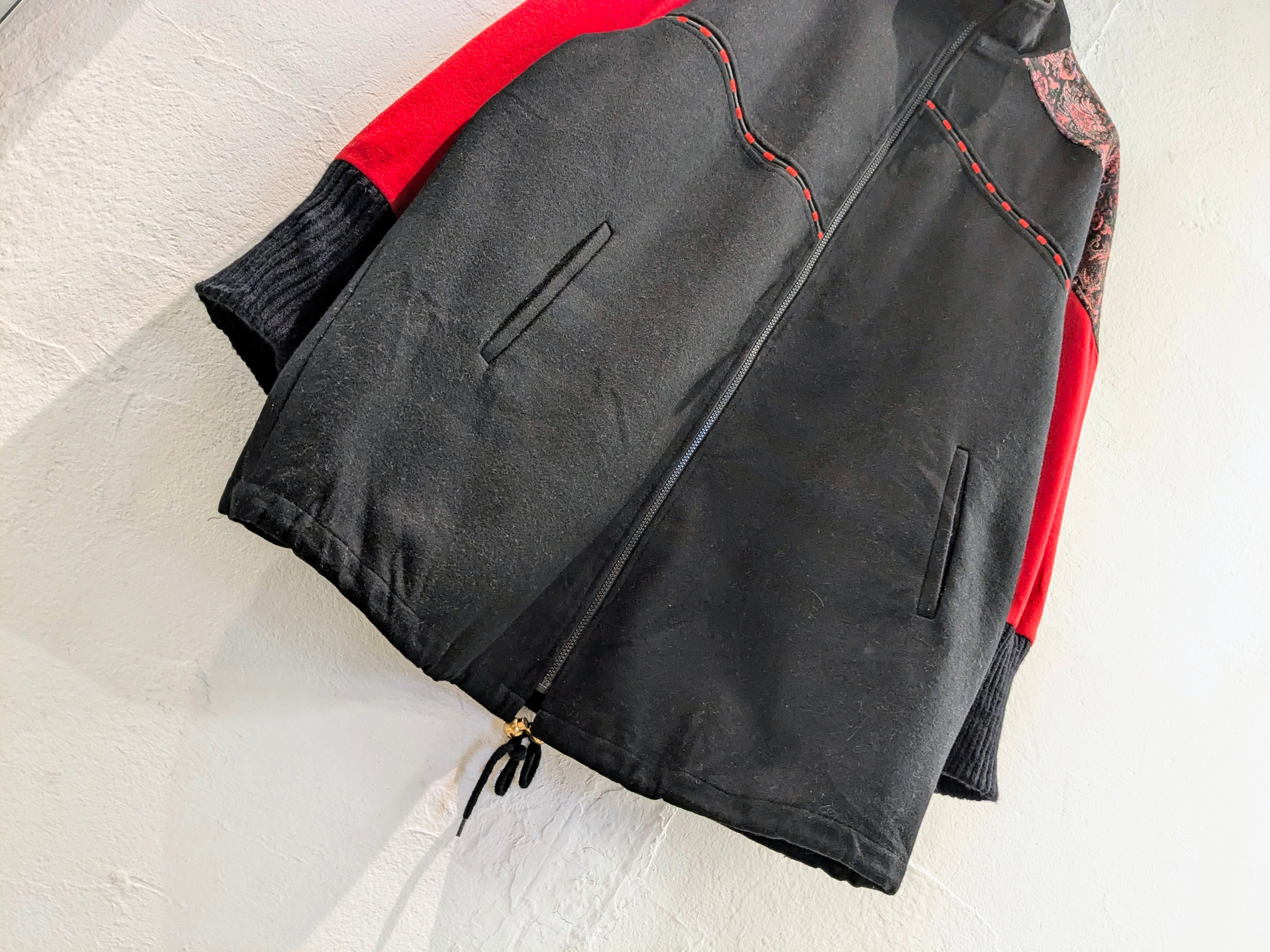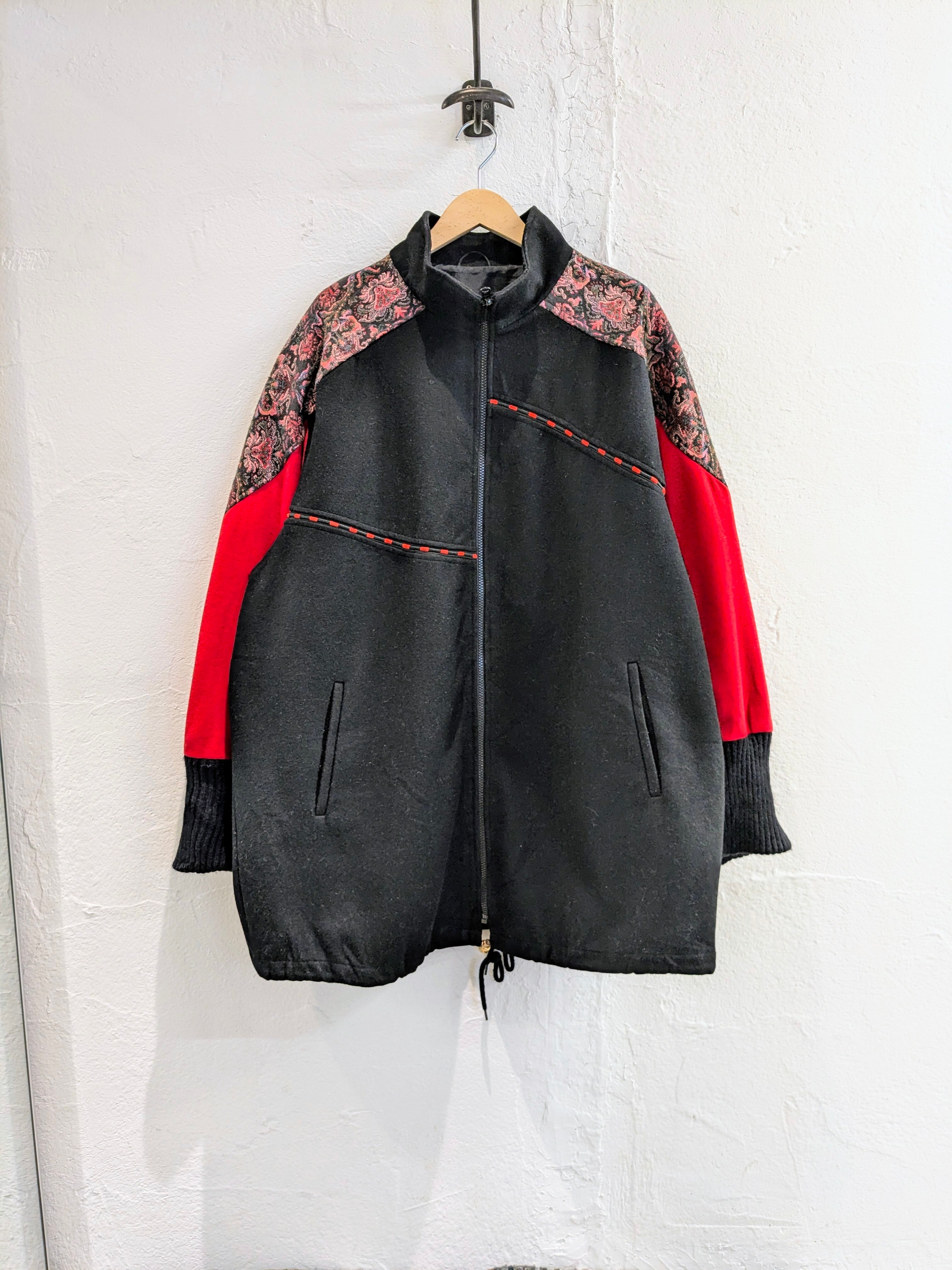 サイドAの方は、花柄のようなゴブラン生地が付いており、コードが付いたようなデザインなどが特徴的なアイテム。タイプBは、ガラッと表情が変わりブラックのシンプルなデザイン。ただ、素材がシルクをしようしており、しっとりとした光沢のある素材となり、とても上品、綺麗な面感になっています。A.B関係なく、もはや両A面なブルゾン。サイズ的にはインナーも選ばず、ざっくりと羽織っていただけます。