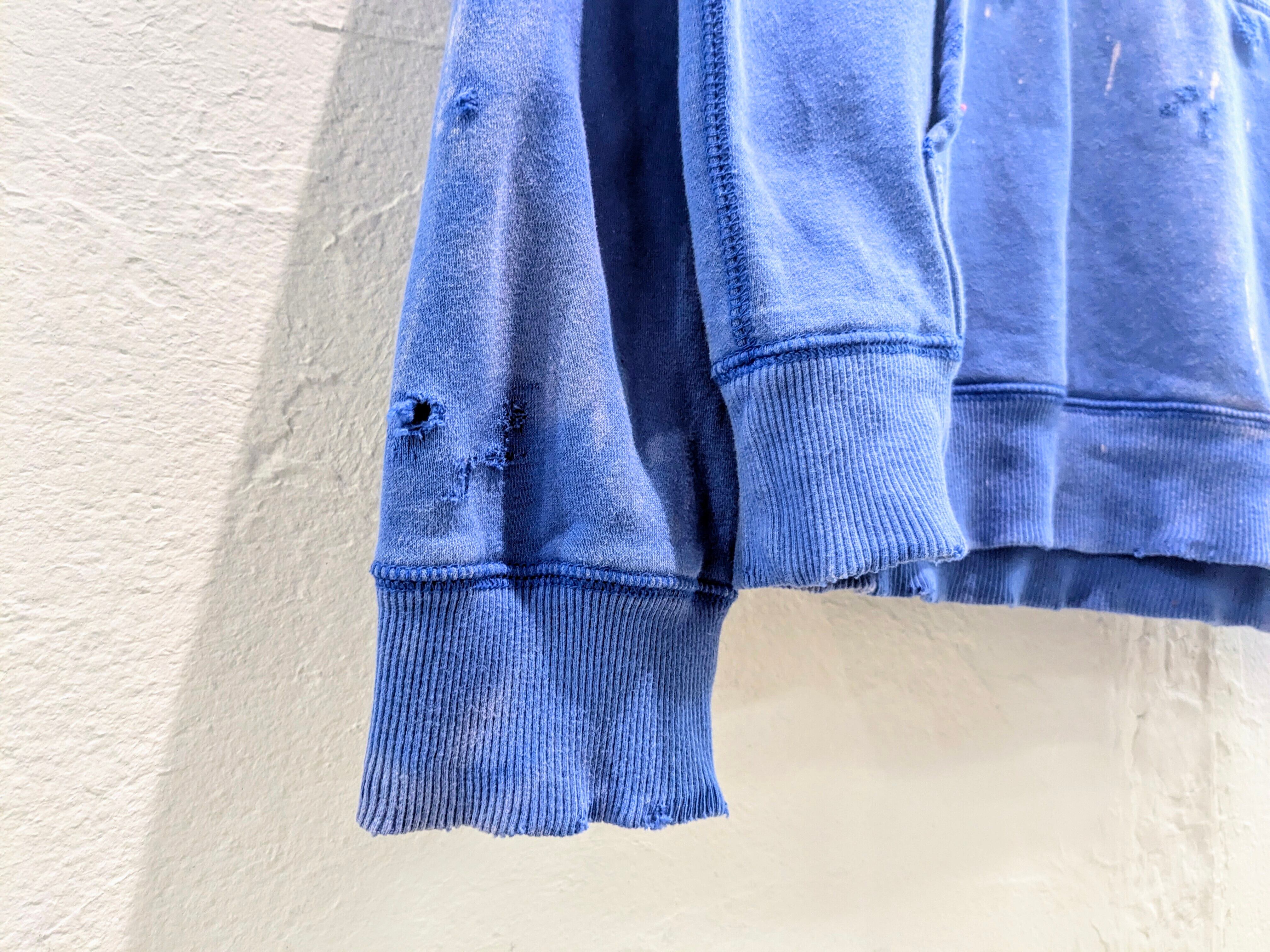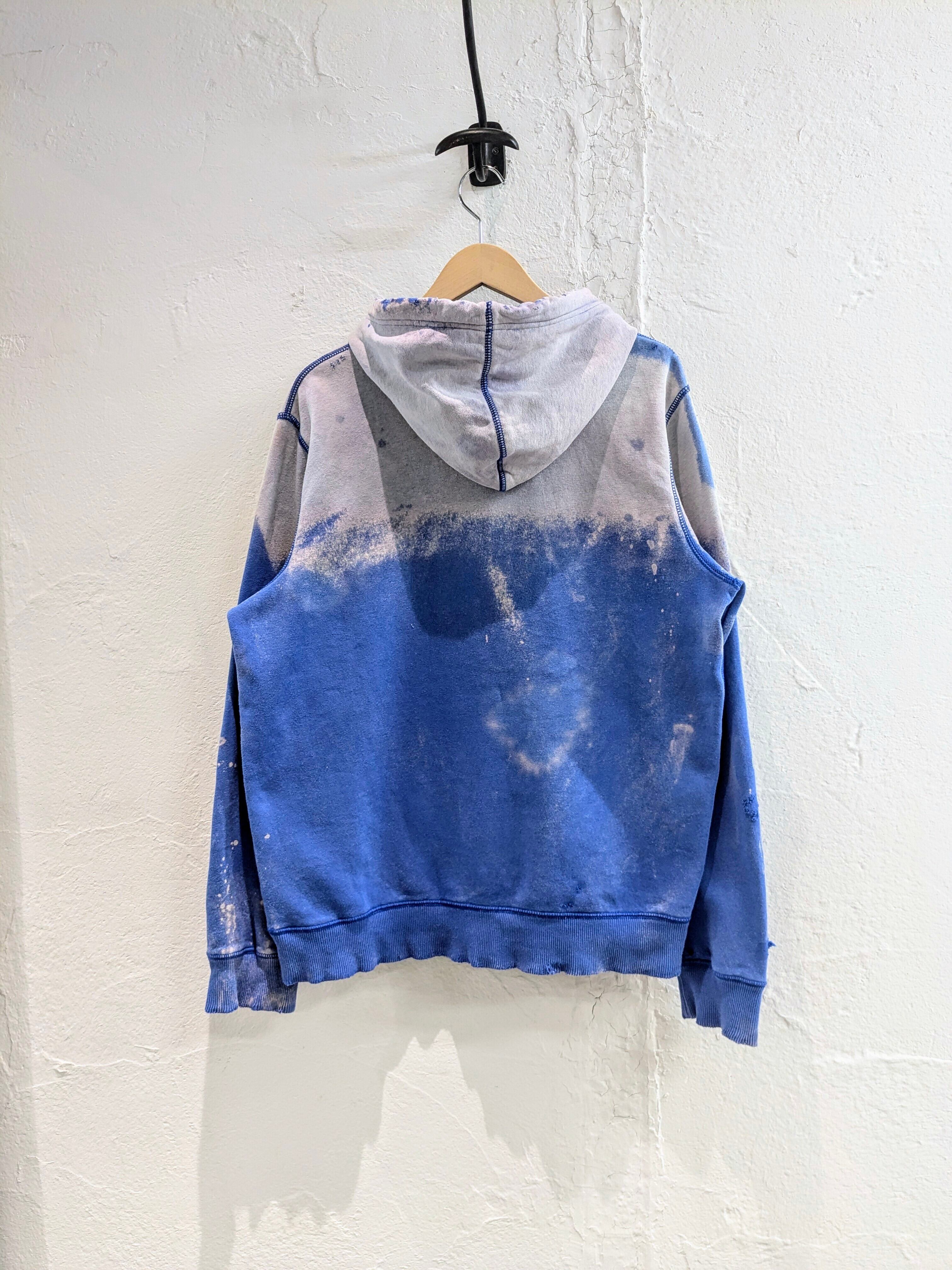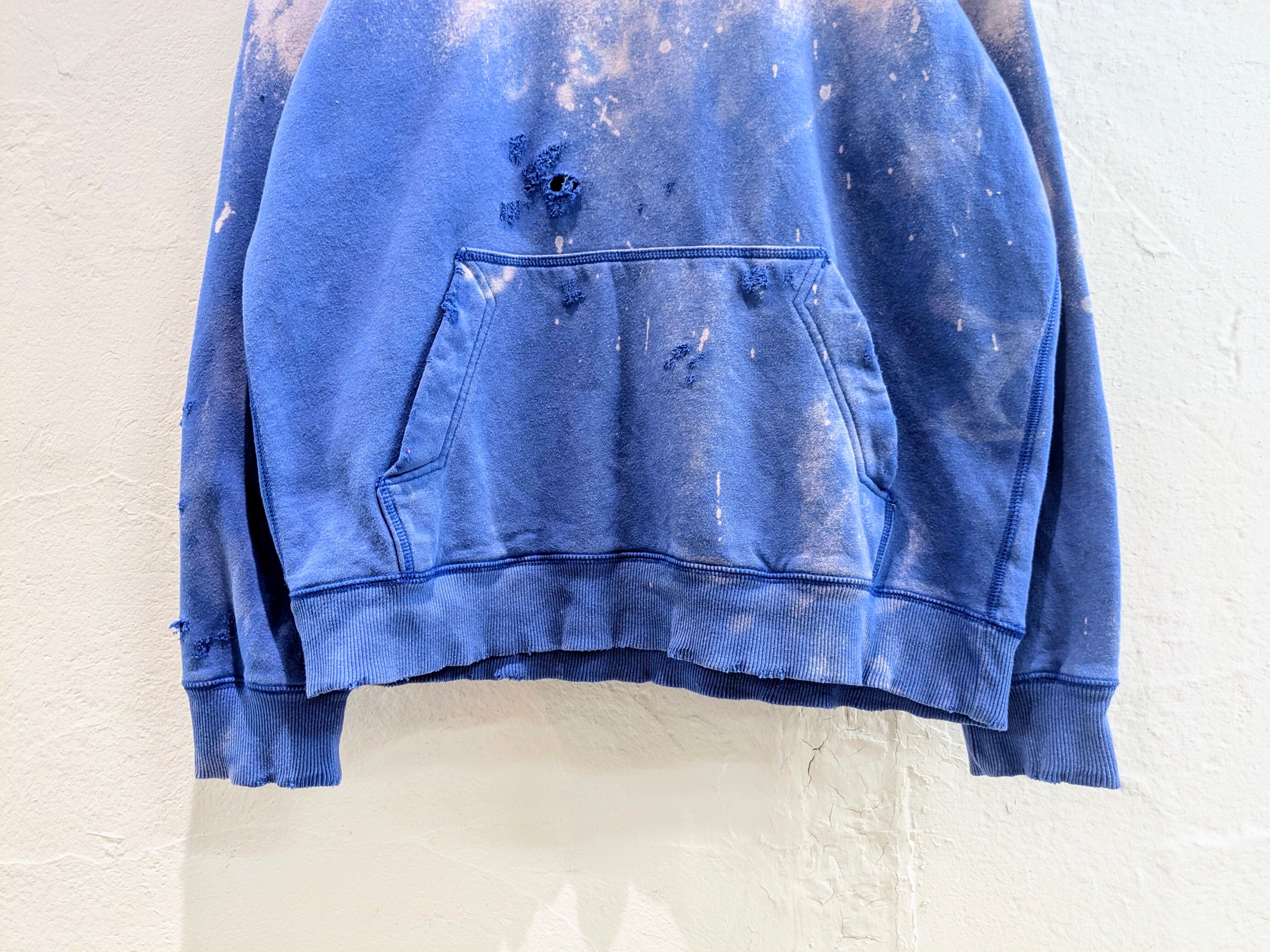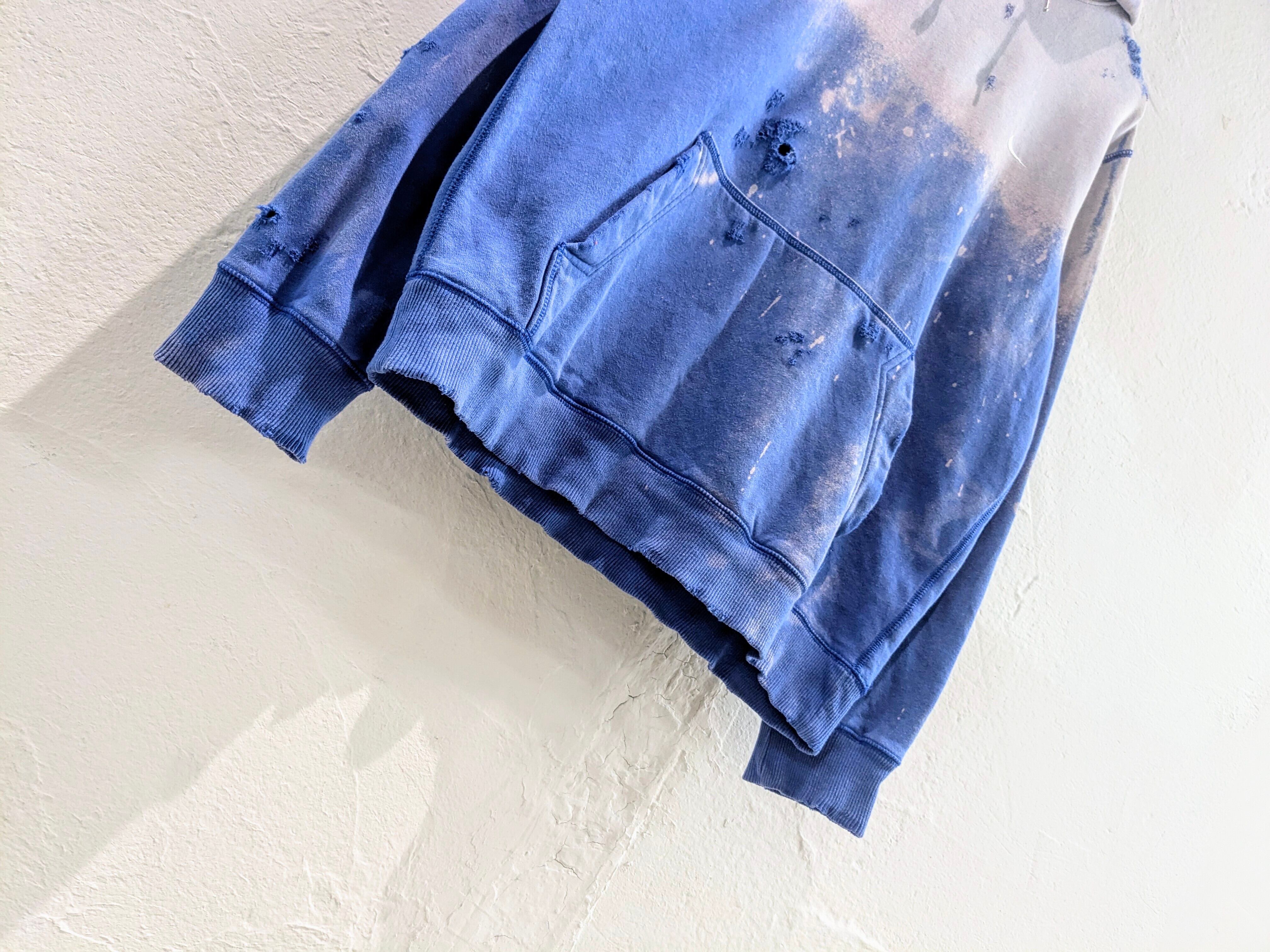 デザイン的にフェードさせているアイテム。さらにそこにダメージを加えてもらっています。自然ではあり得ない退色ですがそこがまたよく、ダメージは自然な感じのダメージとなり、結果デザインとしてバランスが最高な一着。フードのヒモも退色しており、ピンクっぽい色になっているのもまた特徴的。今から春も使えるオススメアイテム。