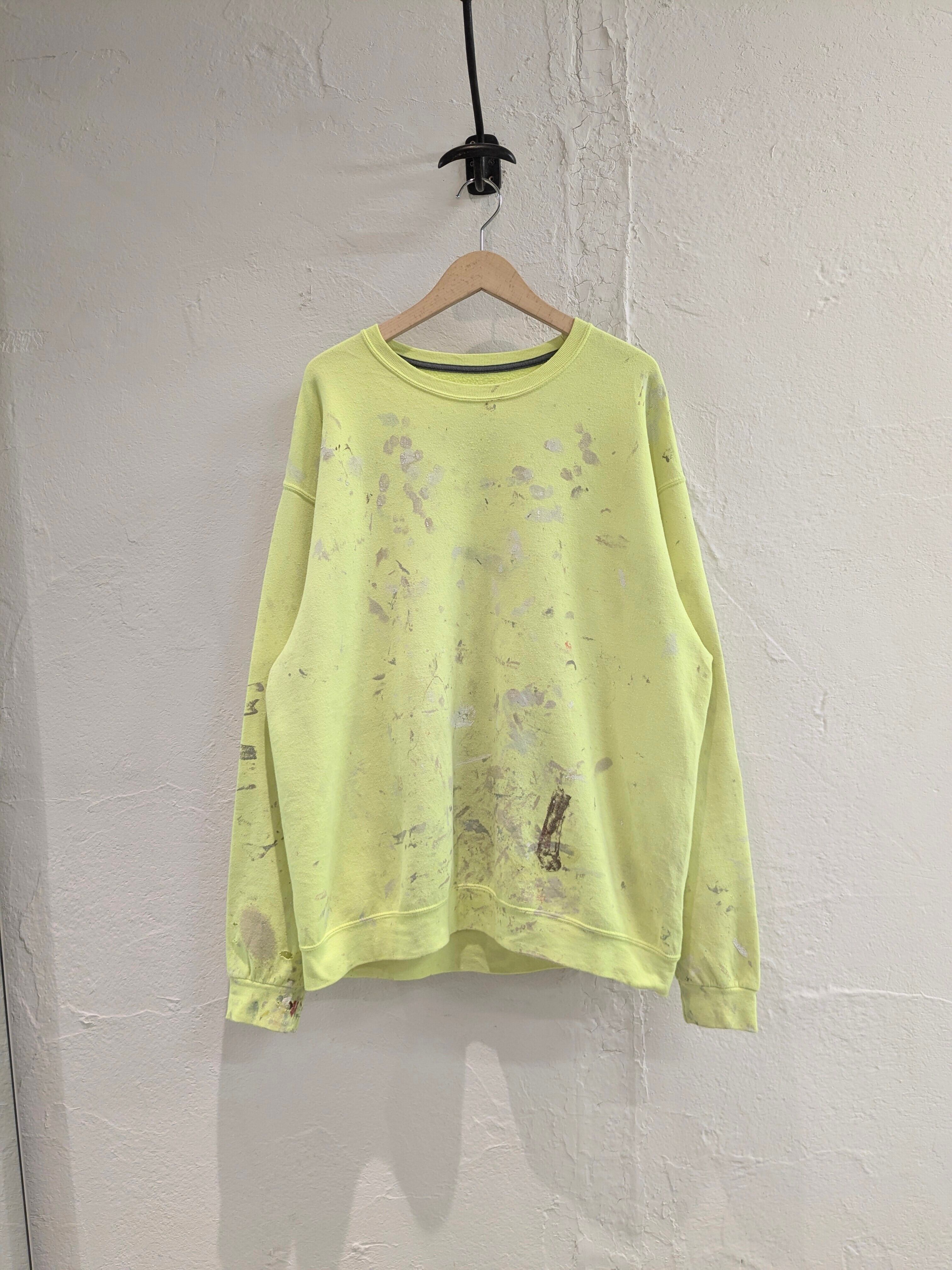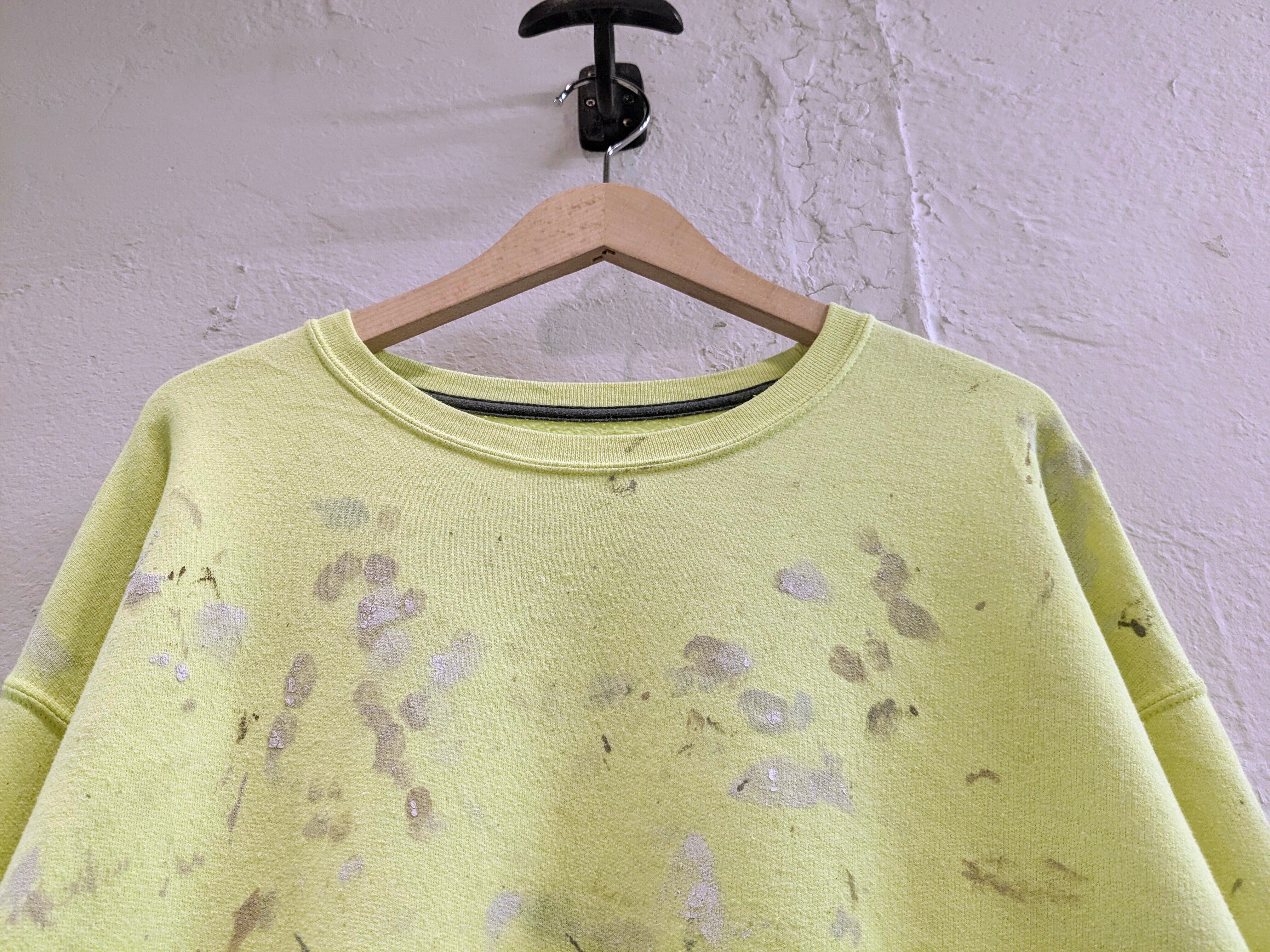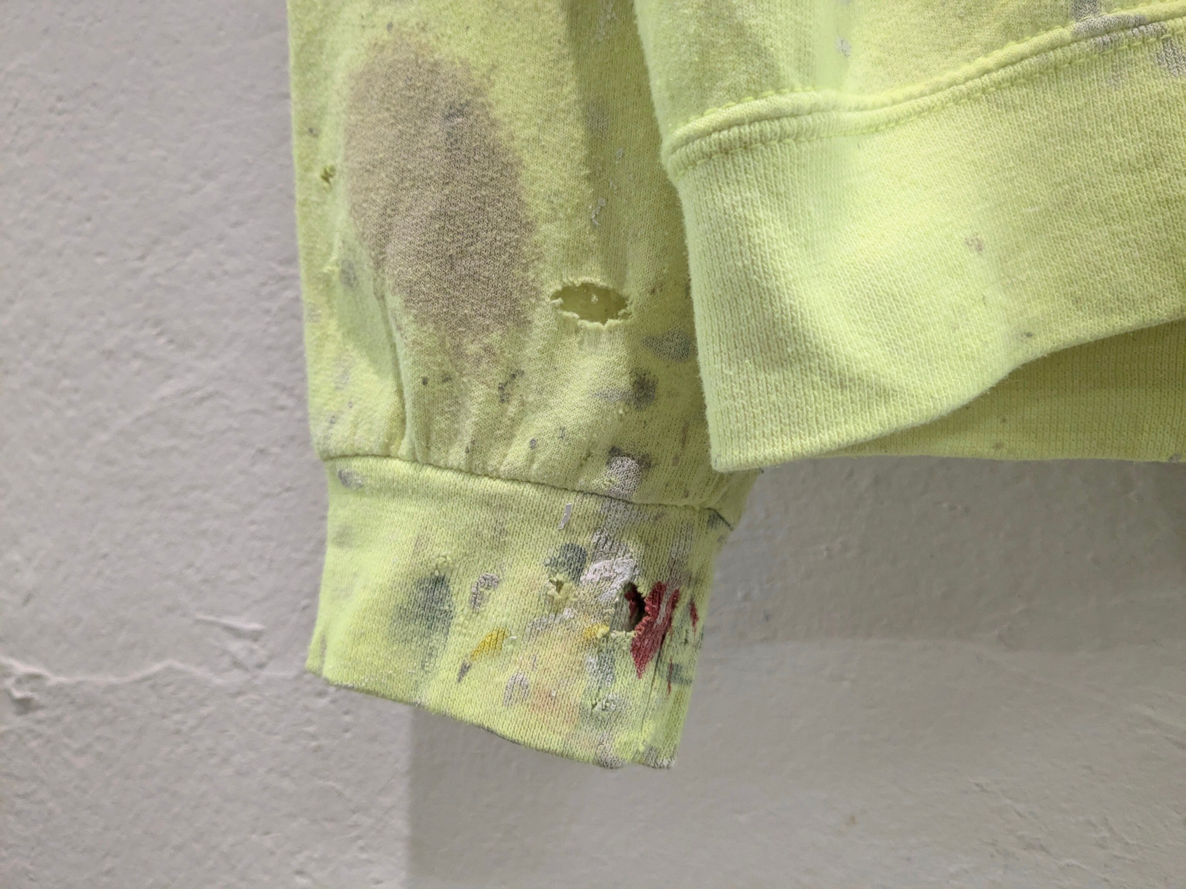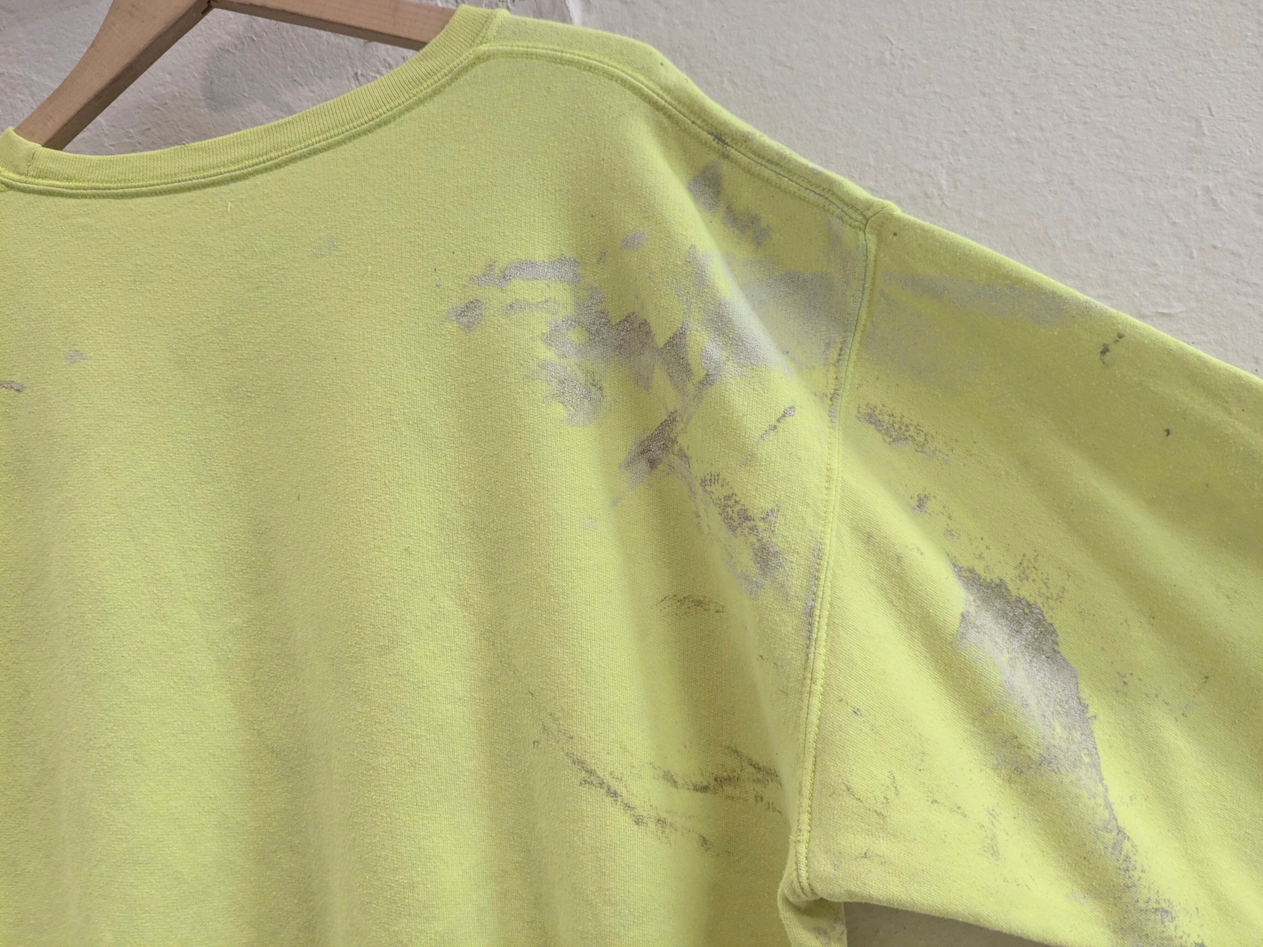 全体的に汚れあります。こちらはリメイクではなくら元々この状態で買い付けをさせていただきました。なので、前所有の方がこちらはを着て作業して汚れたモノかと思います。現場で目立つようにこの色を着て作業してたのかな?とか色々妄想を掻き立てられる一着。汚れもですが、単純にボディの色がいいかと。