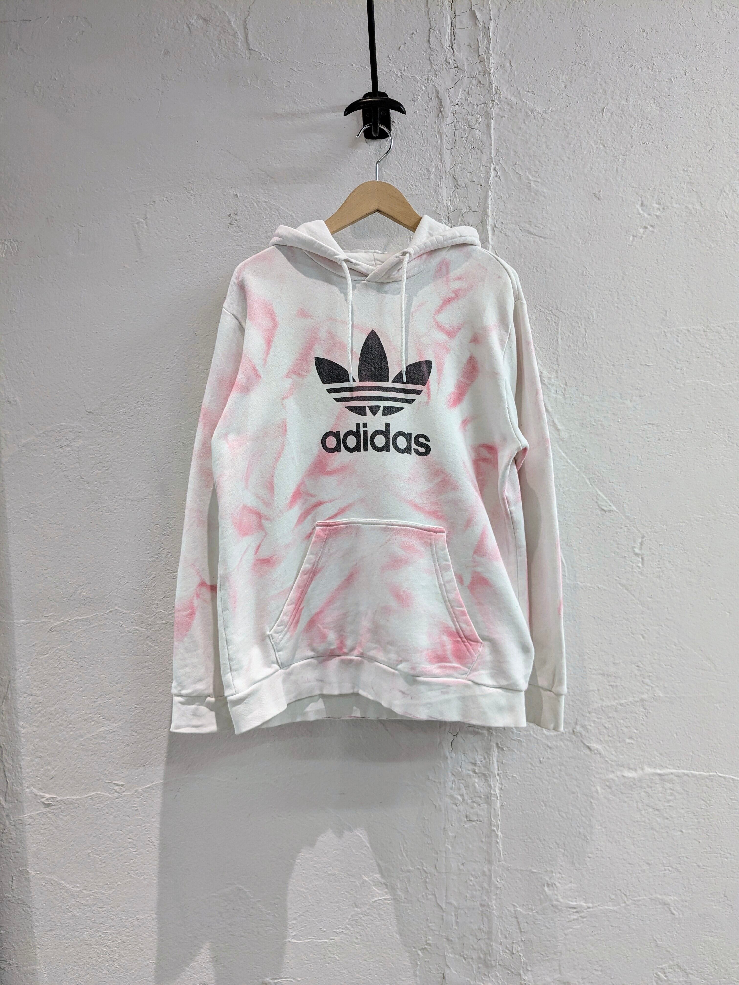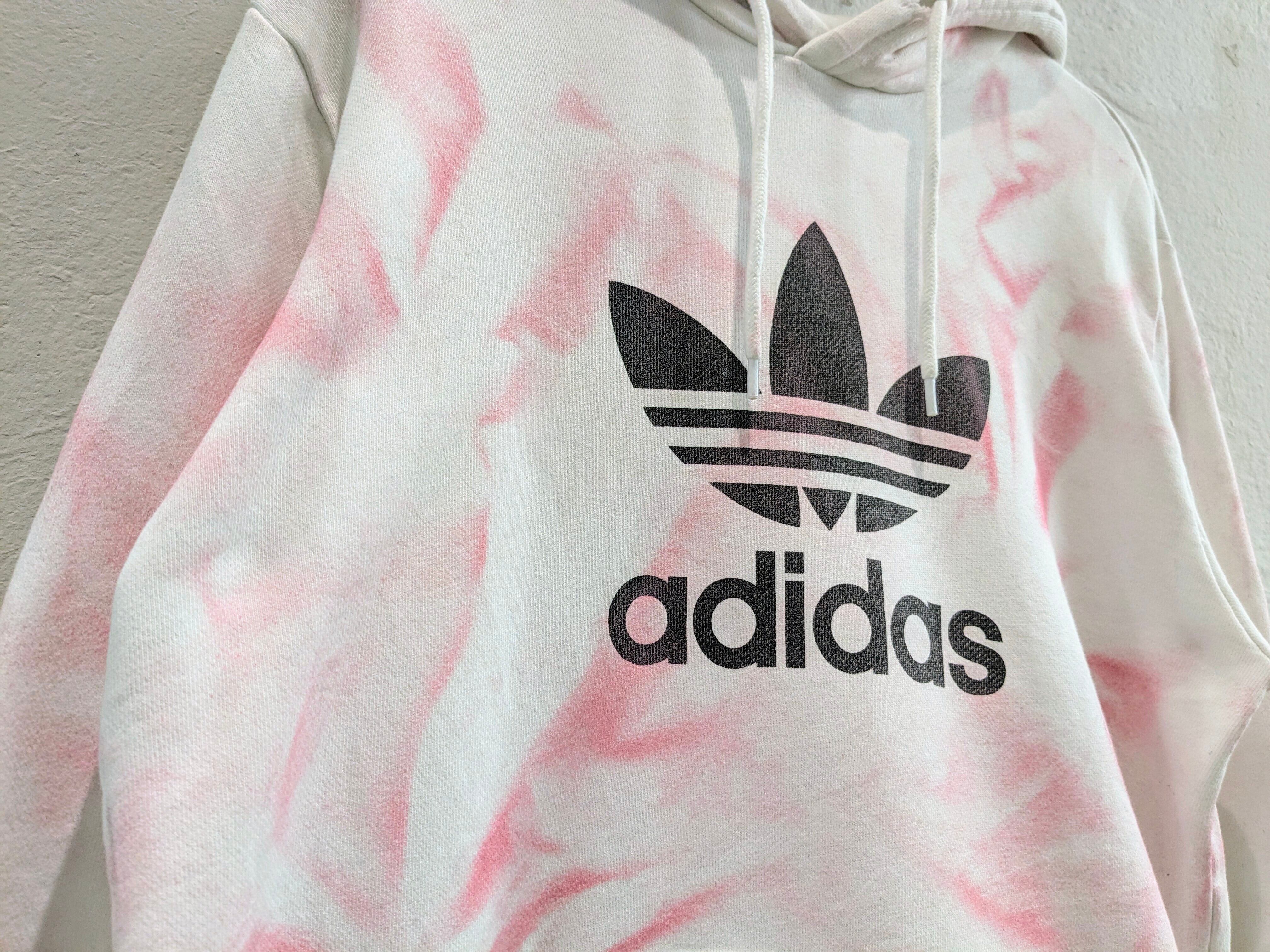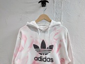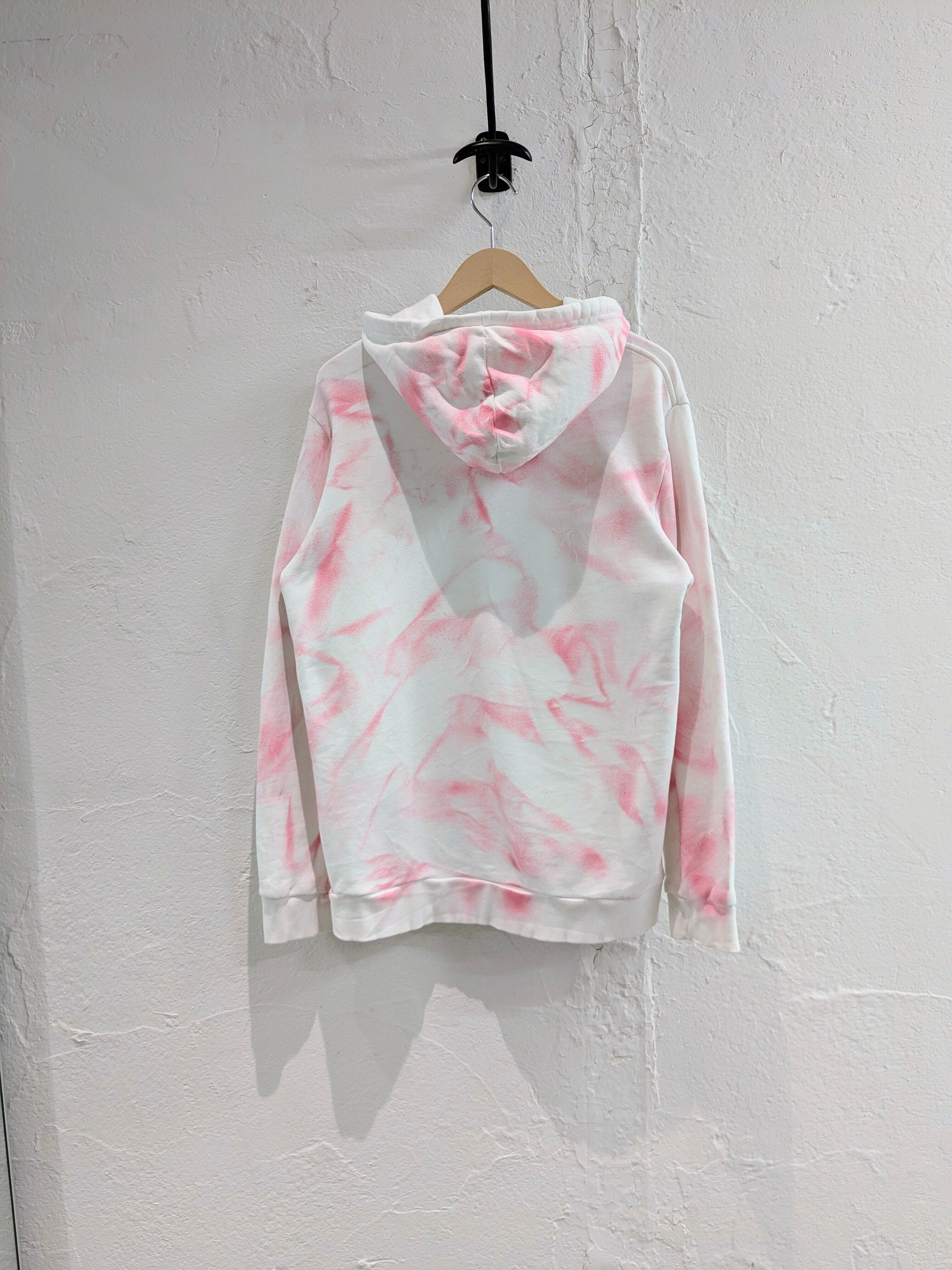 こちらは白ボディにピンクのスプレーとなり、とても鮮やかで綺麗な仕上がり。インナーに着ても、フードまで色が入っているので目を引くこと間違いなしです。アイロンで定着はさせているのですが、洗濯は別で洗ってもらったほうが安全となります。