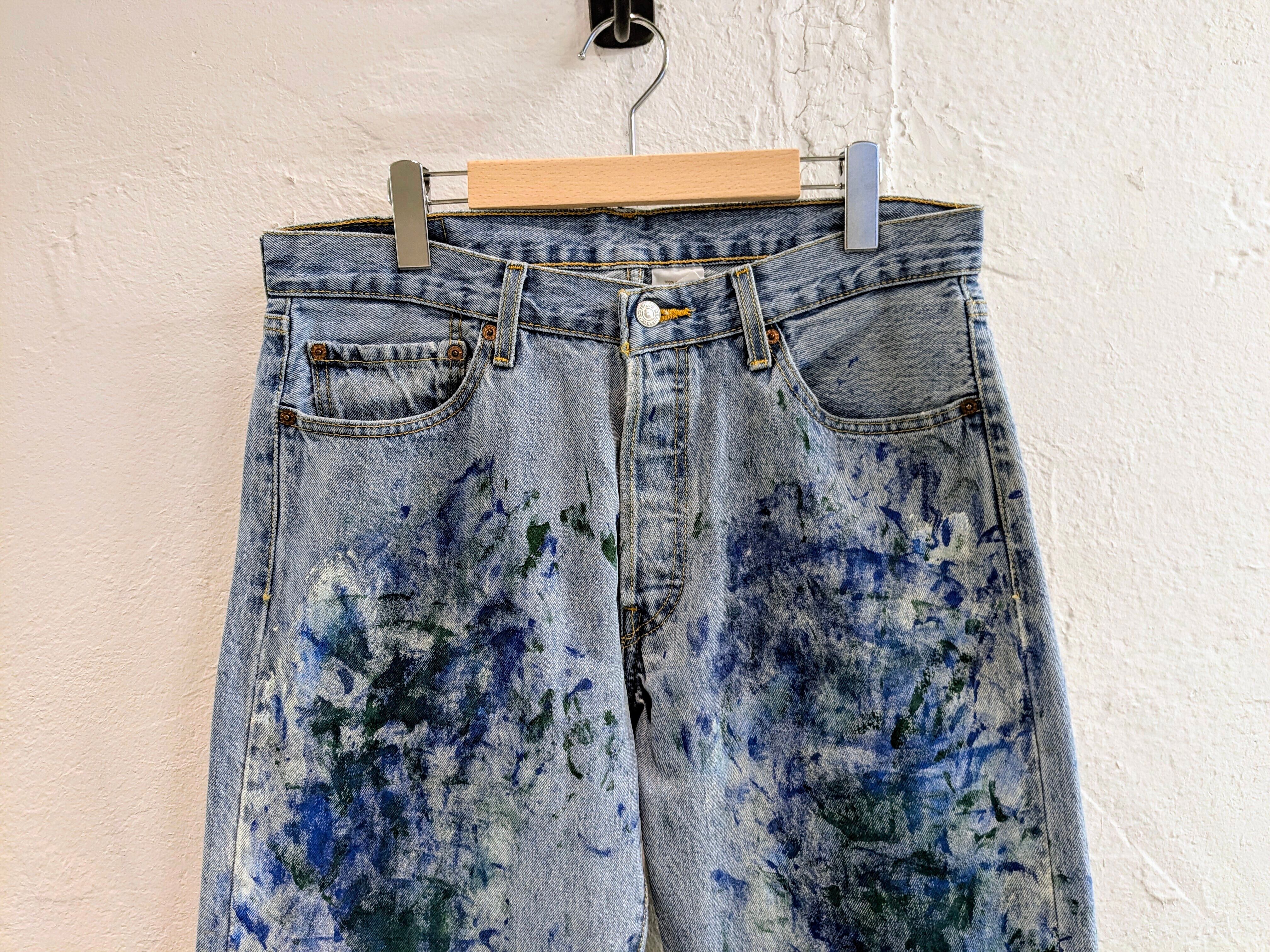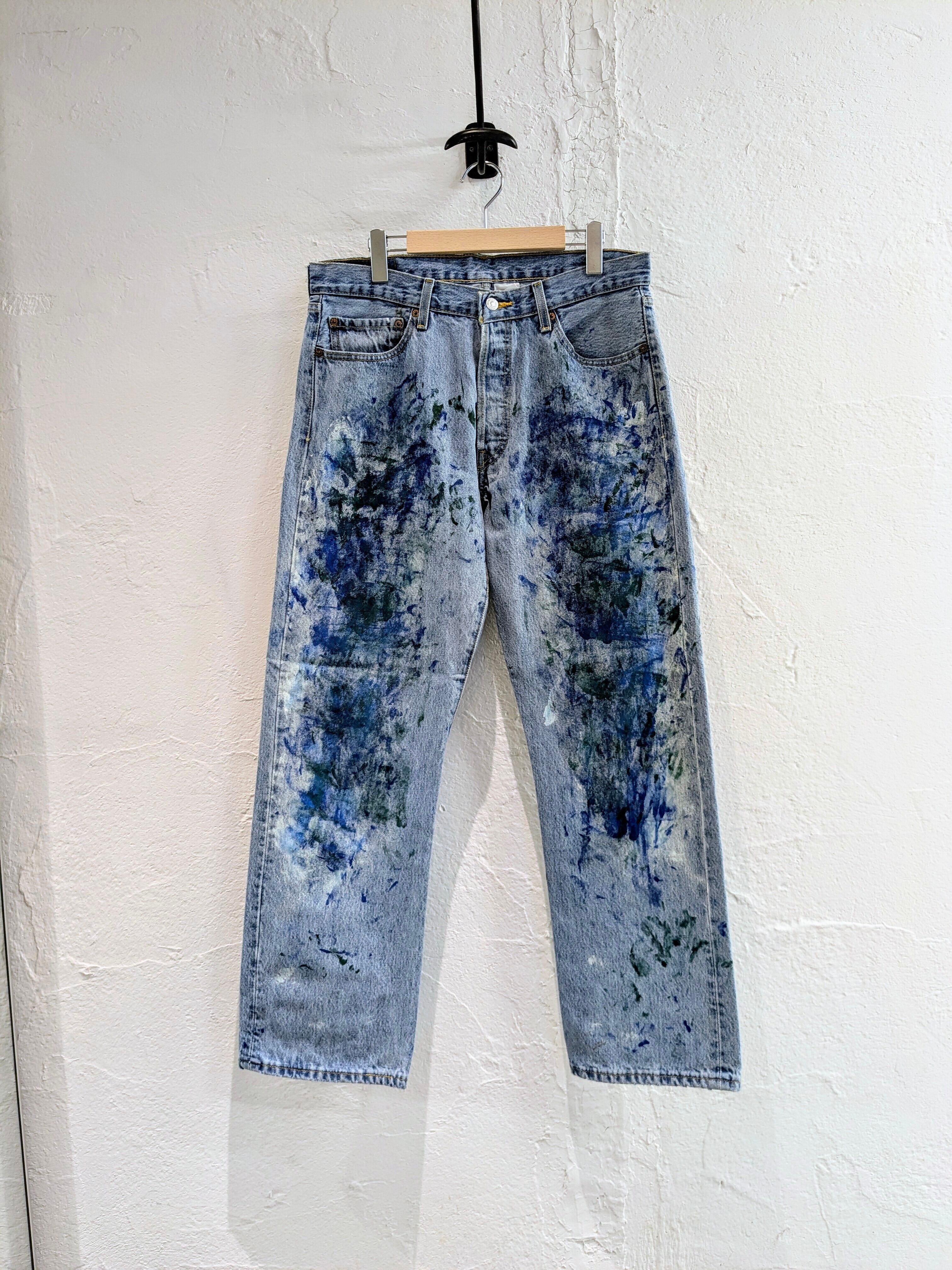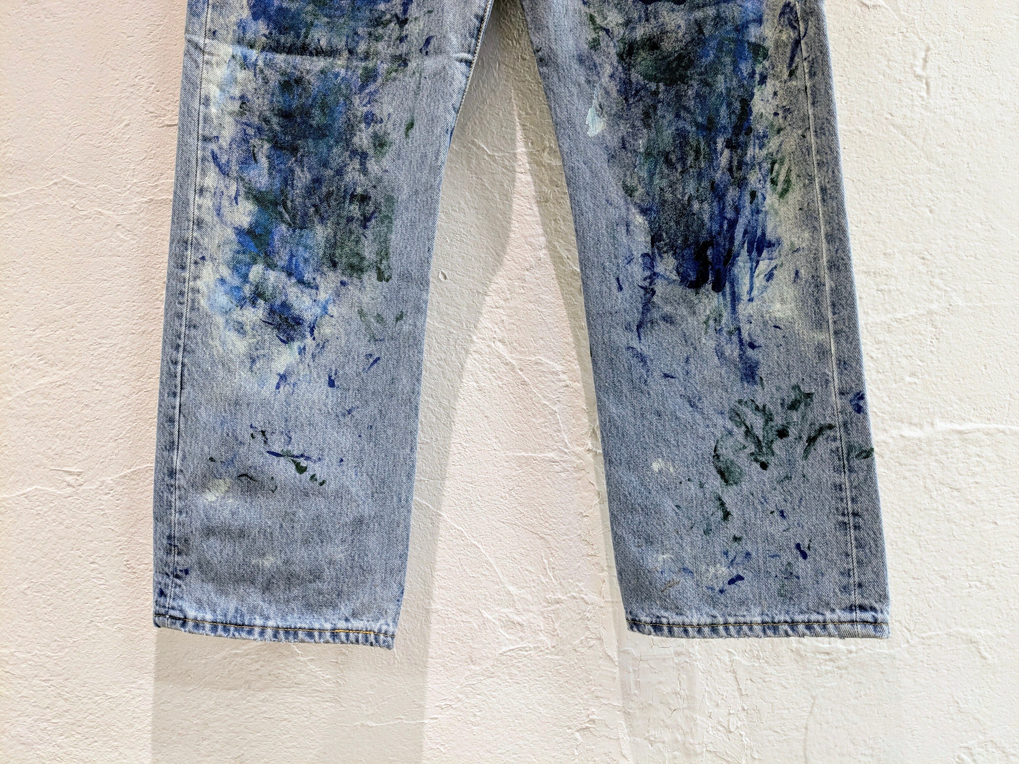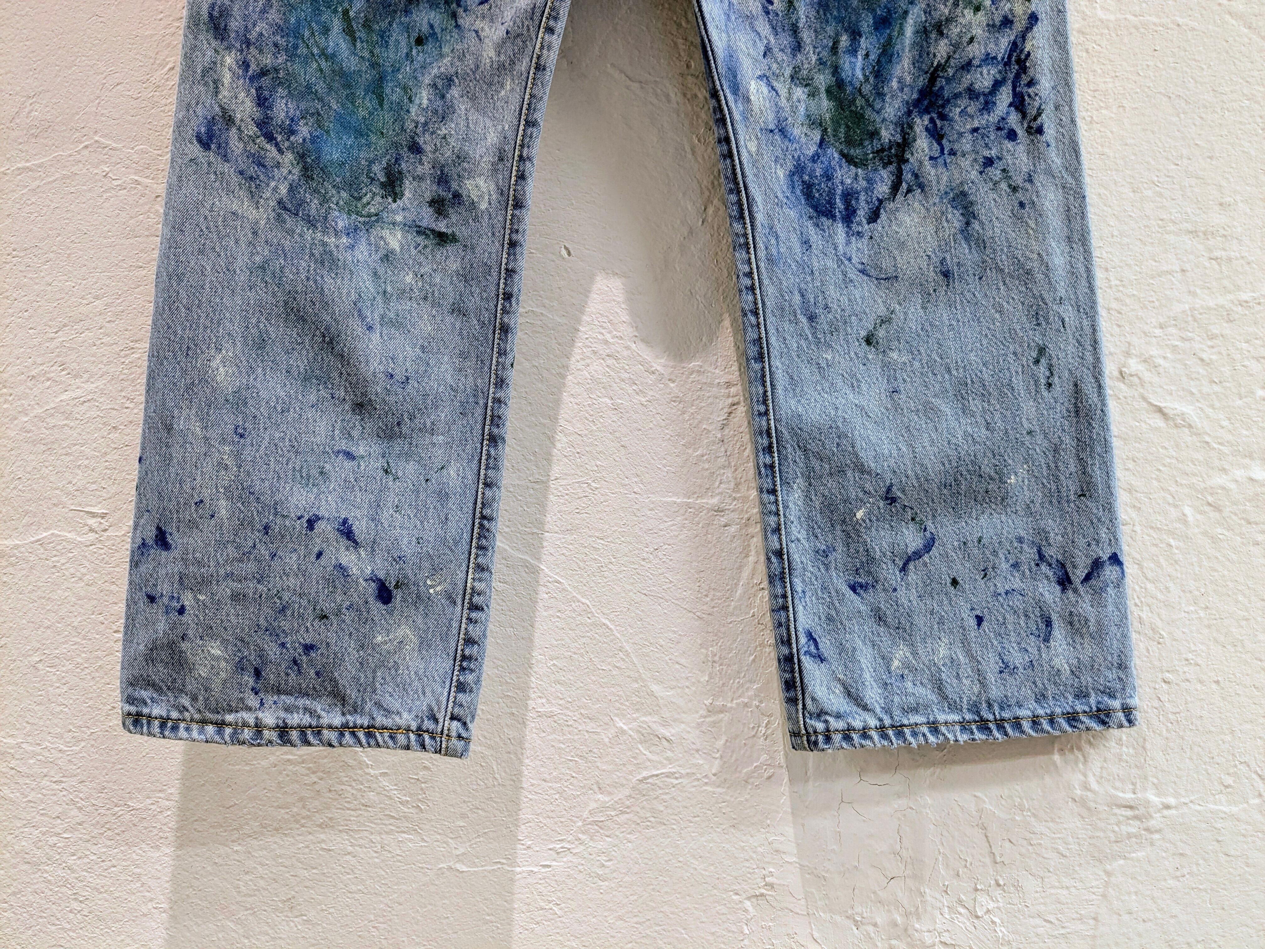 グッドレギュラーのリーバイス501にペイントを施したアイテム。シンプルなアイテムがゆえにペイントをする事でまた違った表情をしてくれます。もちろん1点づつ微妙に違うので全く同じモノは存在しません。