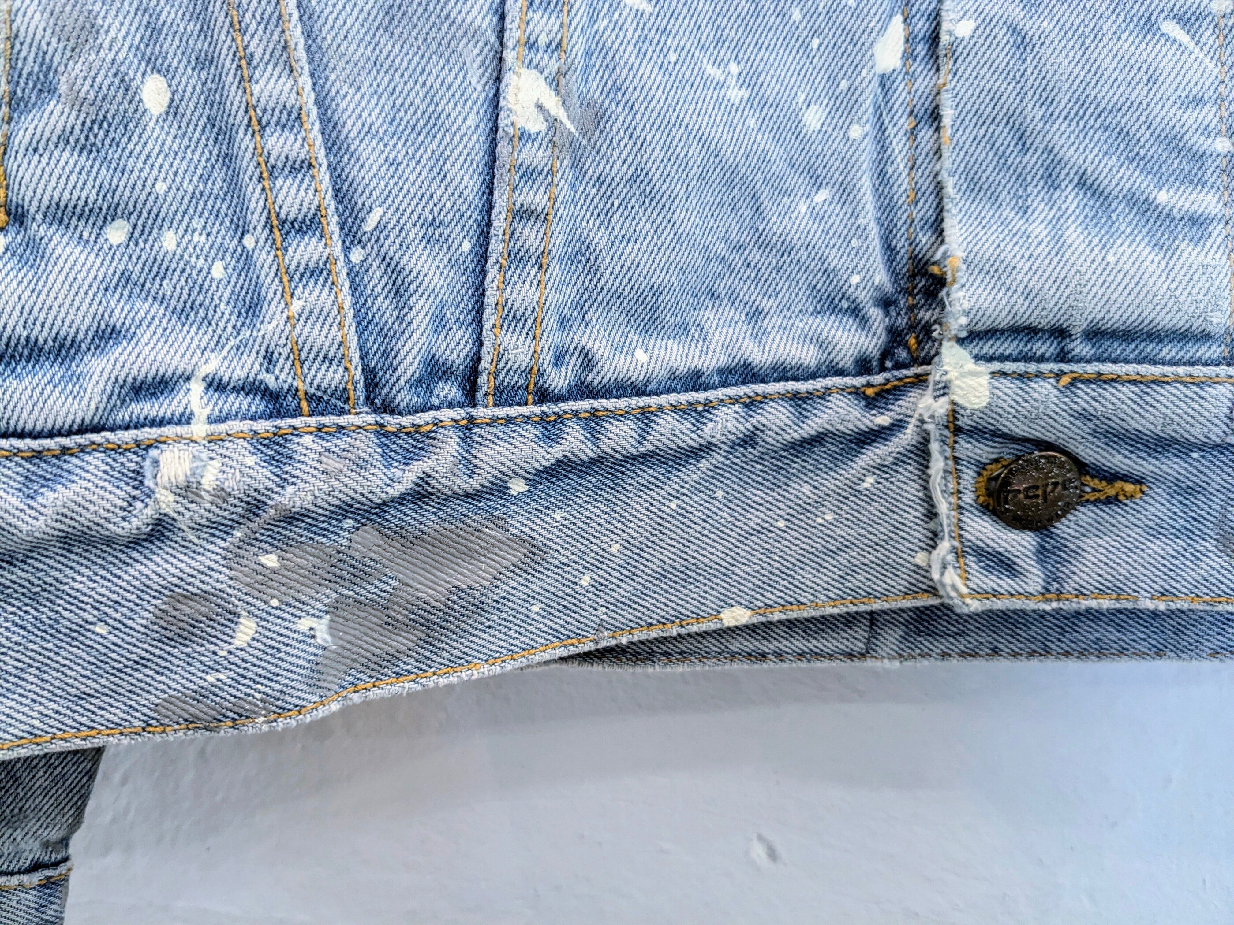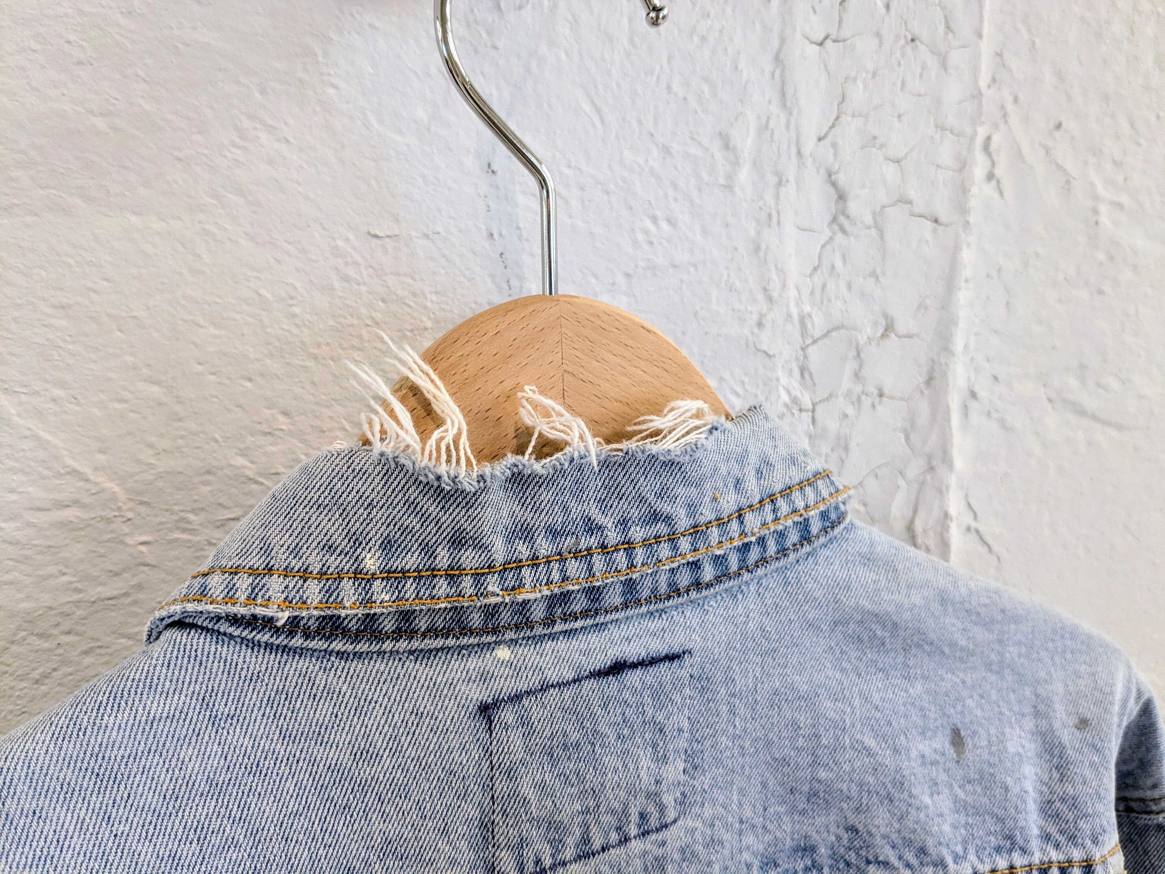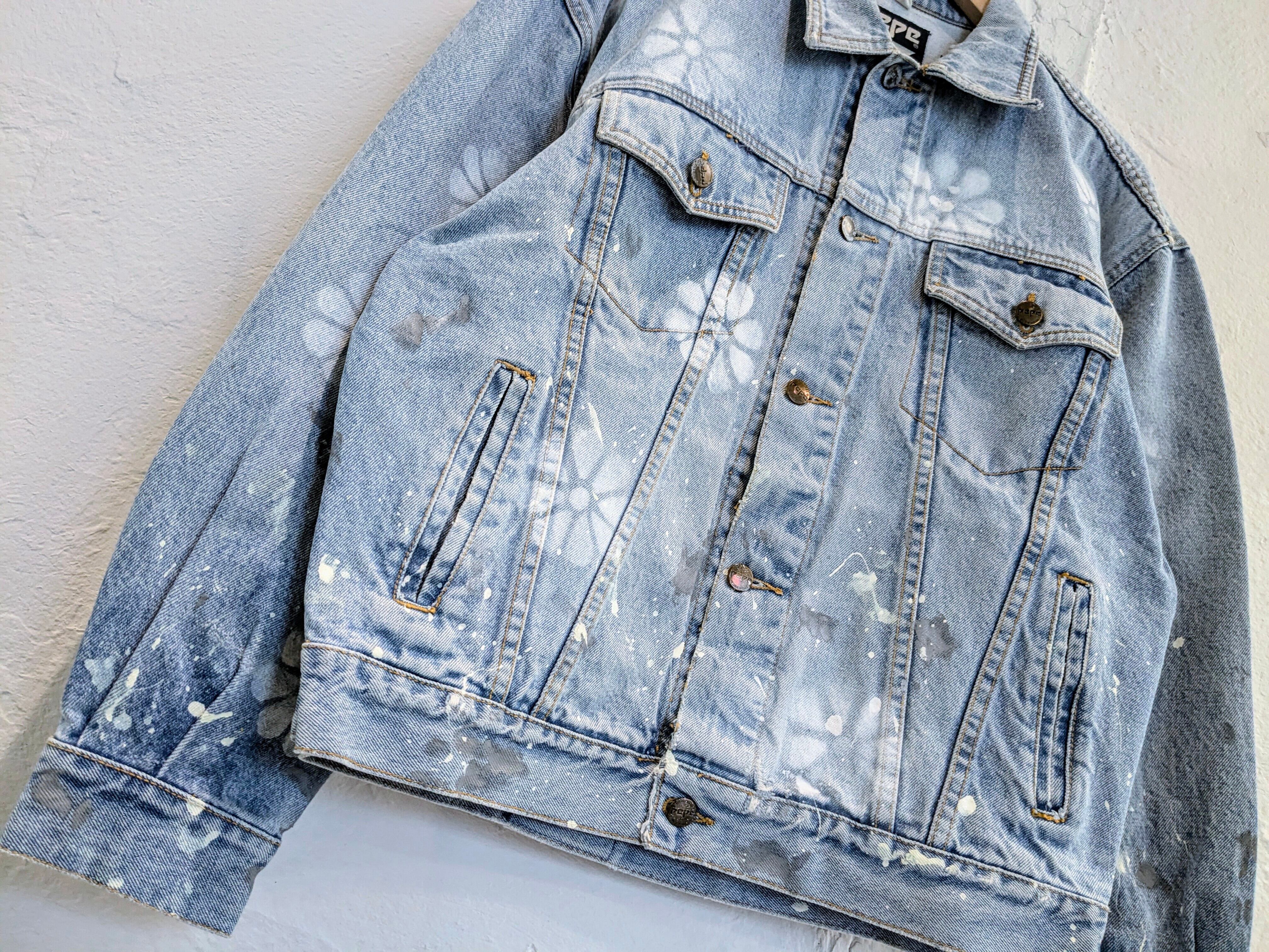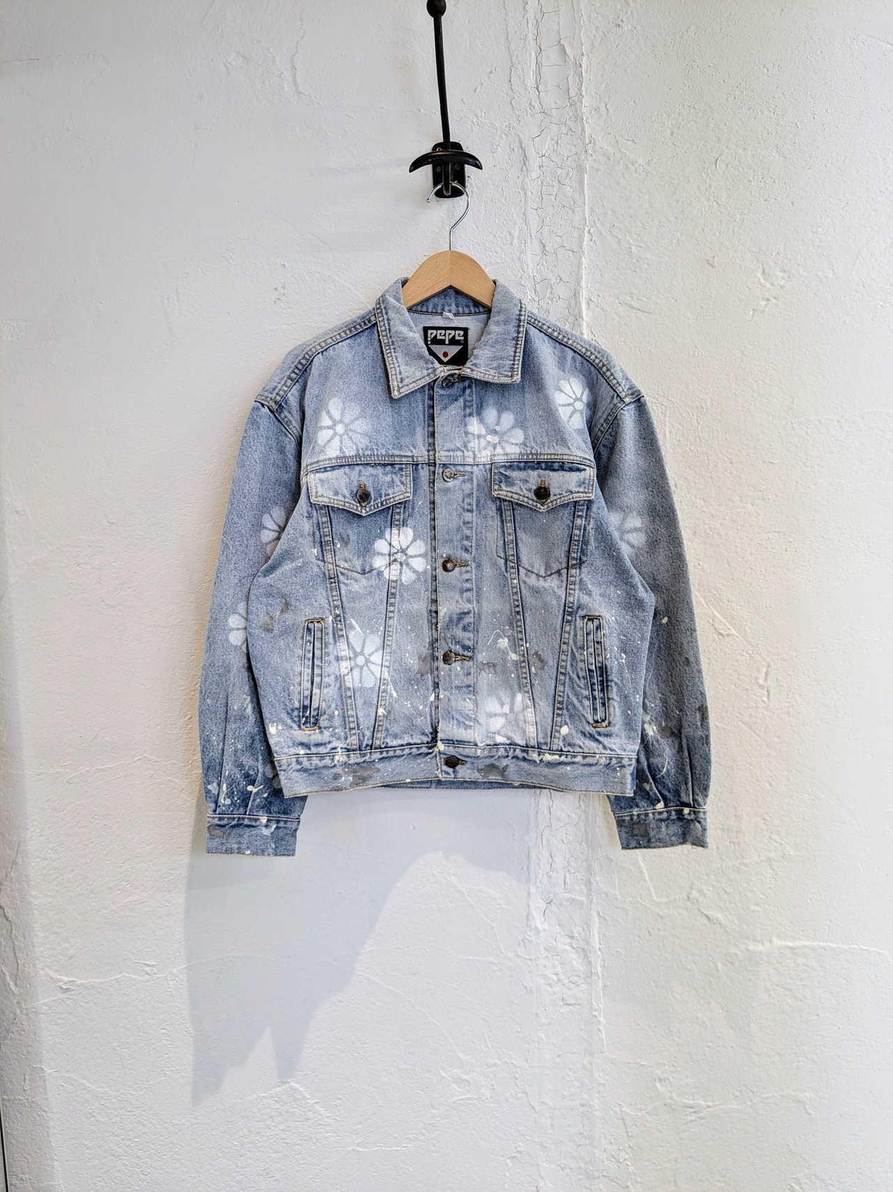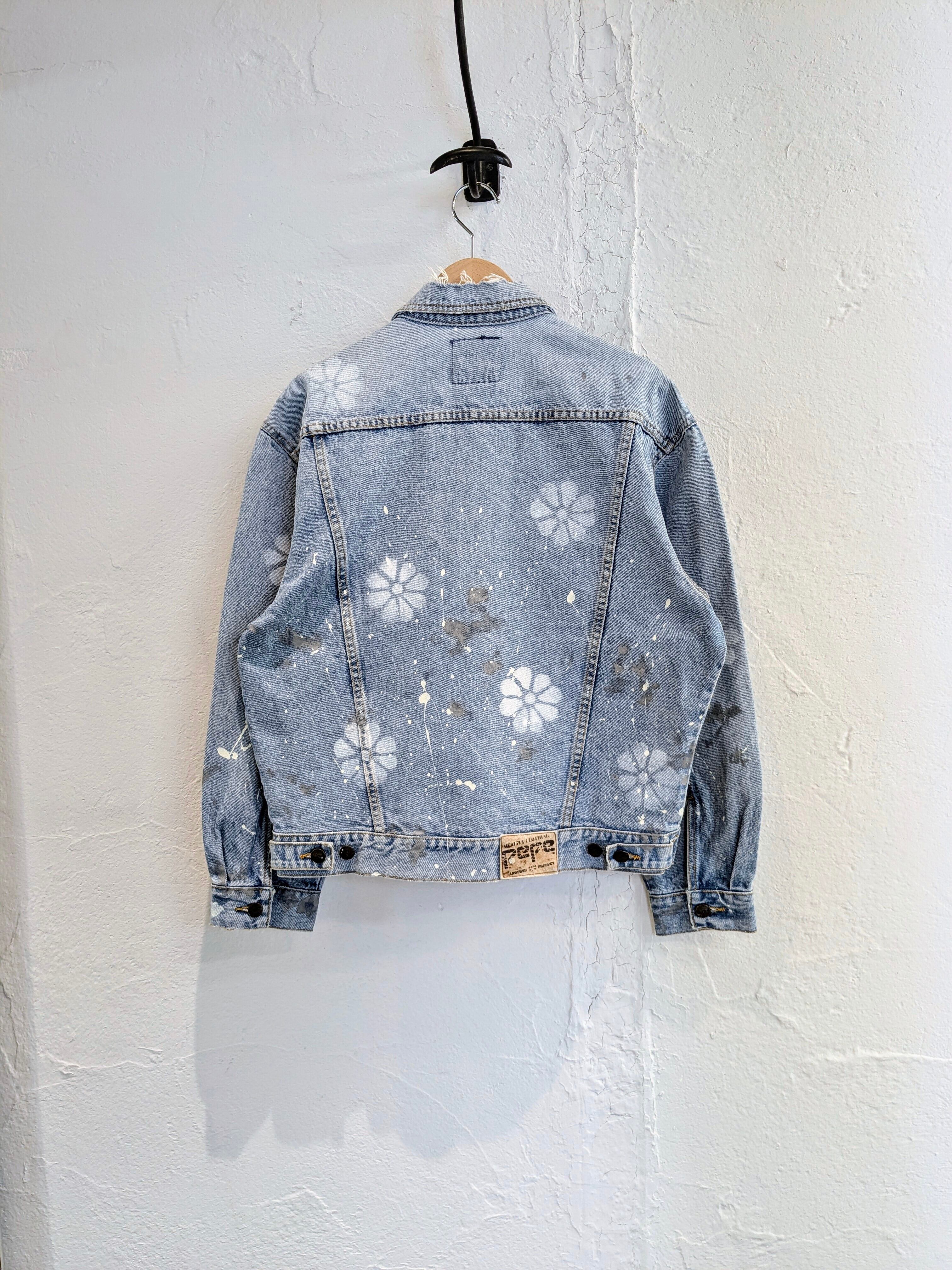 ユーズドのデニムブルゾンにフラワー柄のスプレーを施したアイテム。ペイントの雰囲気と、ダメージとの相反する可愛いデザインが逆にいい一着。色使いはシンプルなので、スタイリングとしても使いやすい。個人的には、中にオレンジなどの色物を入れてのスタイリングがおすすめ。