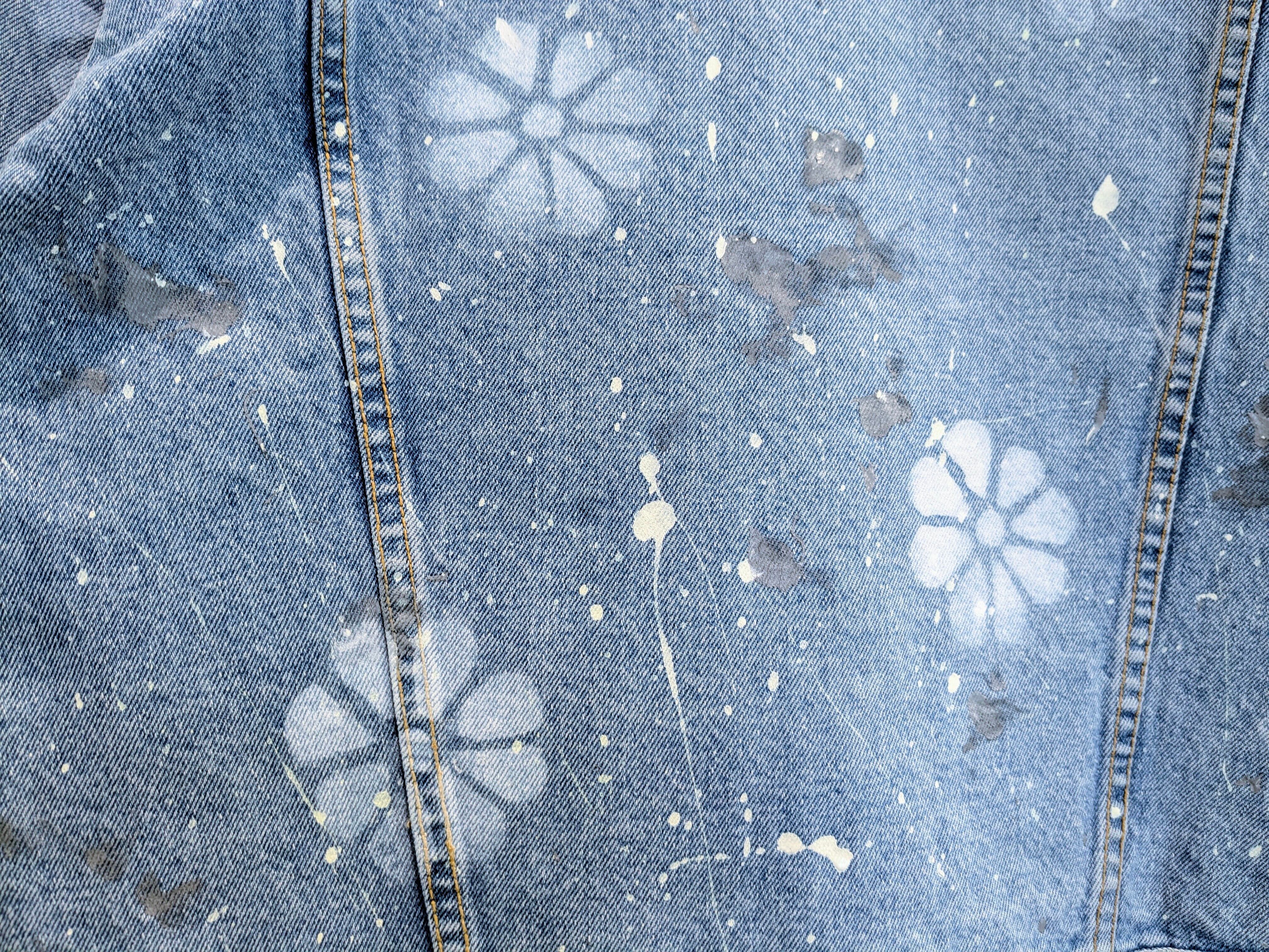 Flower Sprayed Design Denim Blouson