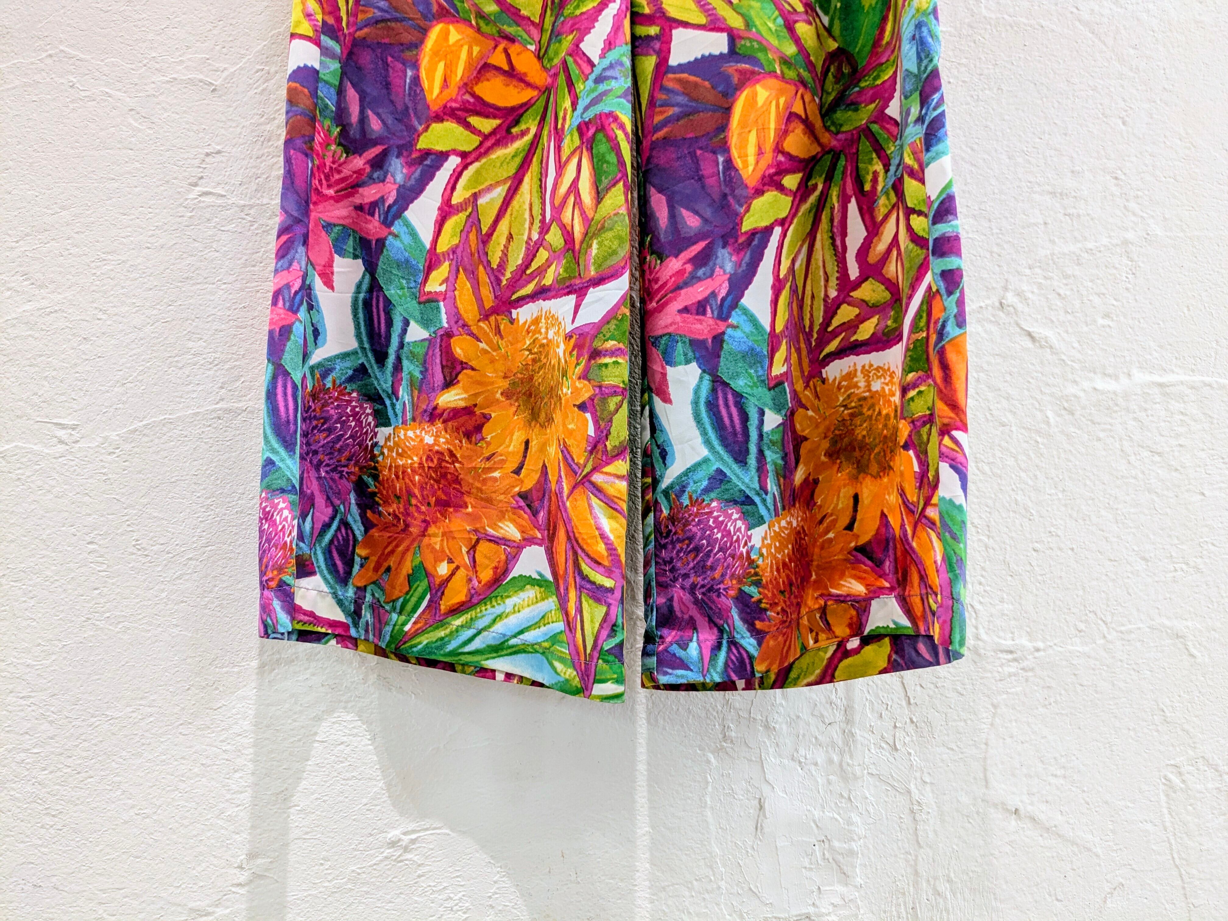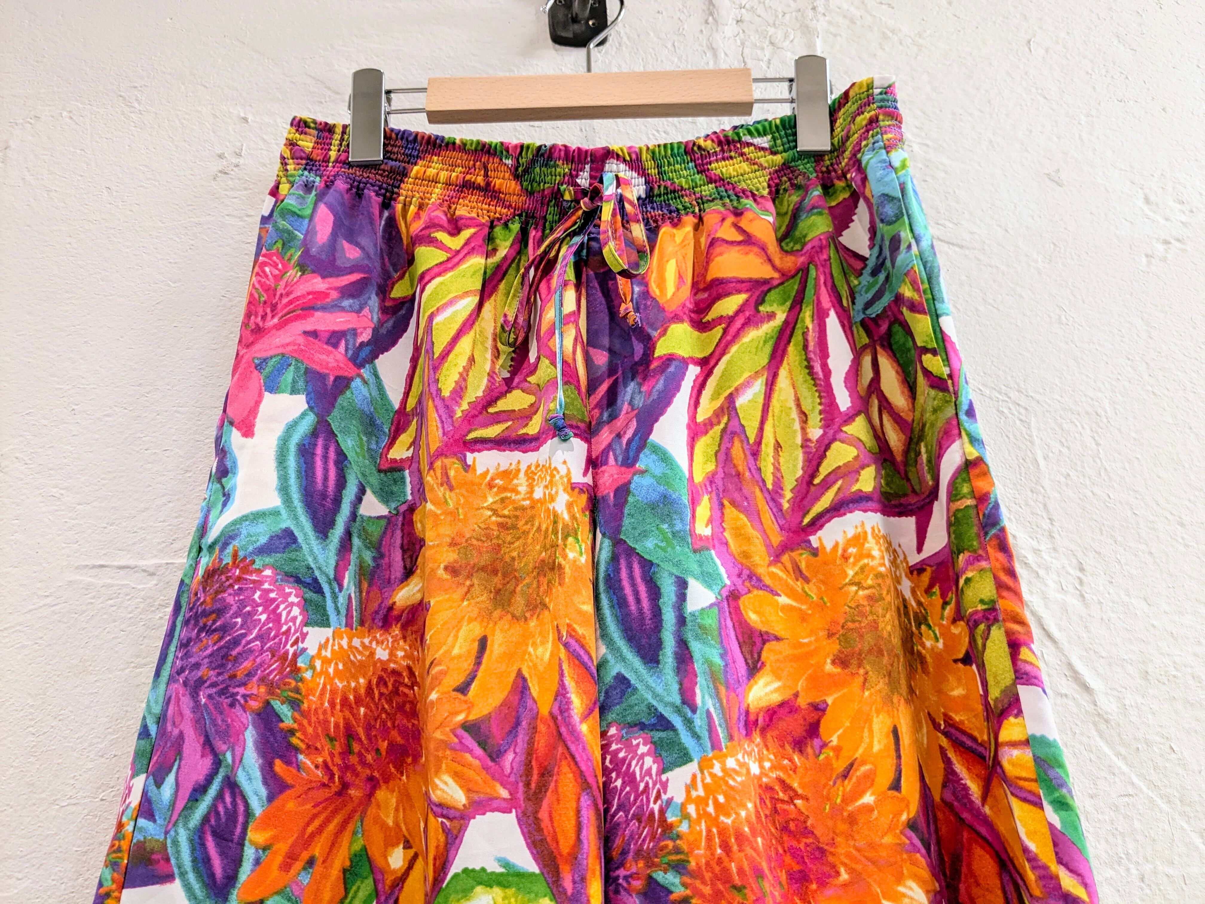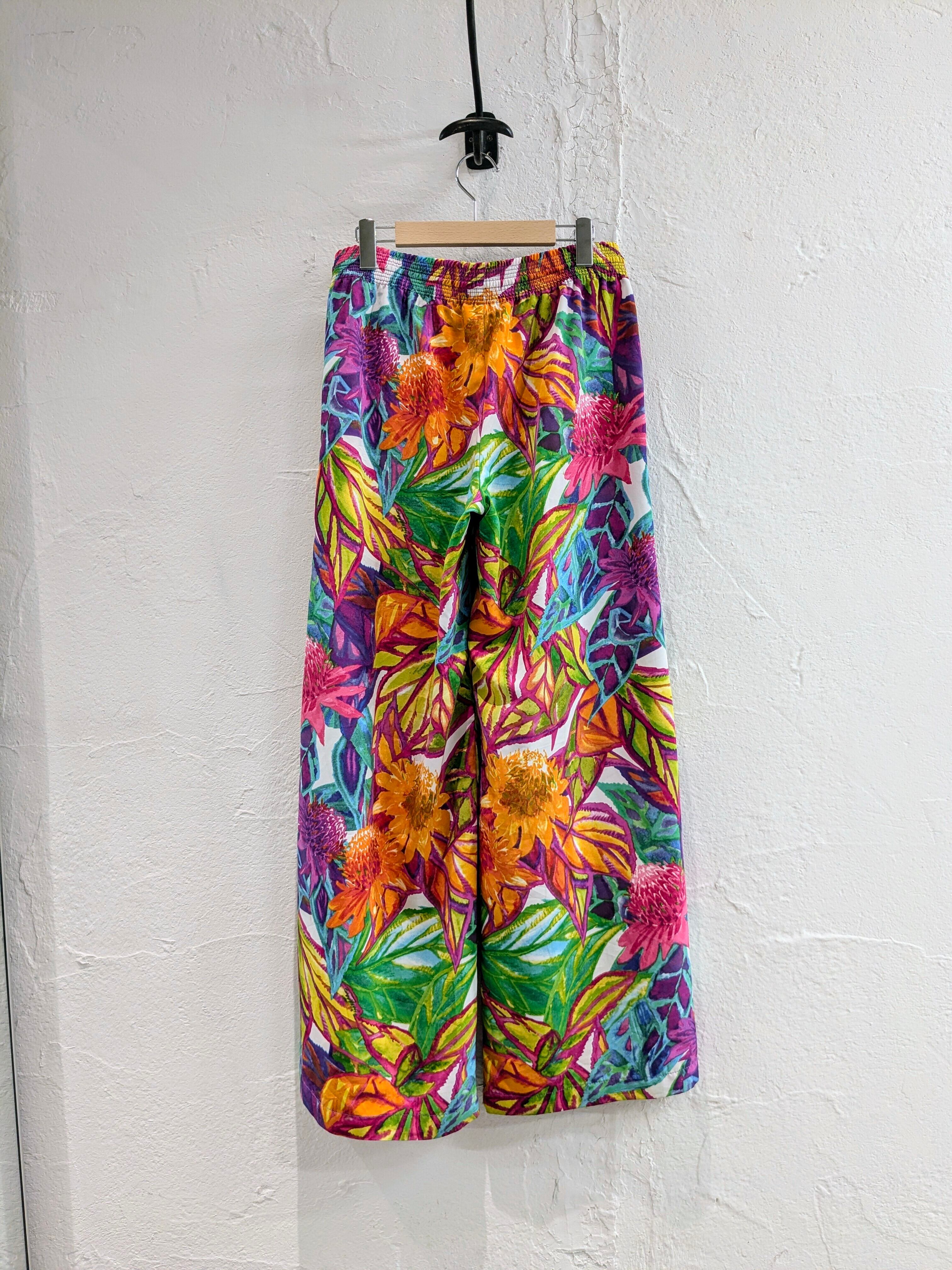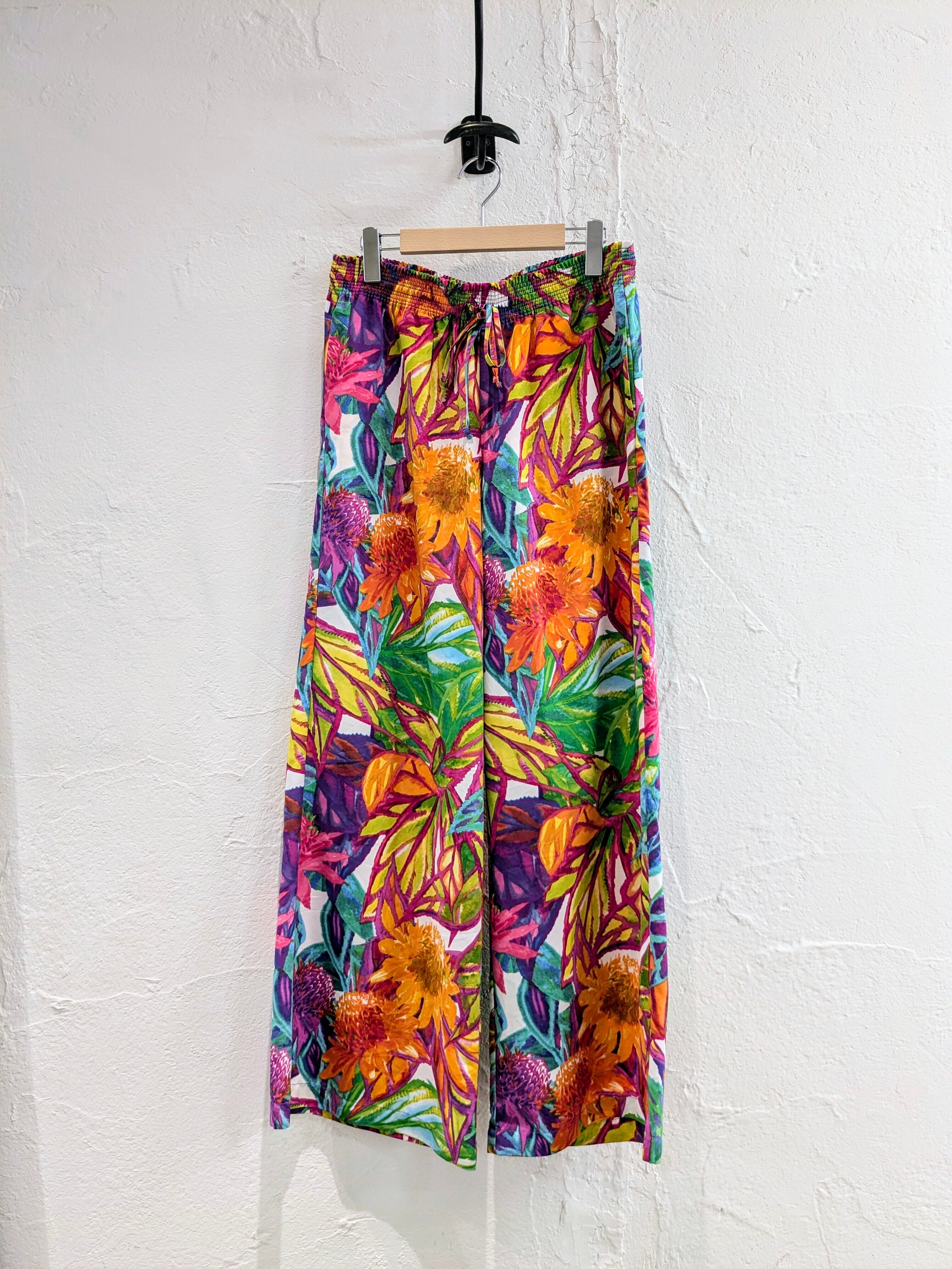 Hand Drawing Type Botanical Print Easy Wide Flare Pants