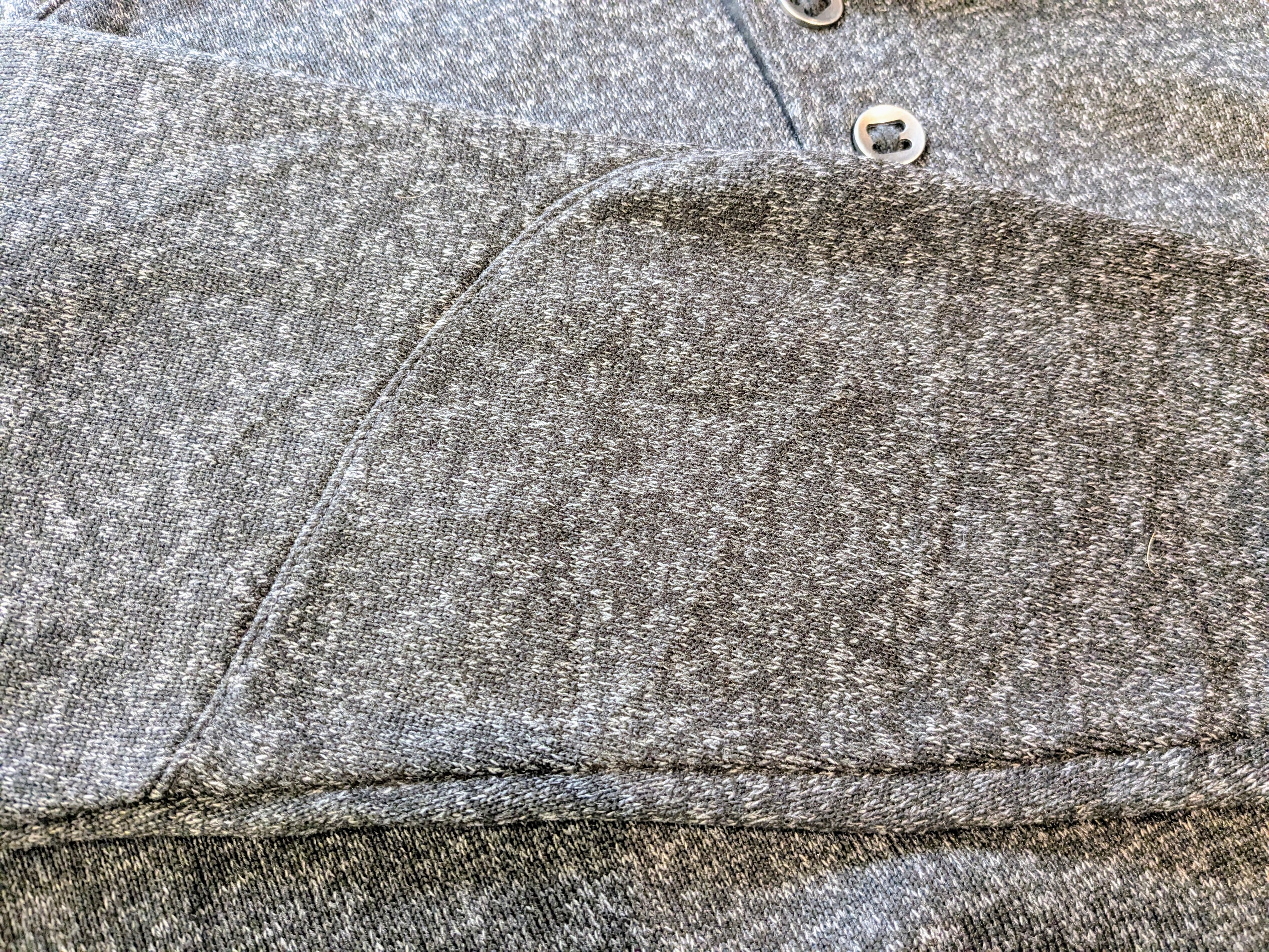紙タグ付きのデッドストック。ブラウンズビーチのような見た目で、杢がかった見た目が特徴的なアイテム。スタンドカラーの部分がジップでなく、ボタン仕様になっていて、またそのボタンが金属のパラシュートボタンを使用しています。存在感抜群で、パラシュートボタンはラフに扱っても通常のボタンよりとれないという利点もあります。肩、袖にはブランドの特徴でもあるガンパッチ的なデザインも入っており、雰囲気がかなりいいアイテムとなっています。