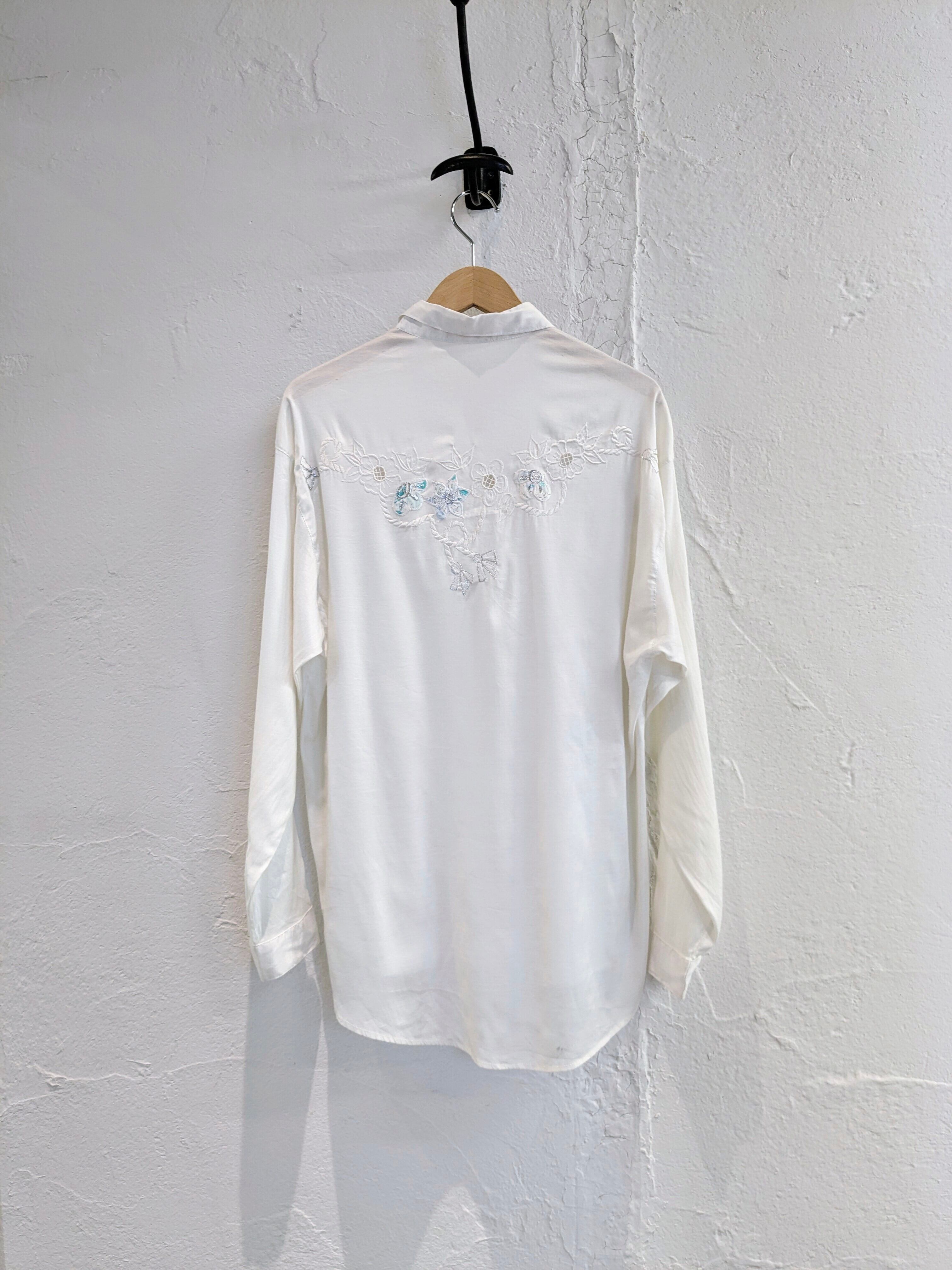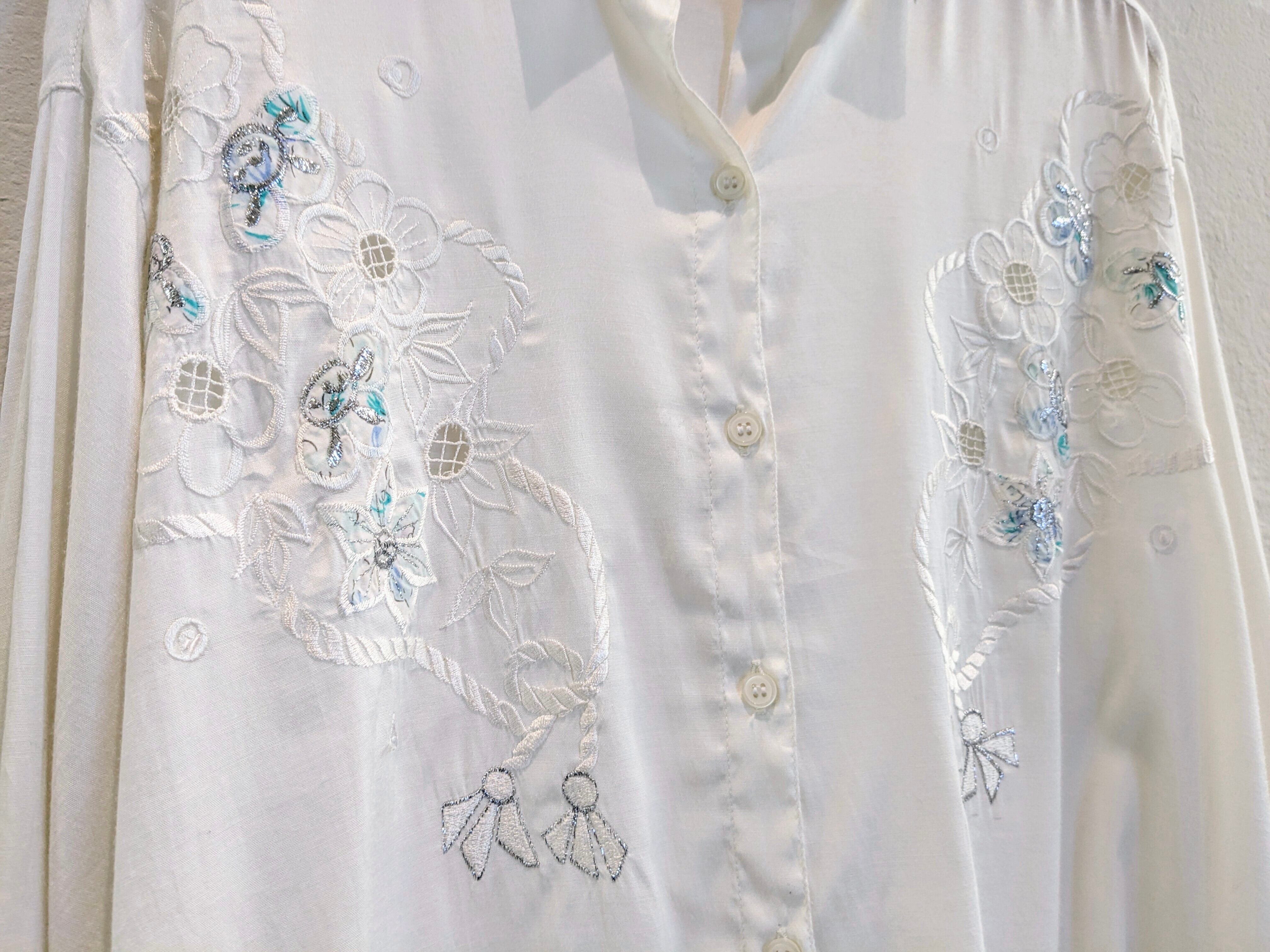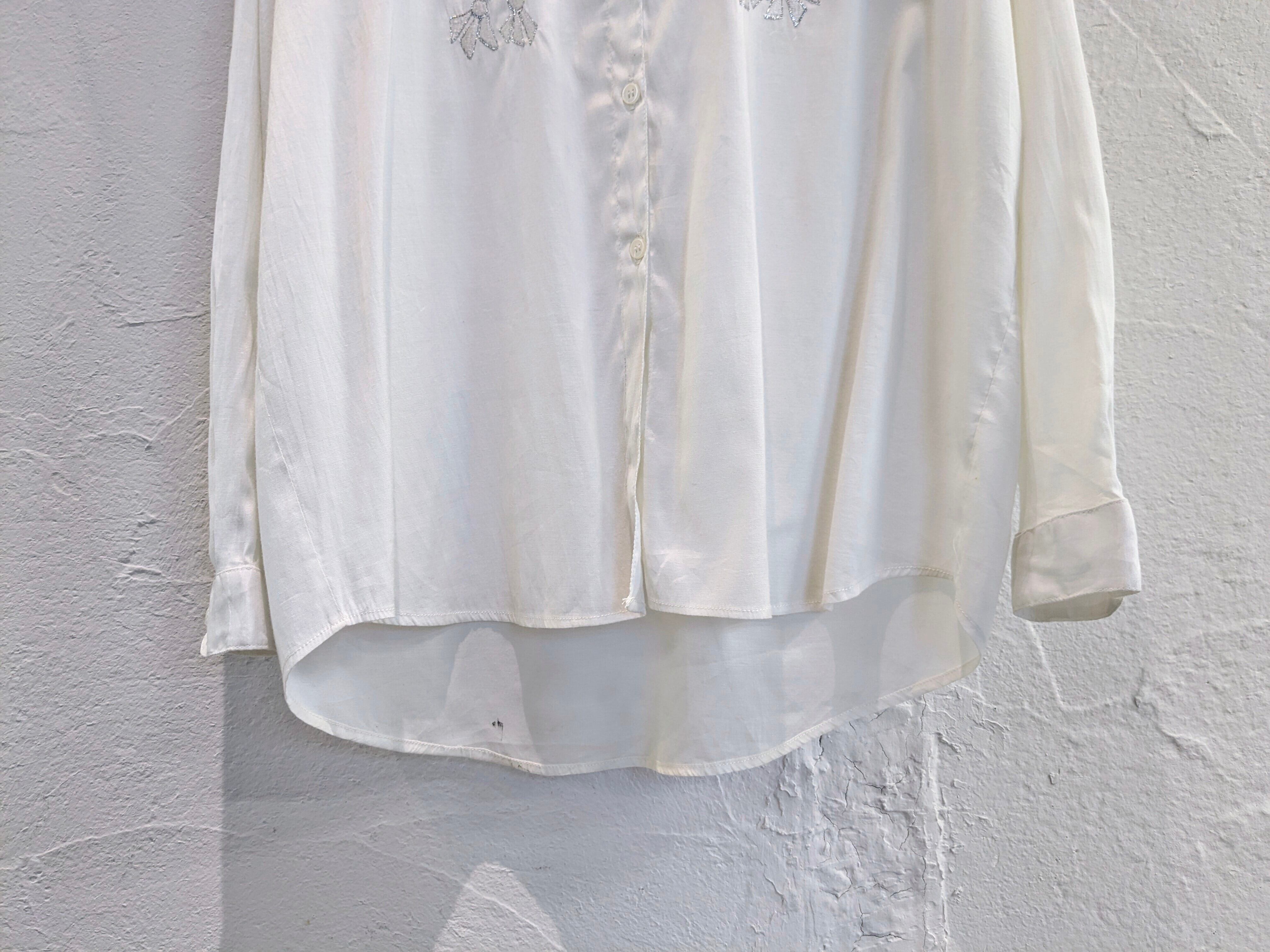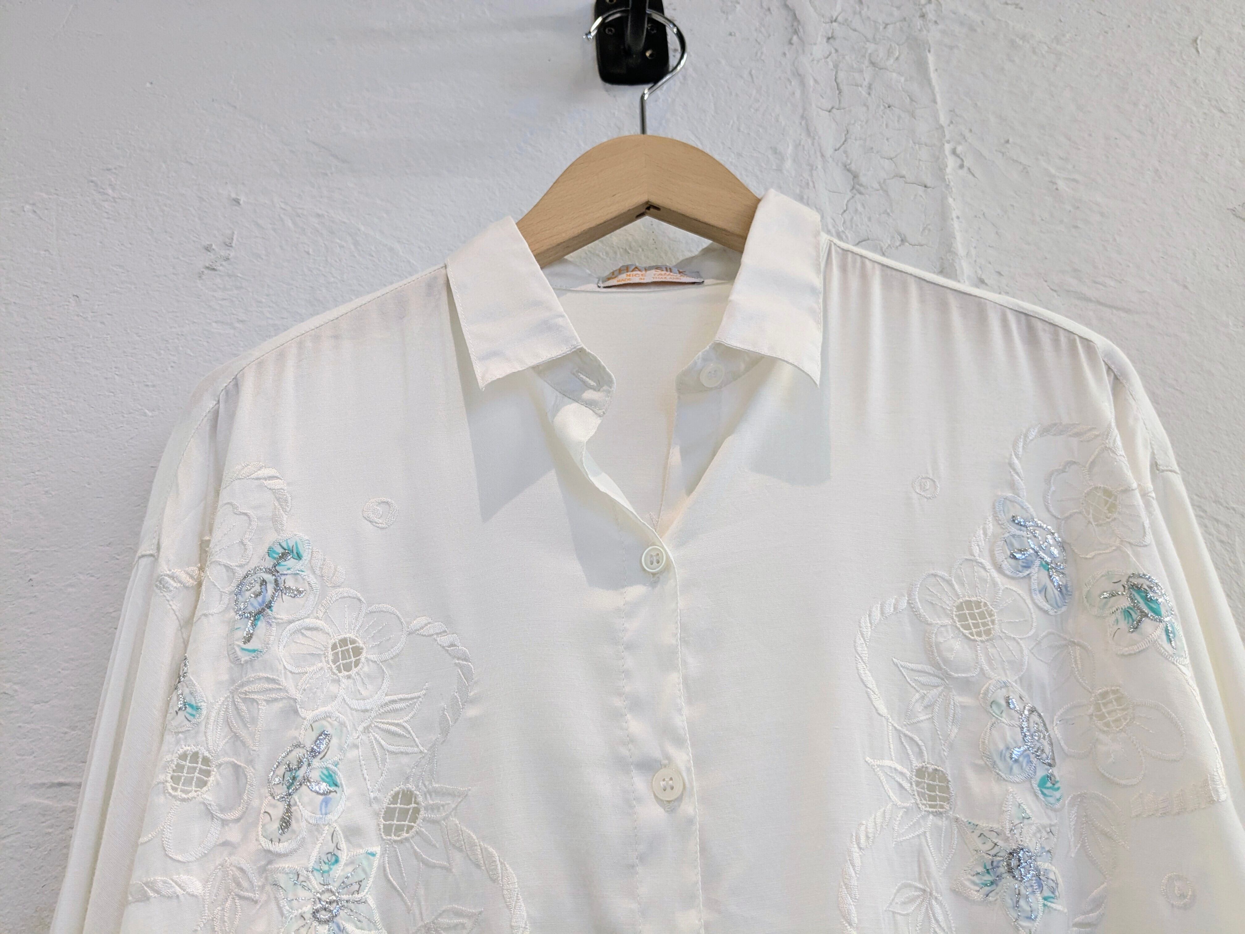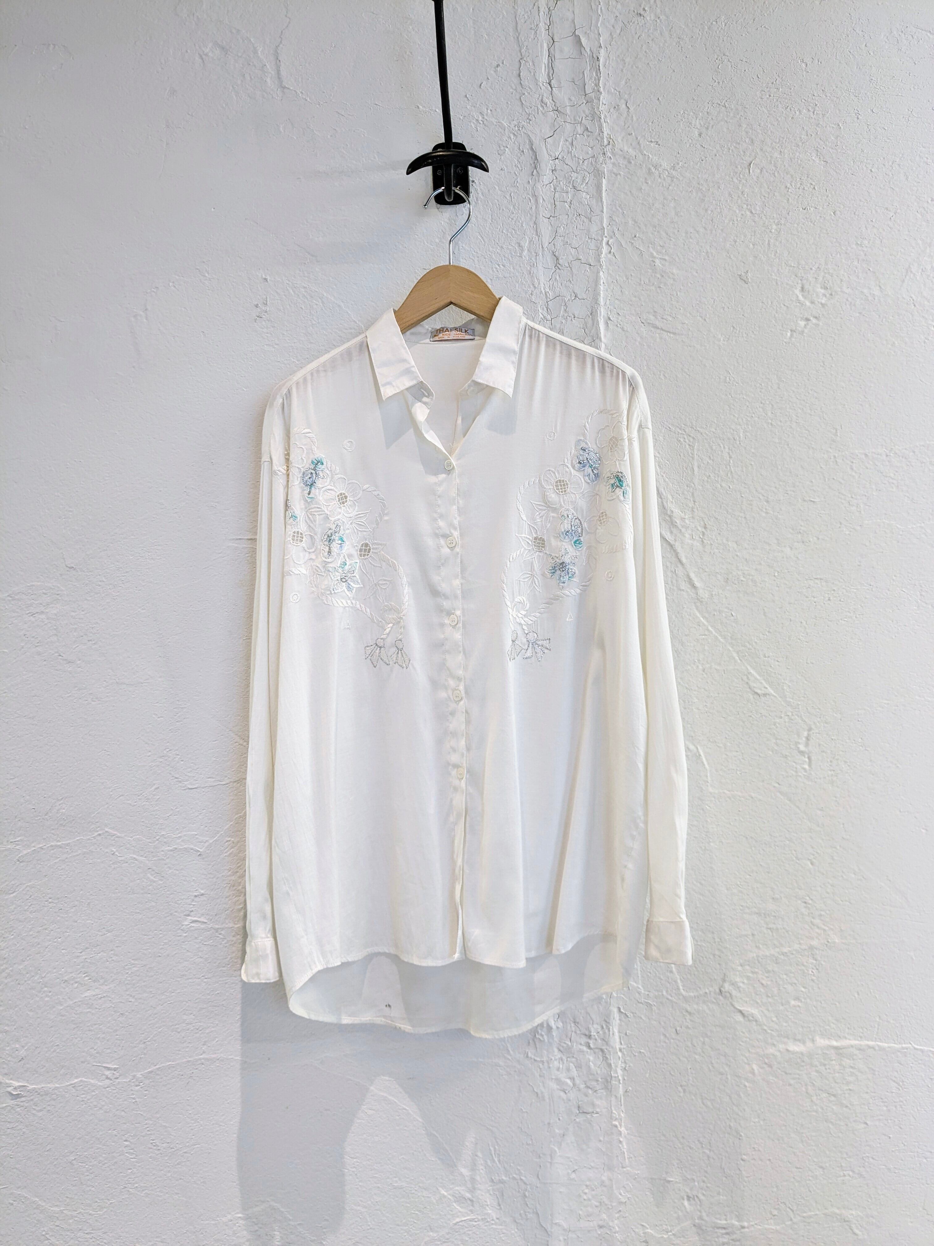 花柄の刺繍がとても上品なタイシルクのシャツ。