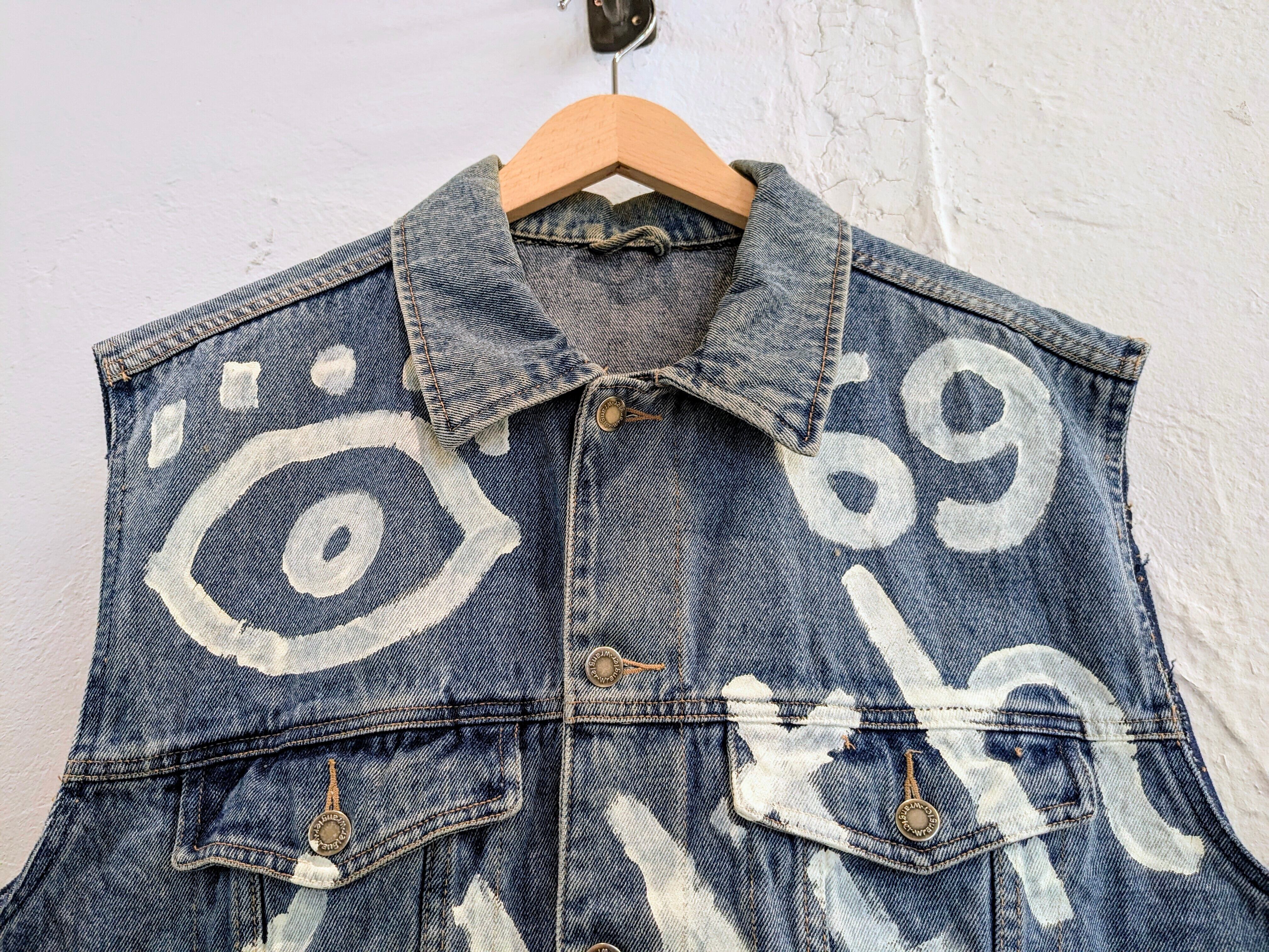 Hand Drawing Design Cutoff Denim Vest